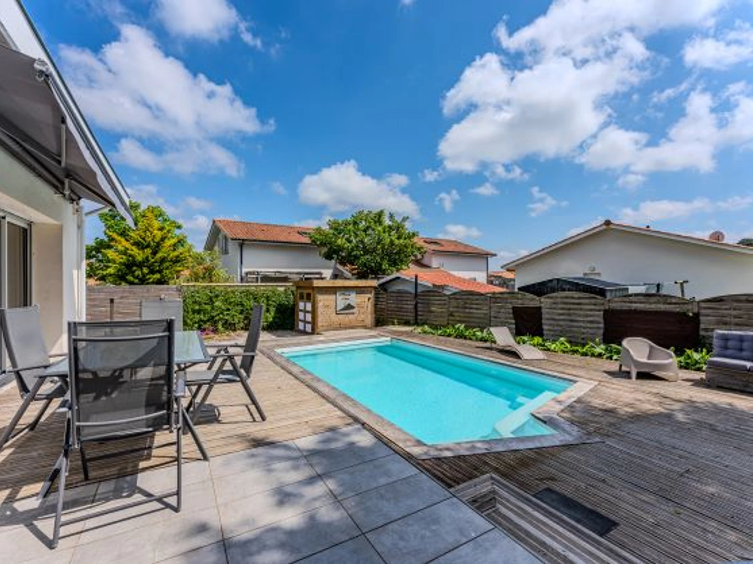 Casa con piscina en un barrio tranquilo, en una parcela vallada.
