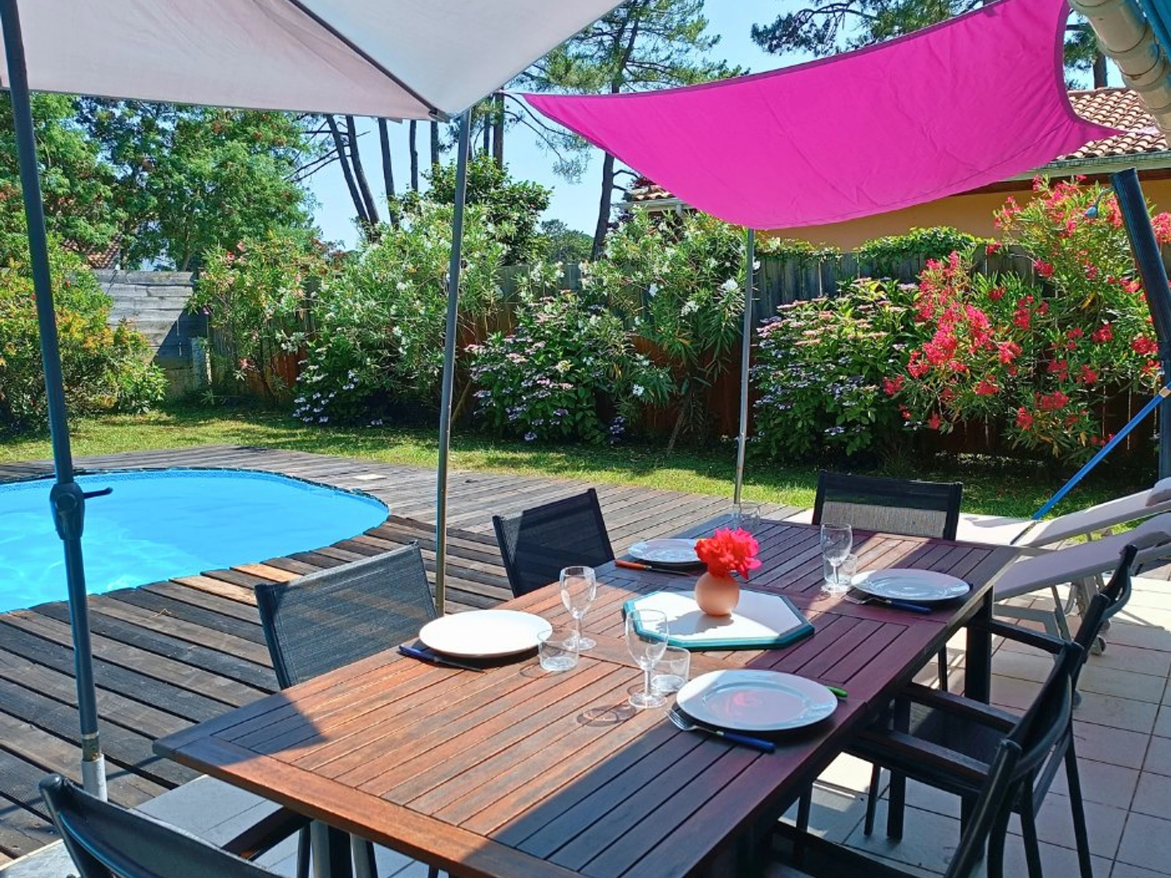 Ubicada a 1,2 km de los comercios y la playa, en una zona residencial junto al bosque, esta agradable villa de 120 m² tiene capacidad para 8 personas en una parcela arbolada y vallada de 800 m². La piscina climatizada (9x4,5 m, 1,80 m de profundidad) está disponible desde el 1 de junio (26 °C) hasta el 28 de septiembre y cuenta con alarma. Dispone de terraza con muebles de jardín, tumbonas y barbacoa.