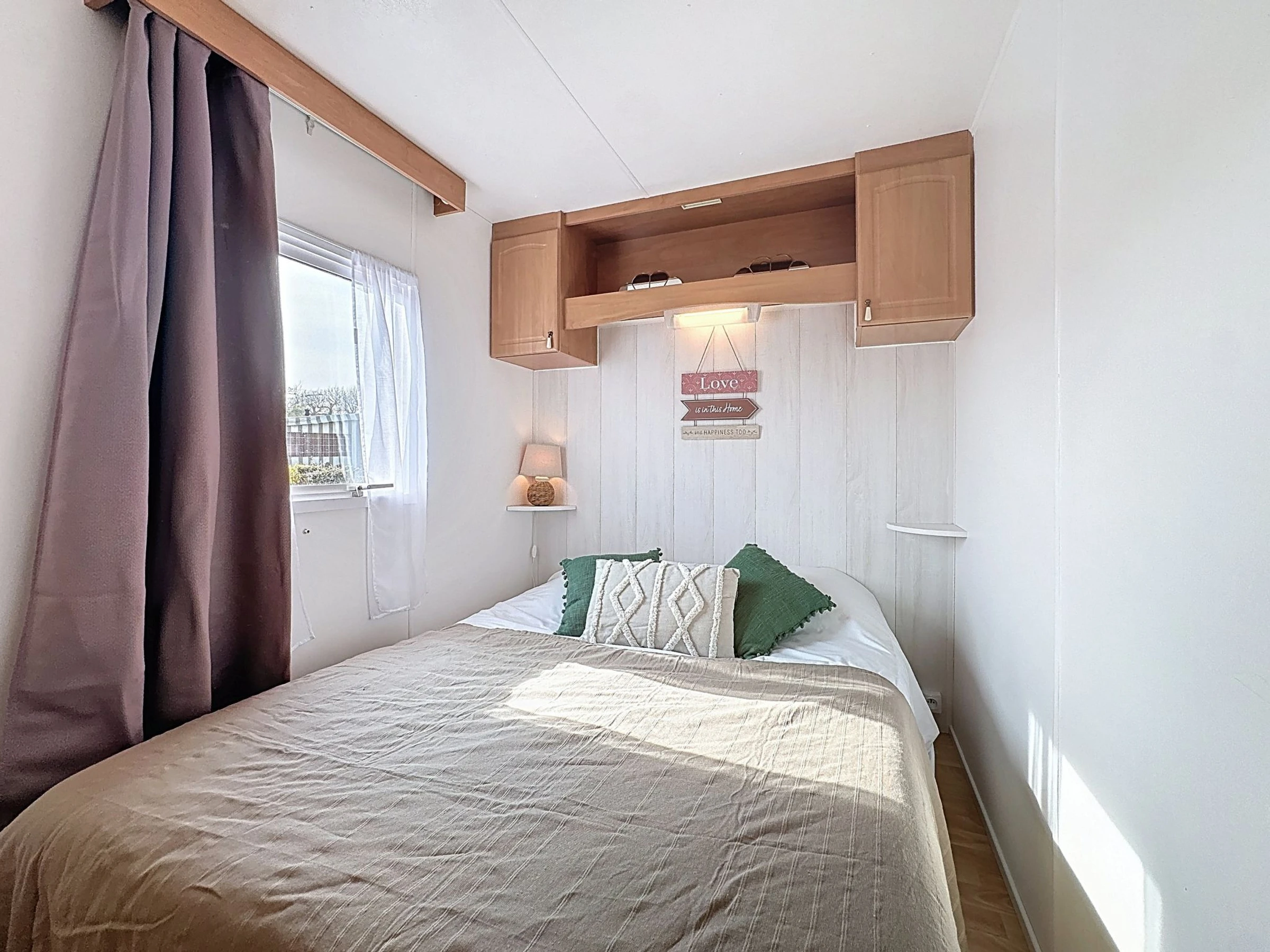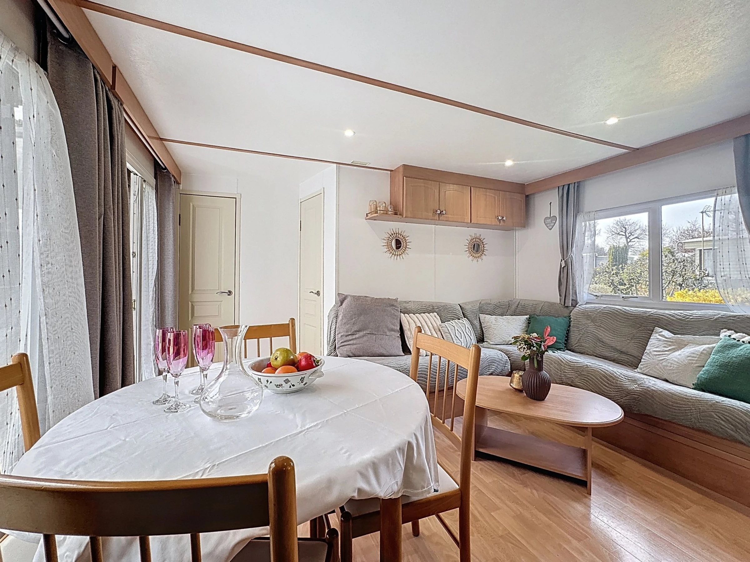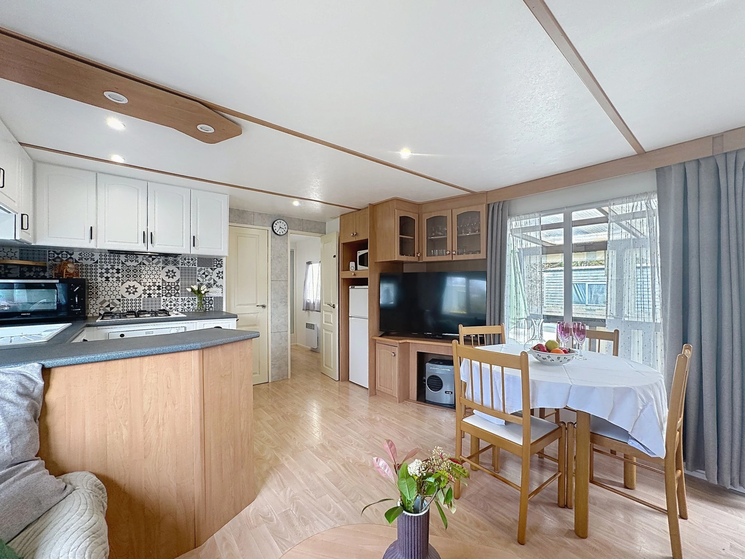 "Le Lieu Bill", 3 estancias mobile home 40 m2. Salón-comedor con TV (pantalla plana). Salida a la terraza. 1 dorm. con 1 cama de matrimonio (1 x 140 cm, 190 cm de longitud). 1 dorm. con 1 cama de matrimonio (1 x 140 cm, 190 cm de longitud). Cocina abierta (4 fogones, lavavajillas, tostadora, hervidor de agua eléctrico, microondas, cafetera eléctrica). Ducha, WC separado. Calefacción eléctrica. Terraza grande 10 m2. Muebles de terraza. El alojamiento dispone de: Internet (Wifi, extra). Plaza de aparcamiento (2 Coches). A tener en cuenta: apartamento para no fumadores. 1 mascota / perro. Detector de humo.