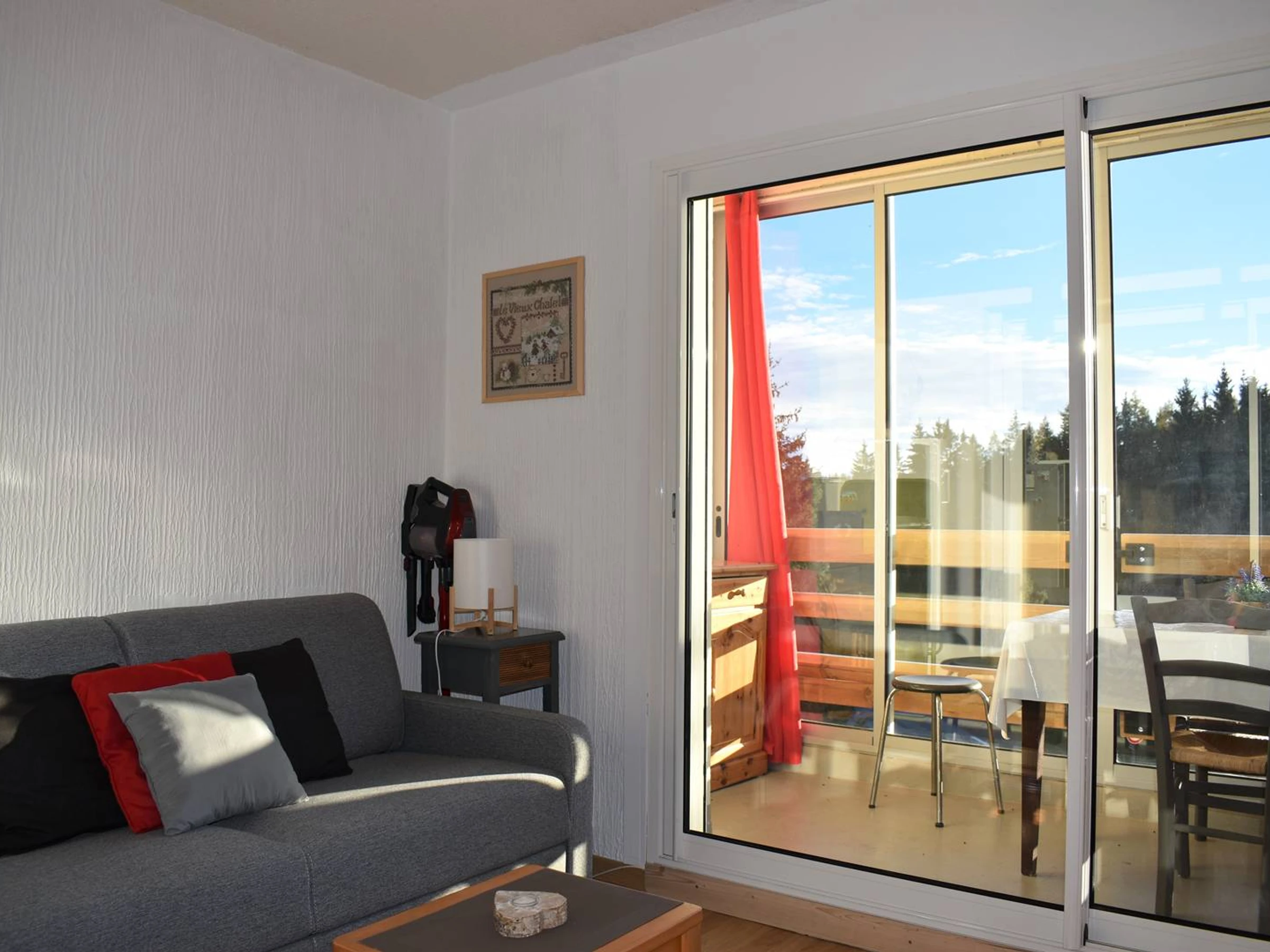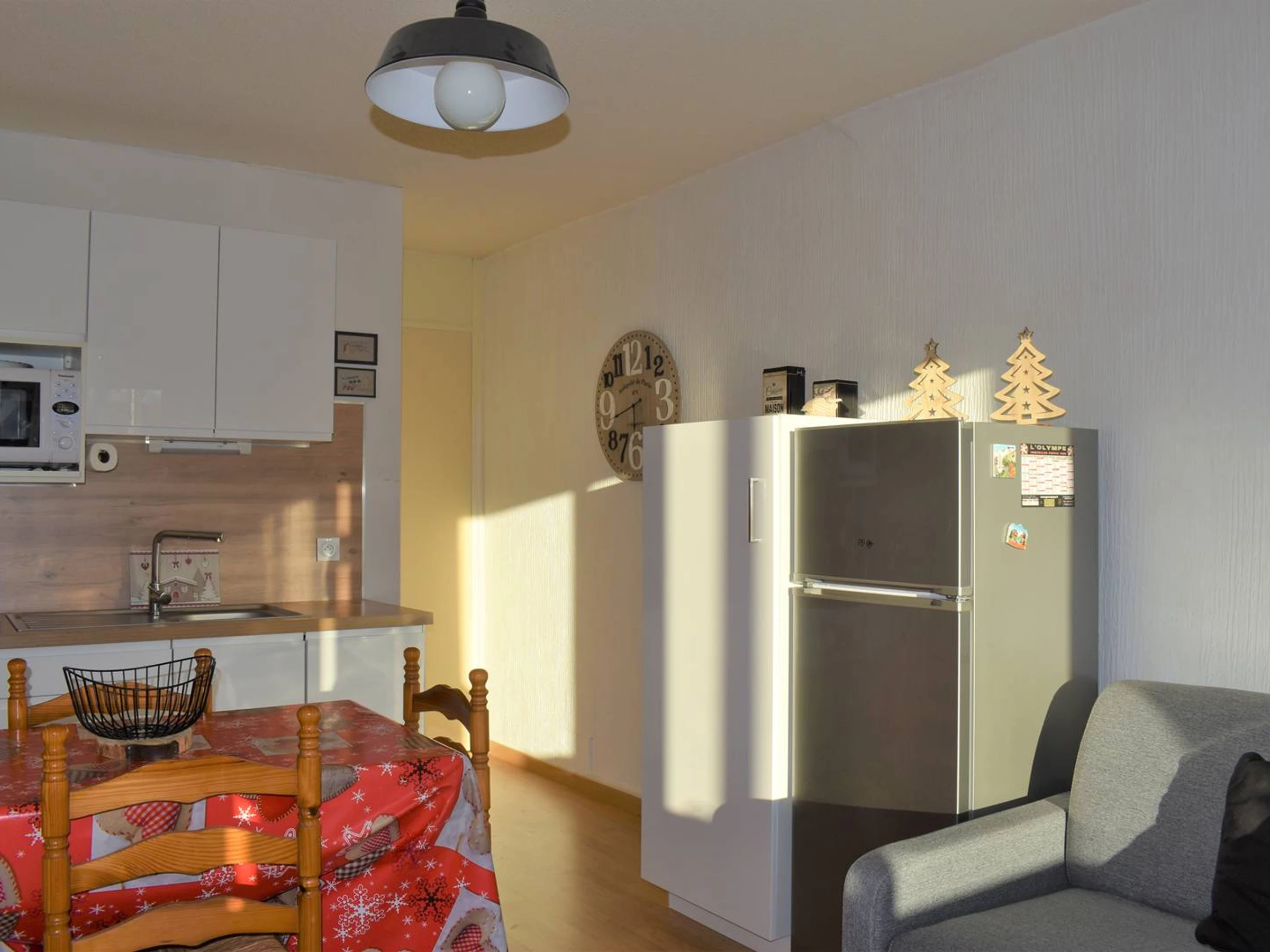 APARTAMENTO DE DOS HABITACIONES ubicado en el 3er piso del edificio D, a tiro de piedra de las tiendas y a 800 metros de las pistas de esquí, que consta de sala de estar, cocina con placa de inducción de 2 fuegos, nevera, microondas, televisión.