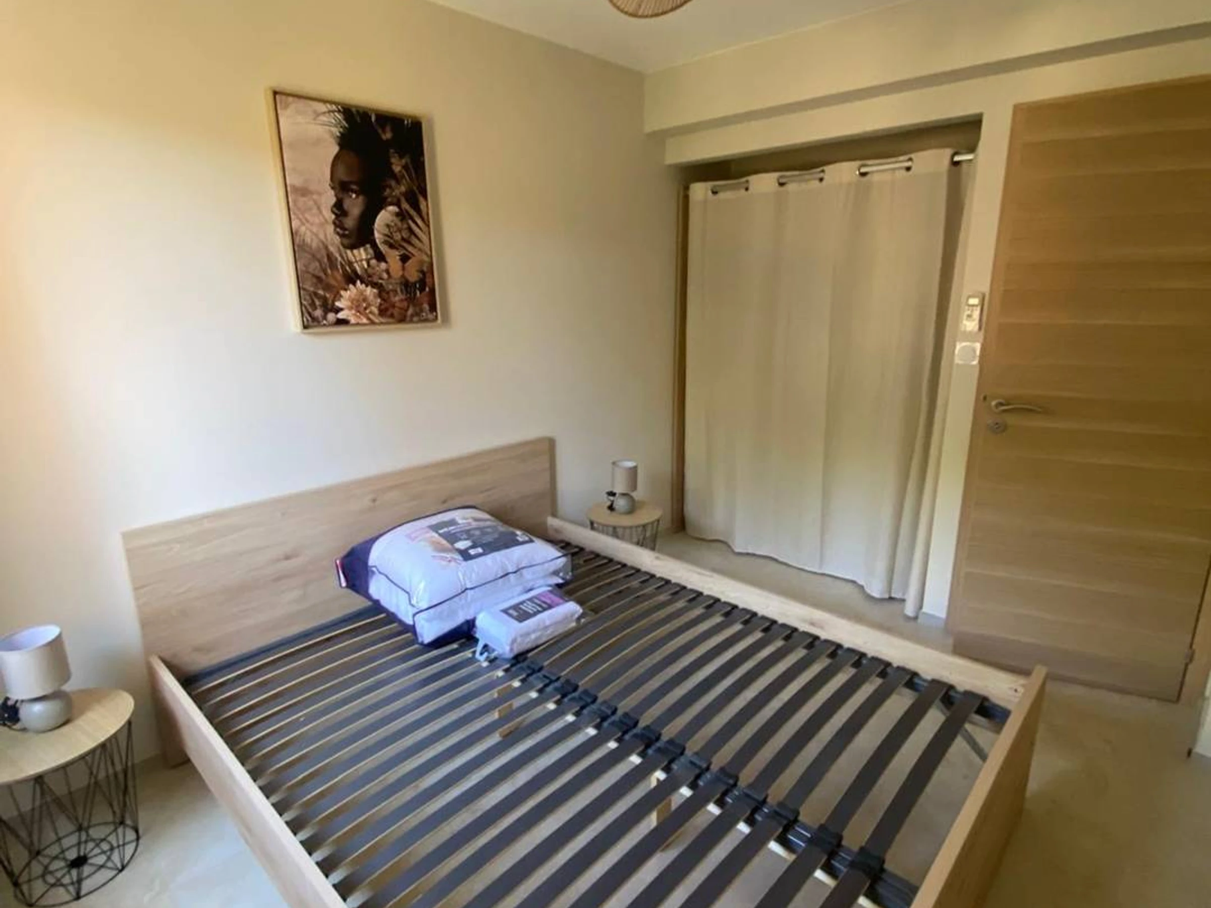 - Un dormitorio con cama de matrimonio (160x200 cm), aire acondicionado y una ventana con contraventanas y cortinas. - Un baño con ducha, lavabo, secador de pelo y lavadora.