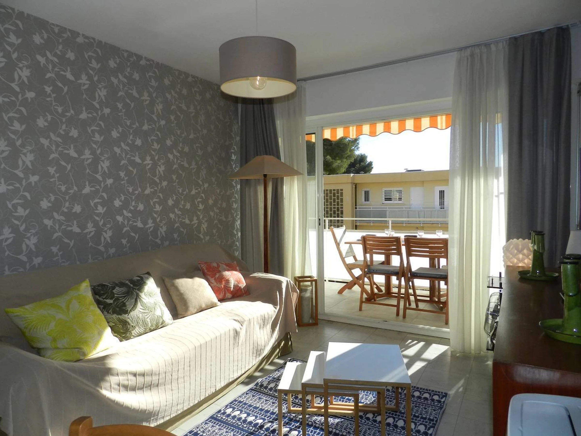 Este alquiler vacacional con aire acondicionado en el segundo y último piso ofrece una acogedora terraza orientada al sur, una sala de estar con aire acondicionado y sofá cama, un dormitorio con dos camas individuales, una cocina independiente, un baño con ducha y un WC separado.