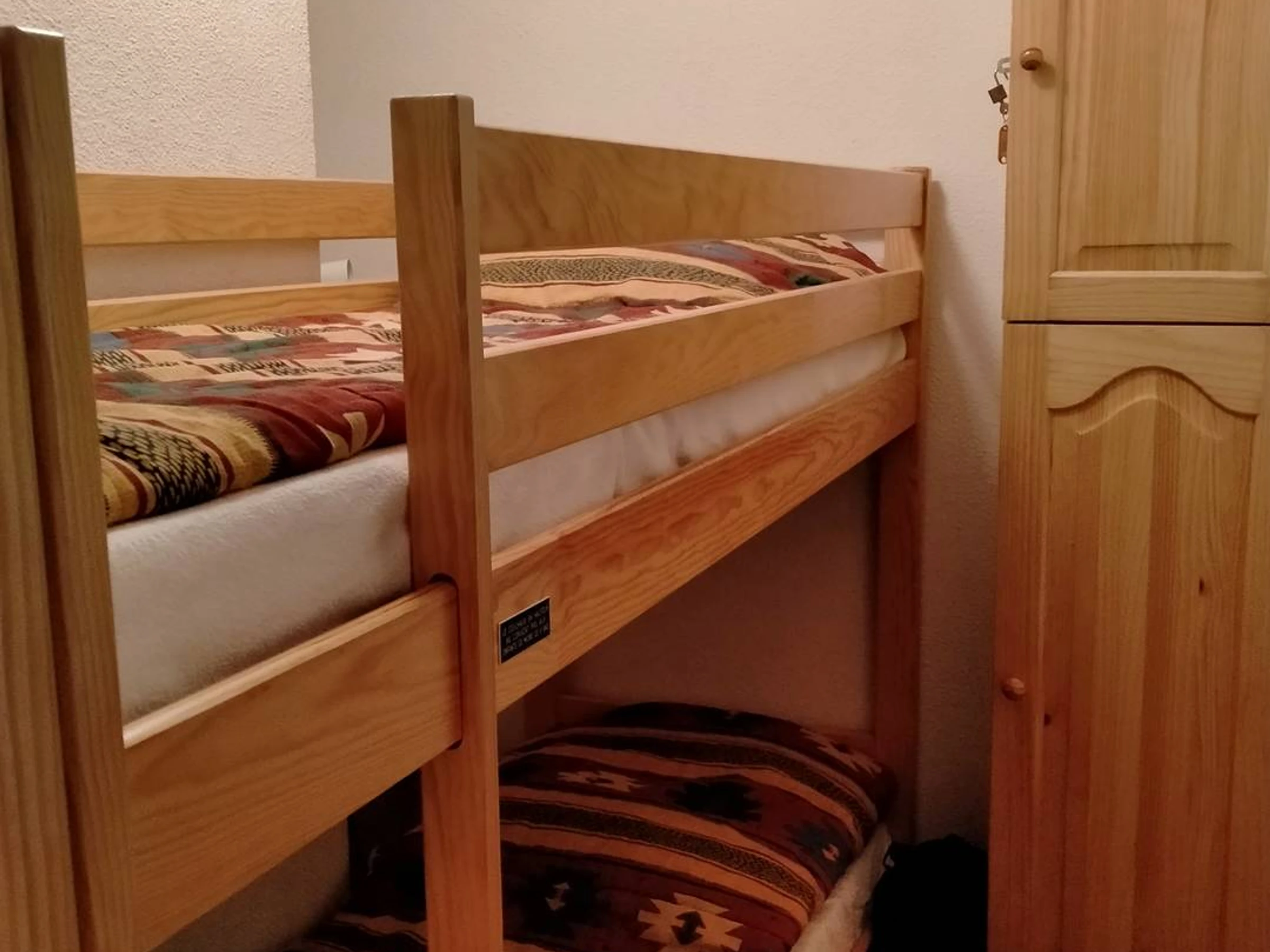 Tiene capacidad para cuatro personas: un dormitorio (cama doble de 140 cm) y una alcoba independiente (dos literas). El salón y la cocina americana (reformados en 2022) son cómodos y dan a una logia, donde podrás disfrutar de la orientación sur y las vistas al jardín para desayunar o cenar.