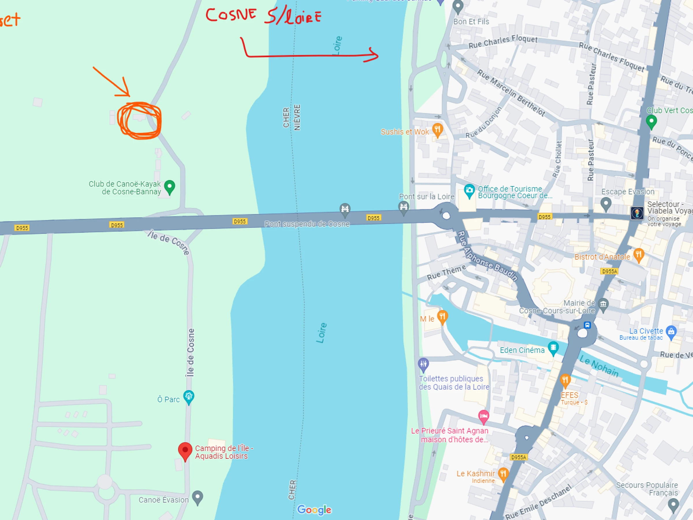 La casa se encuentra en la carretera que lleva a la isla de Cosne, en dirección opuesta al camping Aquadis Loisirs, y justo detrás del Club de Canoa-Kayak de Cosne Bannay.