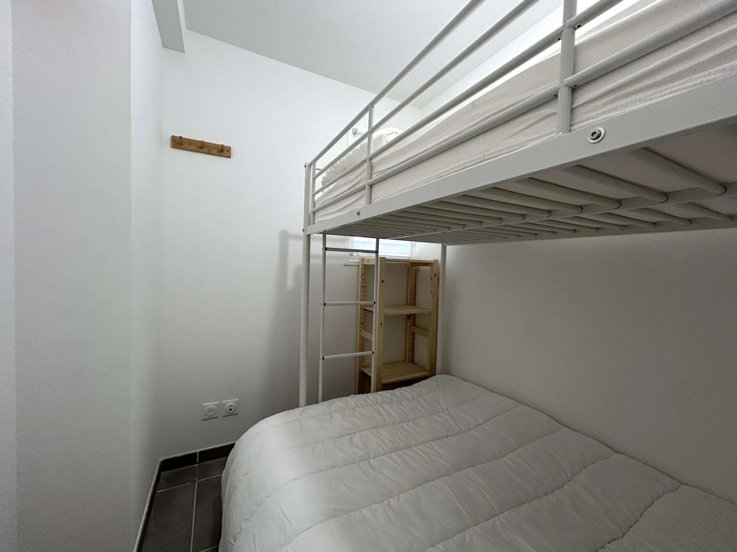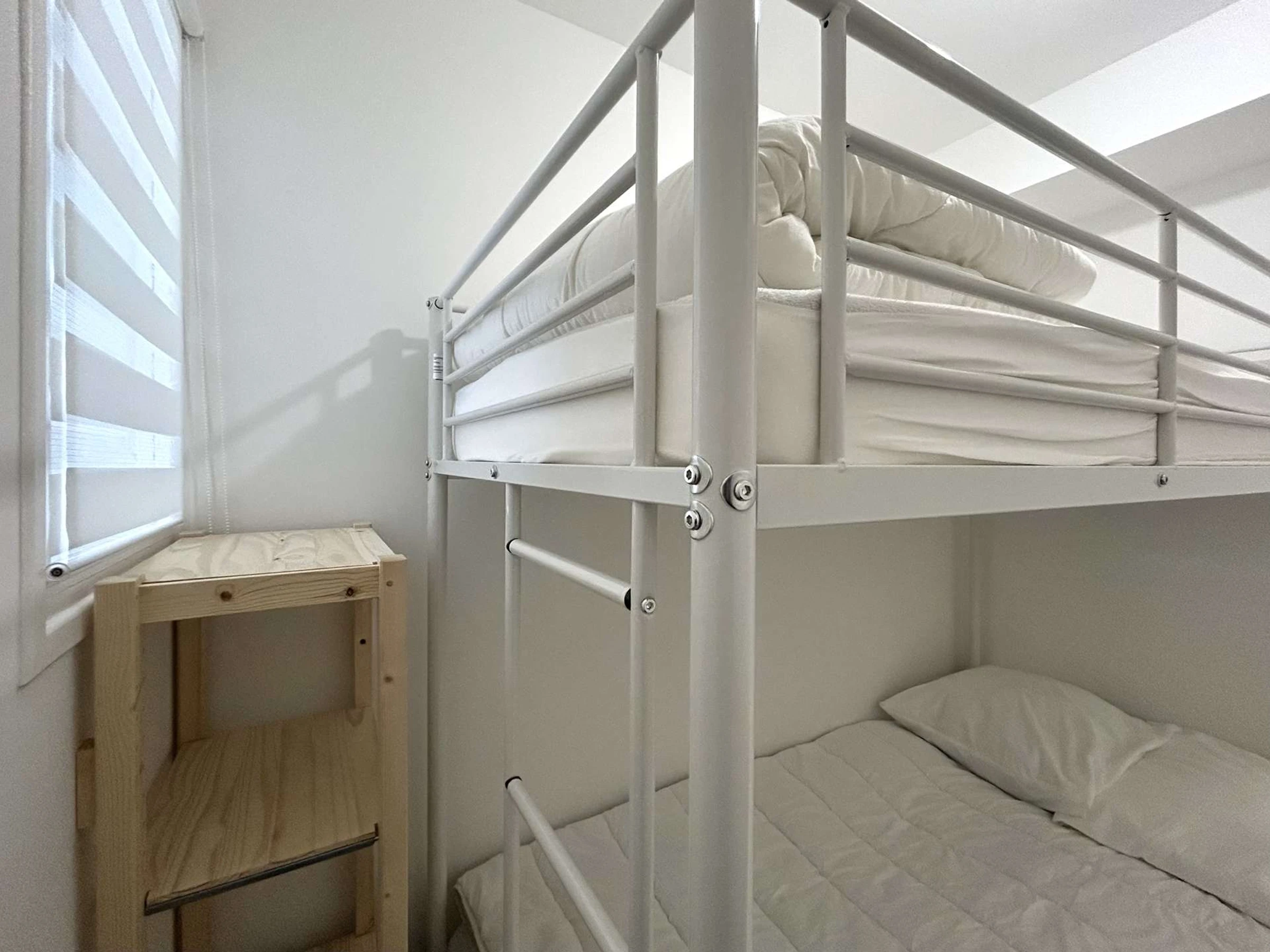 - Alcoba con literas: cama inferior de 120 x 190 cm, cama superior de 90 x 190 cm
