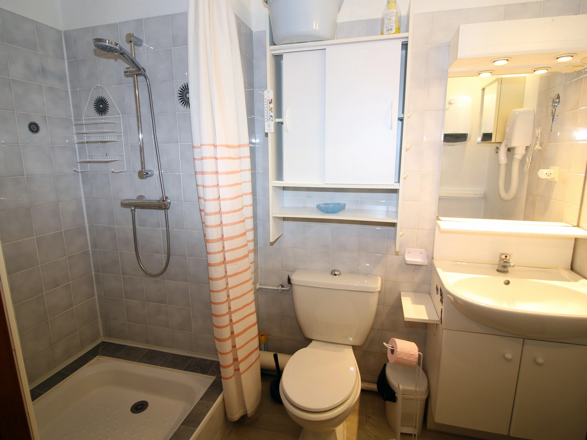 Estudio de 28 m² con zona de dormitorio para 4 personas, ubicado en la 4.ª y última planta de la residencia con ascensor. Balcón orientado al oeste.