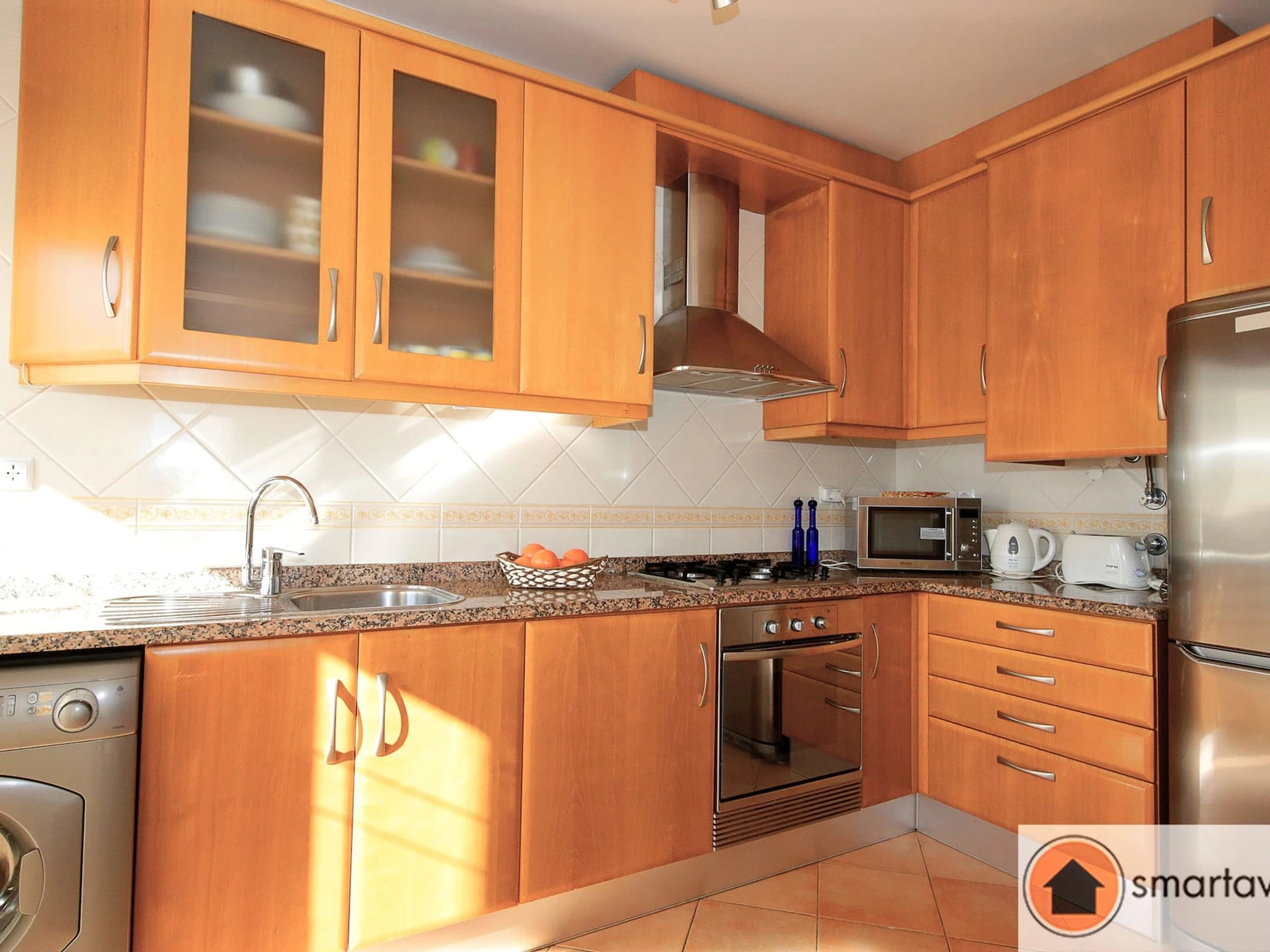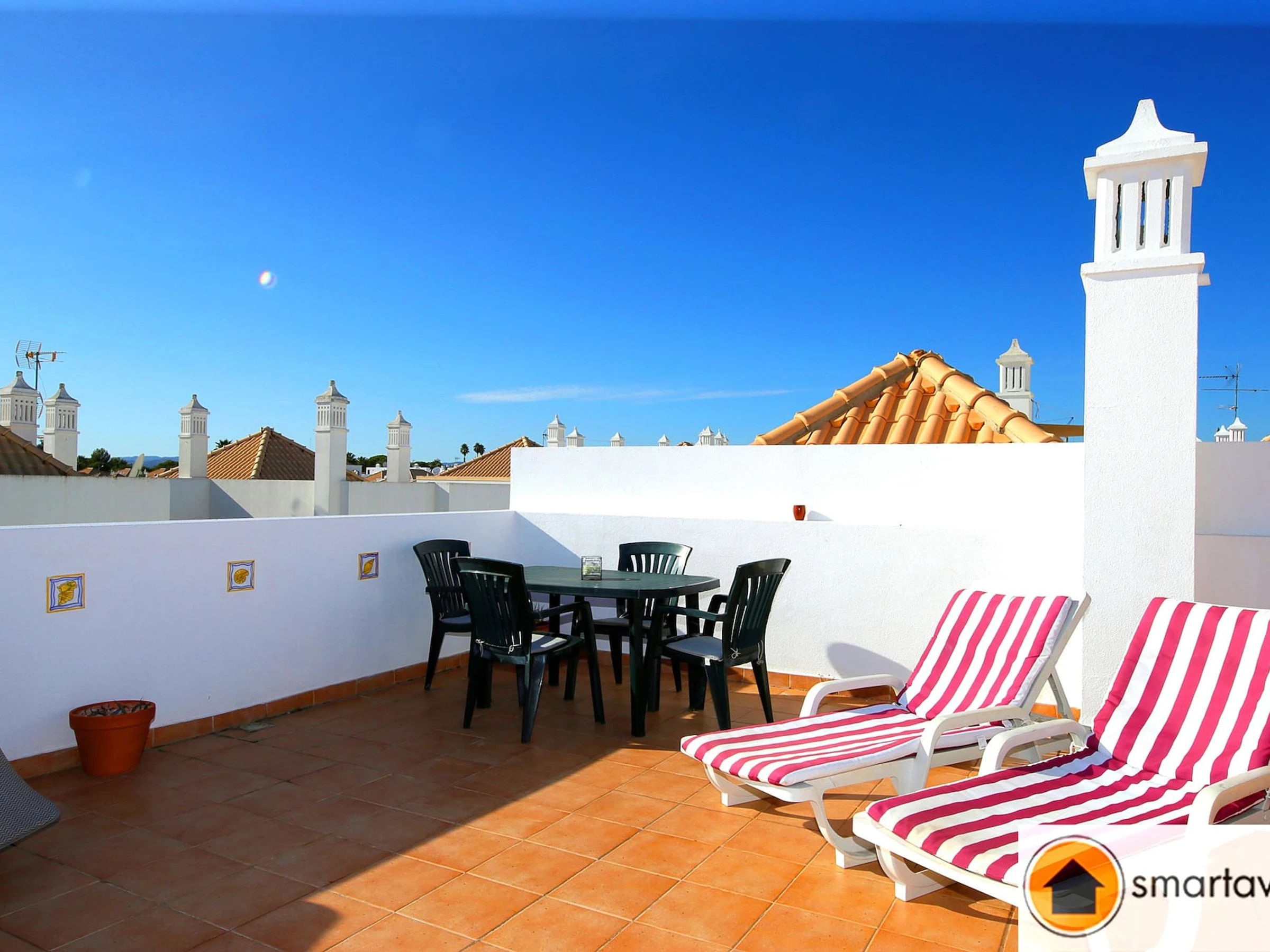 El apartamento es un alojamiento dúplex, con los 2 niveles que combinan excelentes instalaciones de vida interior y exterior. El alojamiento interior está en el nivel inferior y está agradablemente amueblado en todo su conjunto. Las 2 habitaciones pueden convertirse en cama individual o de pareja, según sus preferencias, y comparten un baño con una gran ducha para caminar. El salón/comedor de planta abierta contiguo es luminoso y espacioso, con 2 sofás cómodos, acompañados por un conjunto de comedor. Grandes puertas de patio conducen a una zona de comedor al aire libre cubierta por un toldo, con una barbacoa de ladrillo tradicional, perfecta para almuerzos perezosos y cenas casuales de verano. También con espacio para relajarse, la terraza espaciosa tiene un conjunto de sofás cómodos, donde puede relajarse y leer, o simplemente dormitar la tarde. Una pequeña escalera conduce a la terraza superior revelando vistas del tejado hacia el océano. Aquí puede disfrutar tomando el sol en las tumbonas proporcionadas. El apartamento también tiene acceso a una gran piscina solo para residentes en el punto central del edificio, ideal para un chapuzón rápido para los adultos o para el tiempo de juego de los niños, antes o después de la playa.