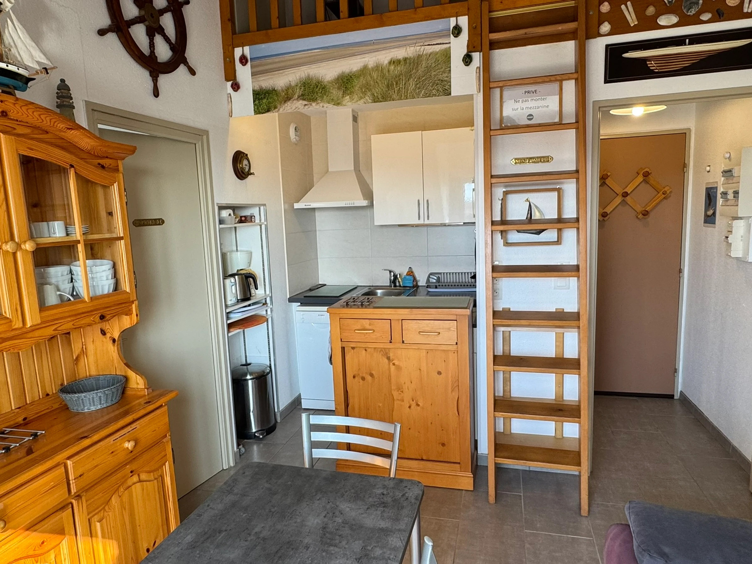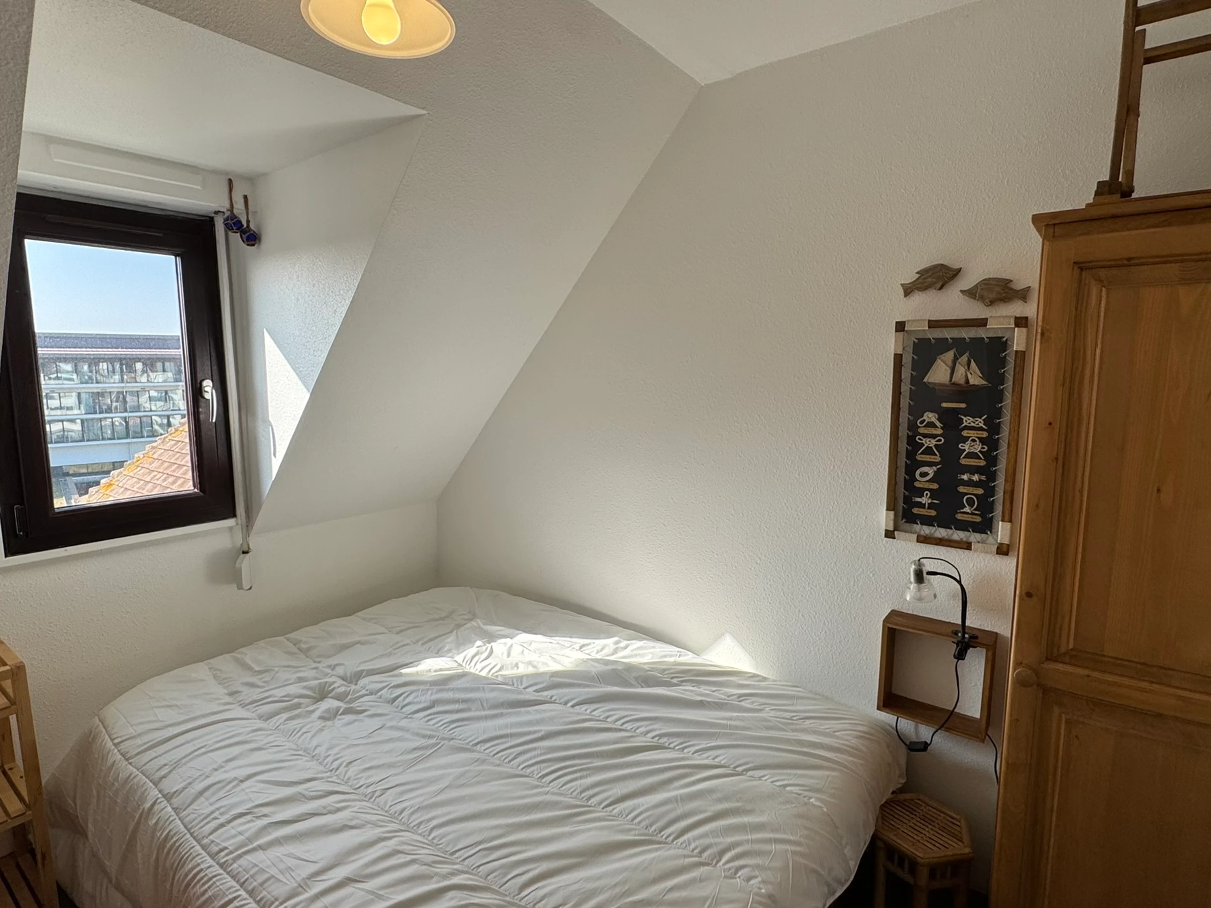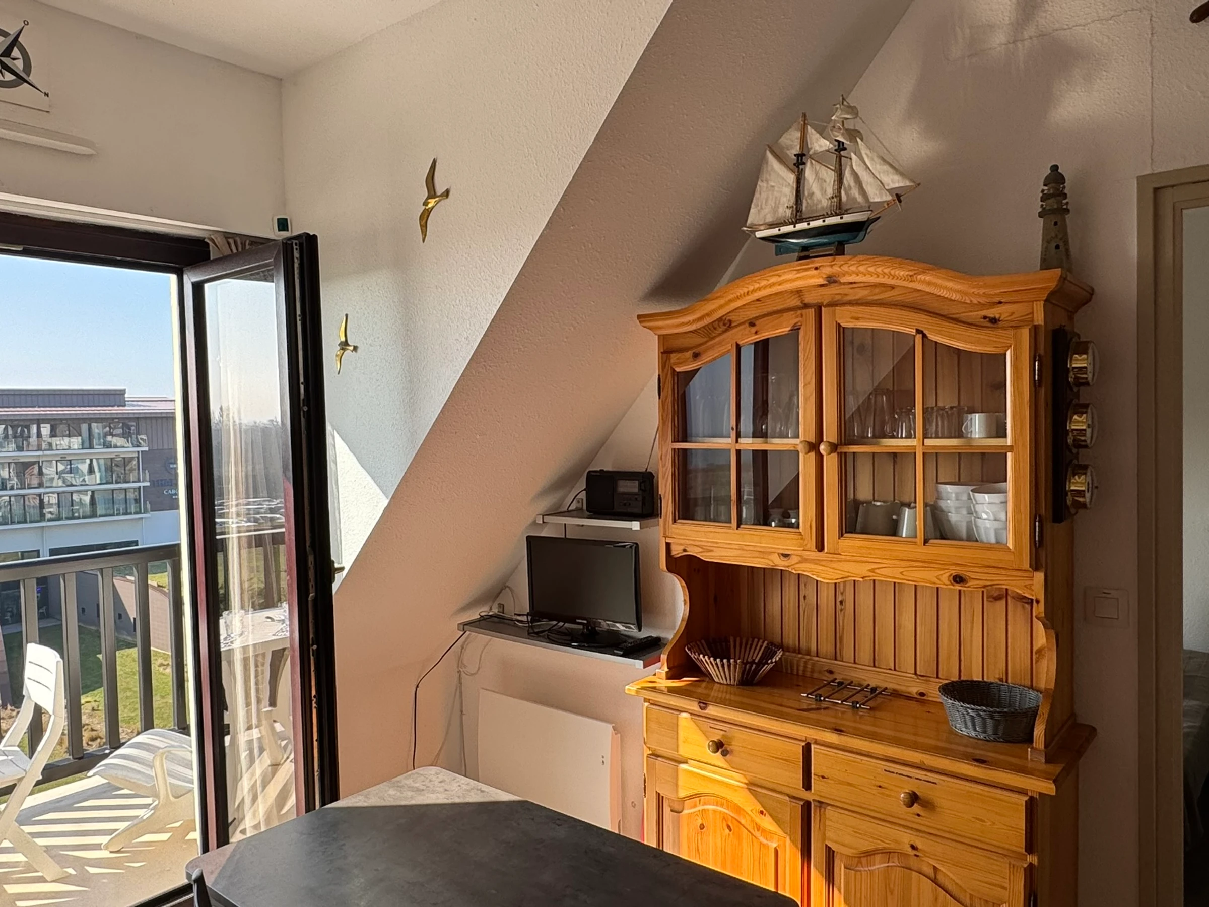 En residencia con acceso directo a la playa y junto al centro de talasoterapia, apartamento de 2 habitaciones con capacidad para 4 personas y una superficie de aproximadamente 23m². El apartamento incluye: una sala de estar (con un sofá cama de 160x190 y un televisor de pantalla plana) que da a un balcón con vista al mar orientado al oeste, una cocina abierta (con nevera, congelador, horno multifunción, 2 placas de inducción, lavavajillas y 1 cafetera clásica), un baño con ducha y WC y un dormitorio (con una cama de 140x190).