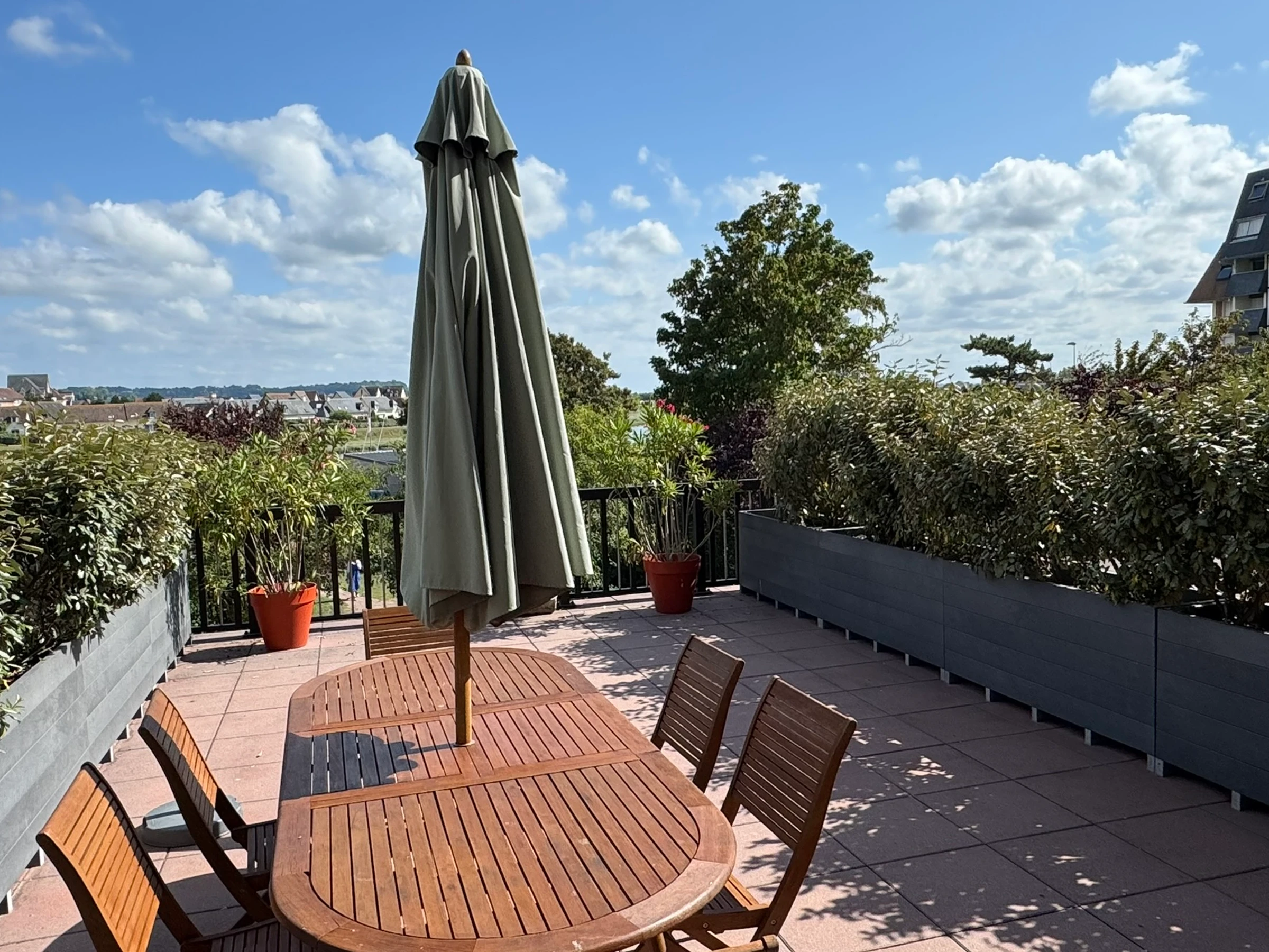 Apartamento de 4/5 habitaciones con jardín privado con vistas al malecón con acceso directo a la playa. Terraza privada orientada al sur de aproximadamente 50m2 con vistas al Dives.