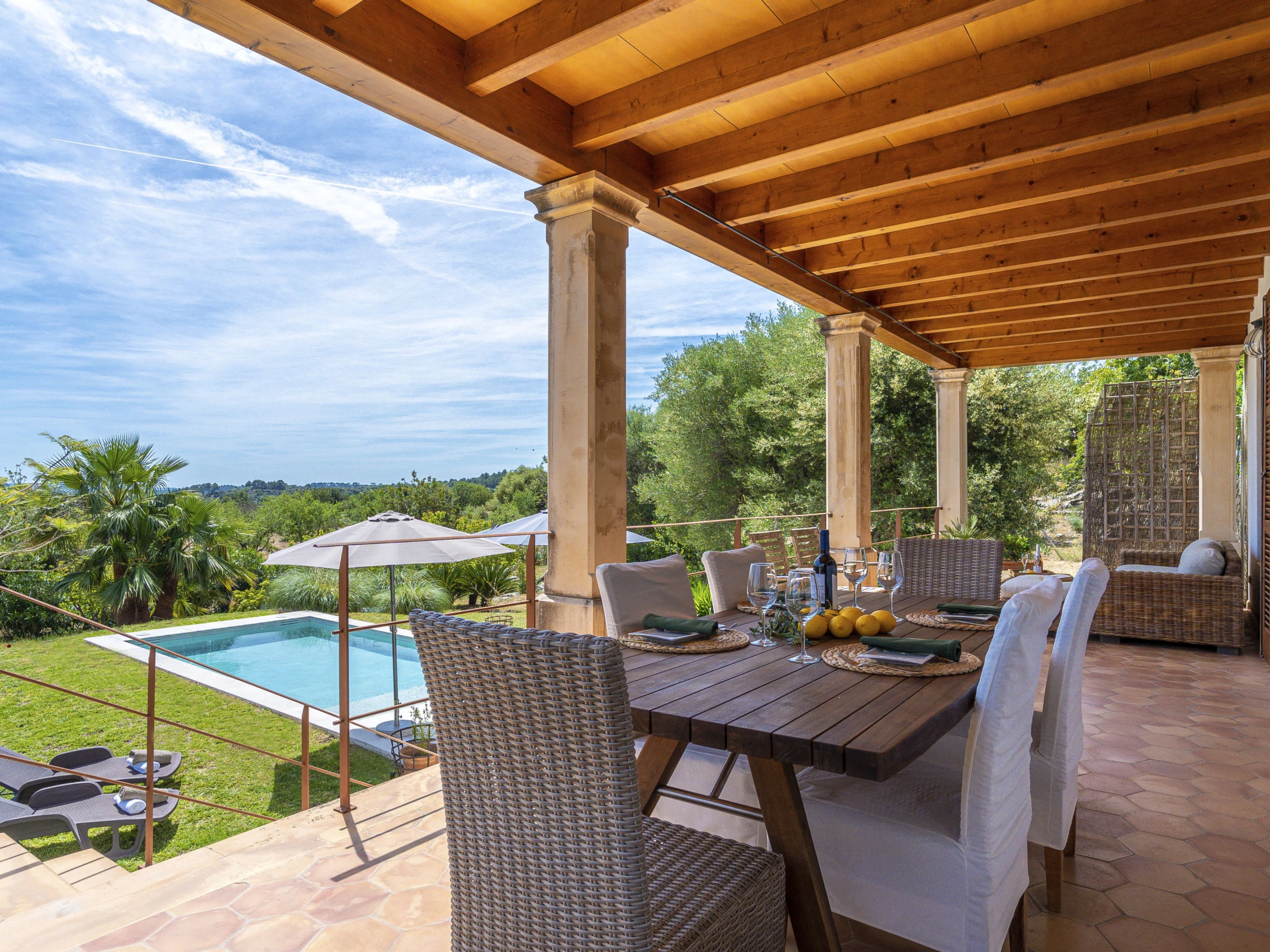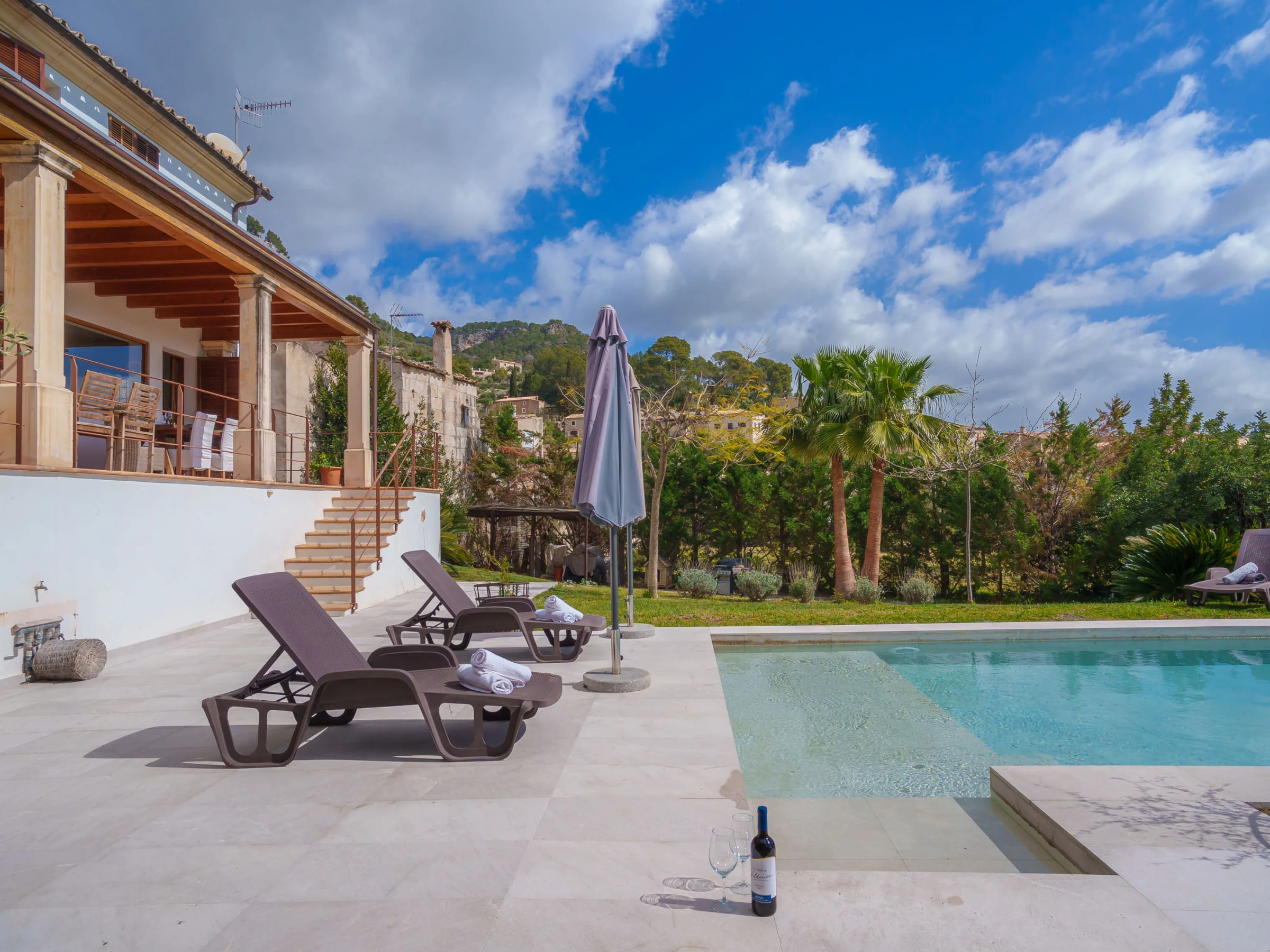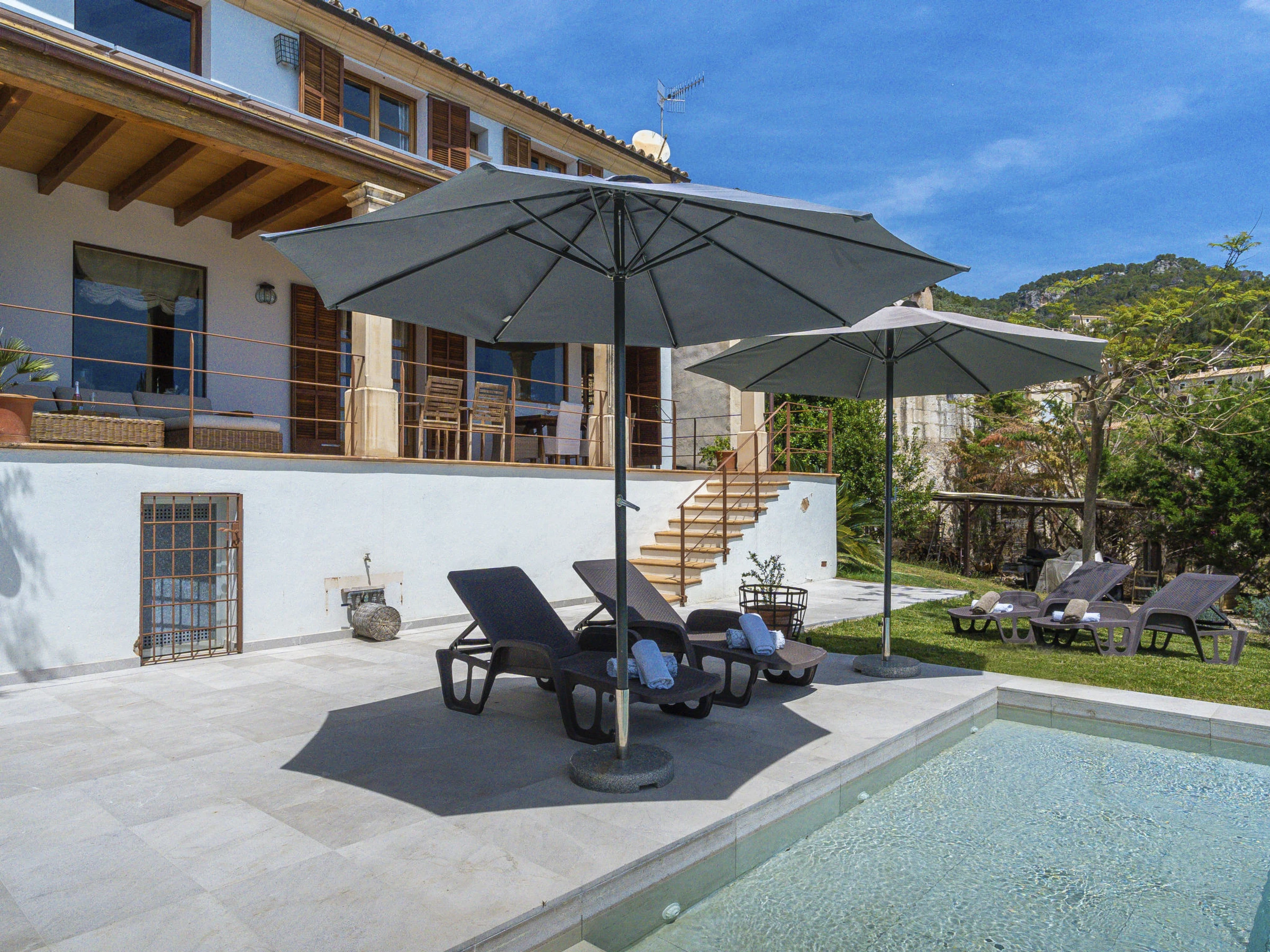 "Sa Coma Caimari", villa 5 estancias 250 m2 en 2 plantas. Vivienda adecuada para 4 adultos. Espacioso y luminoso, con mobiliario muy confortable: salón grande con chimenea (sólo con función decorativa), TV digital, pantalla plana, aire acondicionado y bomba de calor, caliente. Salida a la terraza-jardín. Cocina-comedor (5 fogones, horno, lavavajillas, tostadora, hervidor de agua eléctrico, microondas, congelador, cafetera eléctrica) con mesa de comedor, chimenea (sólo con función decorativa). Salida a la terraza-jardín. Ducha/WC. Planta superior: sala de estar grande con TV digital, pantalla plana, aire acondicionado y bomba de calor, caliente. 1 dorm. doble, grande con 1 cama de matrimonio (150 cm, 190 cm de longitud), ducha/WC, doble lavabo, calefacción eléctrica, aire acondicionado y bomba de calor, caliente. 1 dorm. doble con ventanal con 1 cama de matrimonio (150 cm, 190 cm de longitud), calefacción eléctrica y ventilador. 1 dorm. doble con 1 cama de matrimonio (150 cm, 190 cm de longitud), calefacción eléctrica, aire acondicionado y bomba de calor, caliente. Baño/ducha/WC. Jardín grande, césped, cenador. Muebles de terraza, barbacoa (portátil), tumbonas, porche. Vista muy bonita al paisaje. El alojamiento dispone de: lavadora, caja fuerte, plancha, trona, cuna hasta 2 años, secador de pelo. Internet (Wifi, gratis). Plaza de aparcamiento (vallada). A tener en cuenta: extintores. La piscina descrita es de uso privado. [hidden] // Reg. Nr.: ESFCTU00000702200044449600000000000000000000[hidden]6