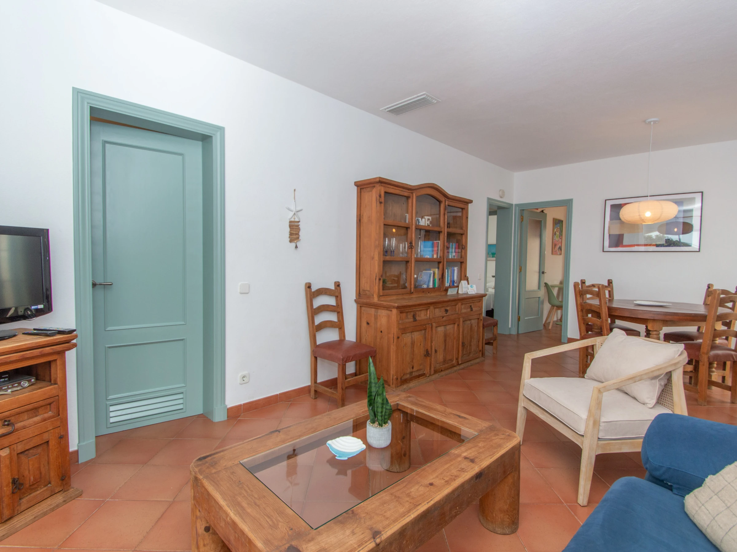 El salón dispone de dos cómodos sofás, de un televisor y de una zona comedor. Tiene acceso directo a la terraza cubierta de la parte delantera dónde poder disfrutar tomando algo en sus cómodas butacas deexterior en esas cálidas y tranquilas noches de verano.