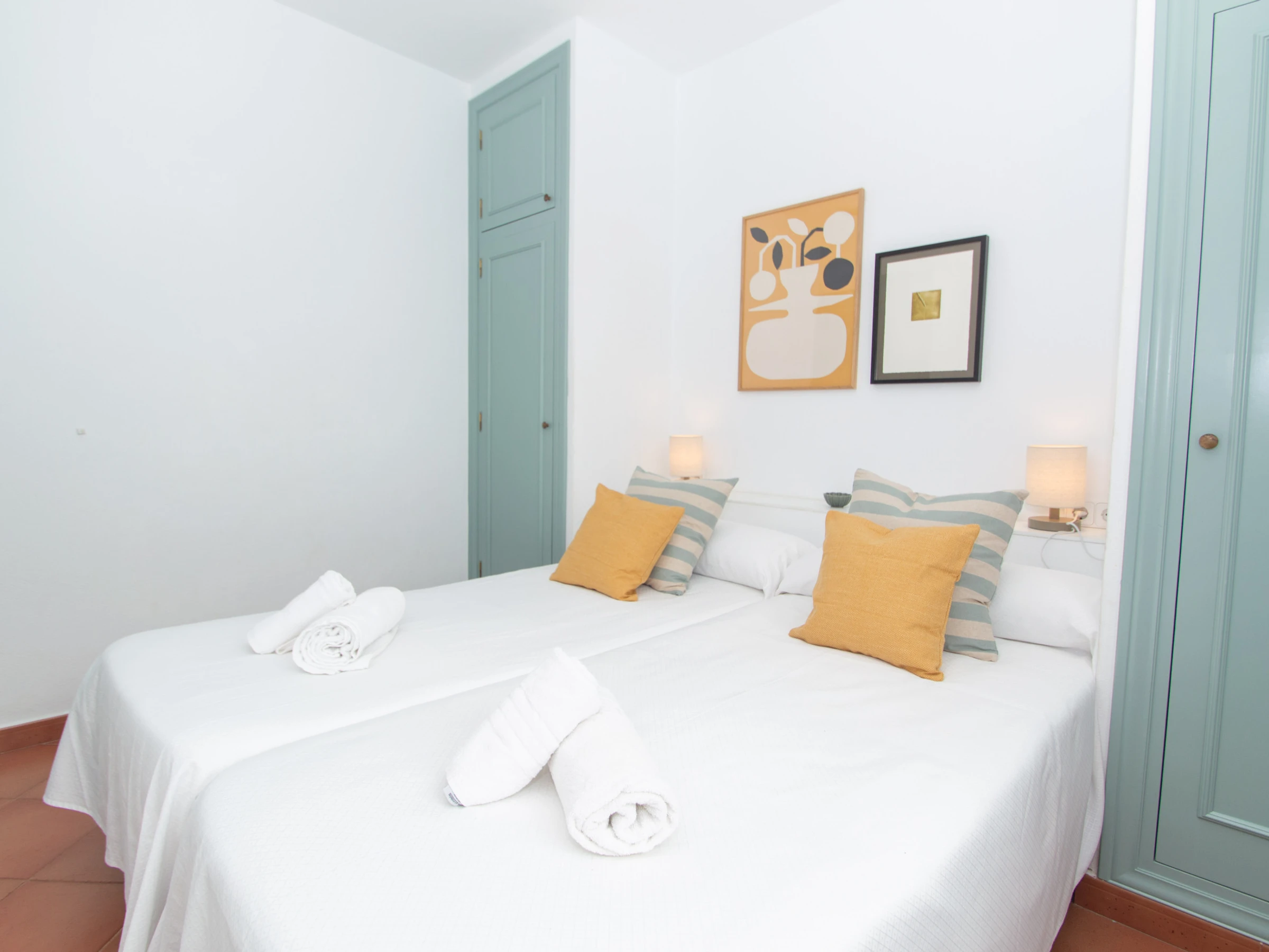 Las habitaciones se dividen en tres dormitorios dobles. Por una parte se encuentra el dormitorio principal en suite con cama de matrimonio y con acceso directo a la terraza. Por otra parte las otras dos habitaciones dobles se conforman con dos camas individuales y cuentan con un cuarto de baño familiar. Todos los dormitorios disponen de armario empotrado.