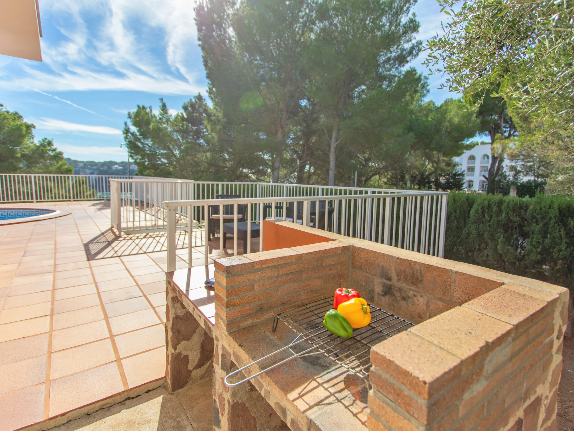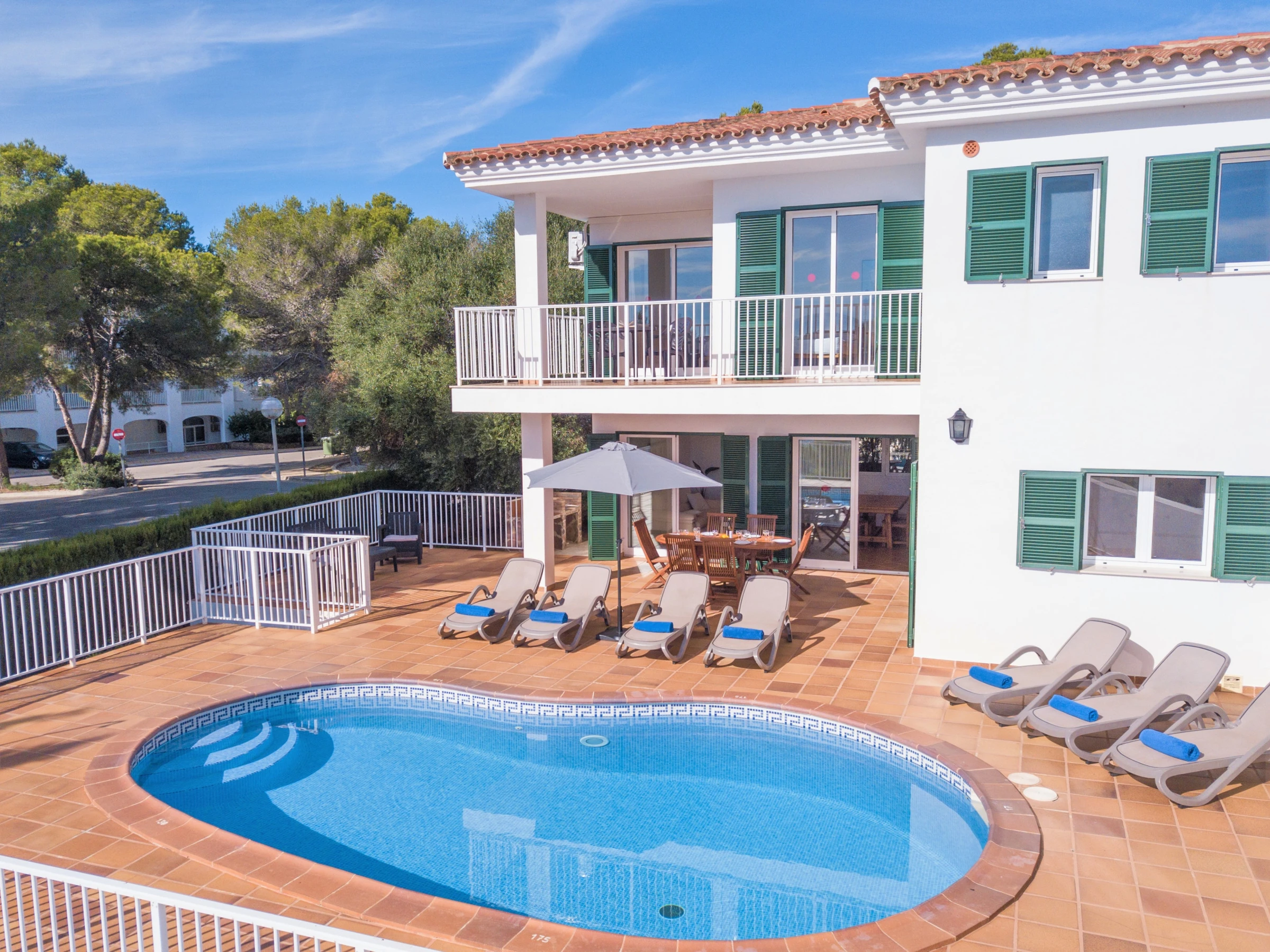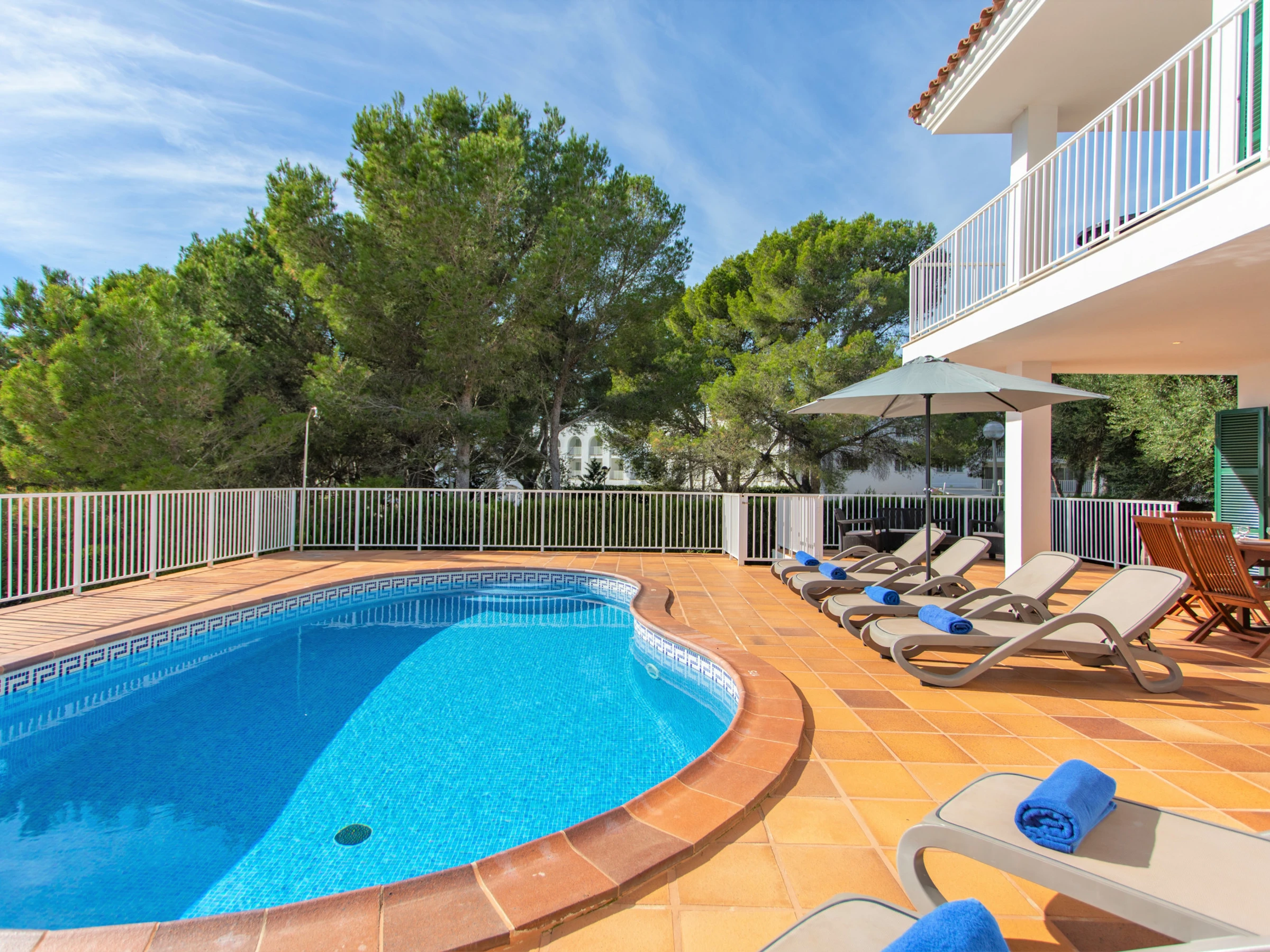 Este alquiler de Villa en Menorca está ubicado en una zona tranquila, segura, familiar, y a tan sólo 500 metros andando de la preciosa playa de Cala Galdana. A unos pocos metros de la villa hay un paso público con escaleras para bajar a la playa y a la zona comercial. Además, esta villa es apta para personas con movilidad reducida.