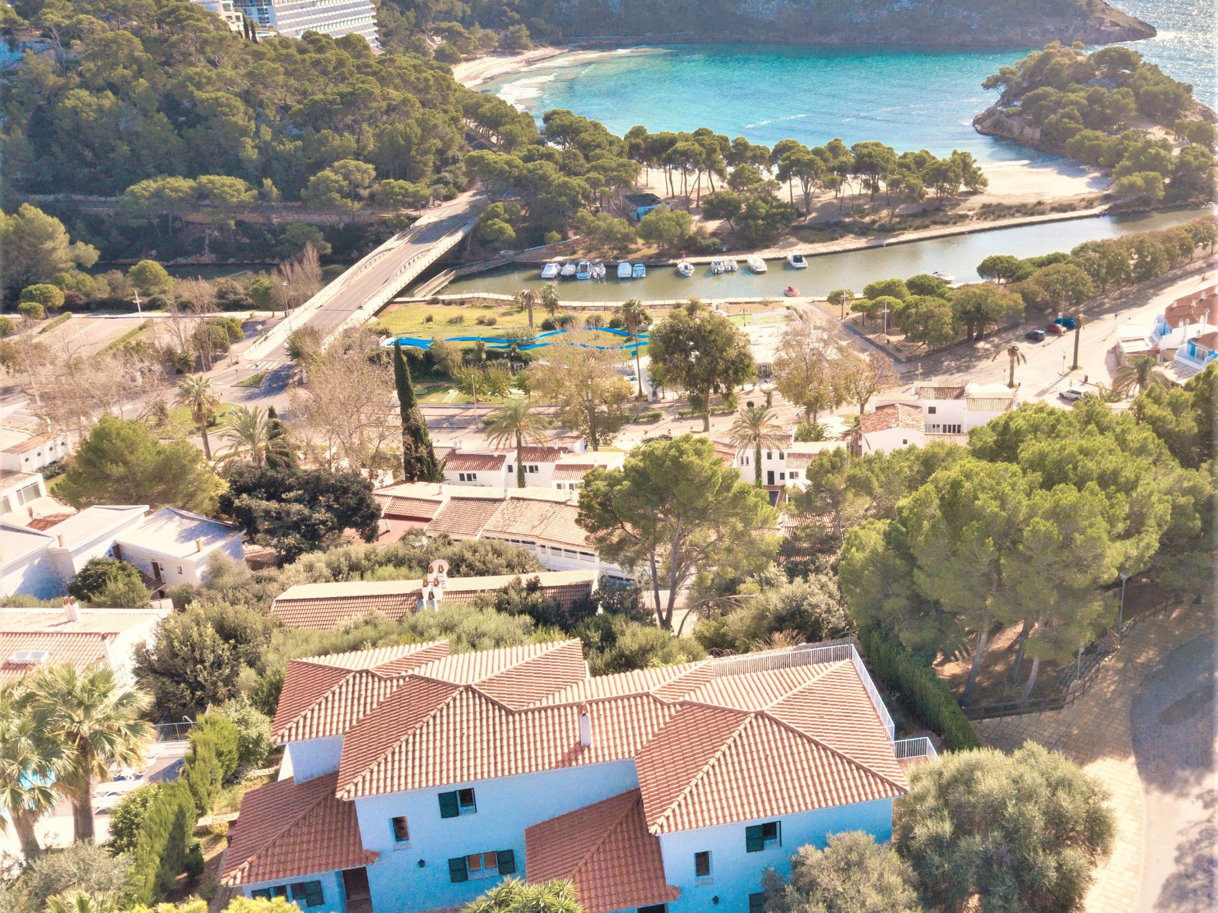 La urbanización es de ambiente familiar, muy segura y tranquila, en su zona comercial dispone de gran variedad de tiendas, restaurantes, supermercados, bares, actividades acuáticas y de ocio como alquiler de embarcaciones, vehículos, kayaks, excursiones a caballo, en bicicleta etc. Se encuentra en medio de un entorno natural, ideal para pasear por ejemplo por el Barranc d'Aljendar o ir andando por el Camí de Cavalls y descubrir Cala Mitjana (35 min andando) la encantadora y virgen Playa de Trebaluger (55 min) o Cala Macarella (30min andando).