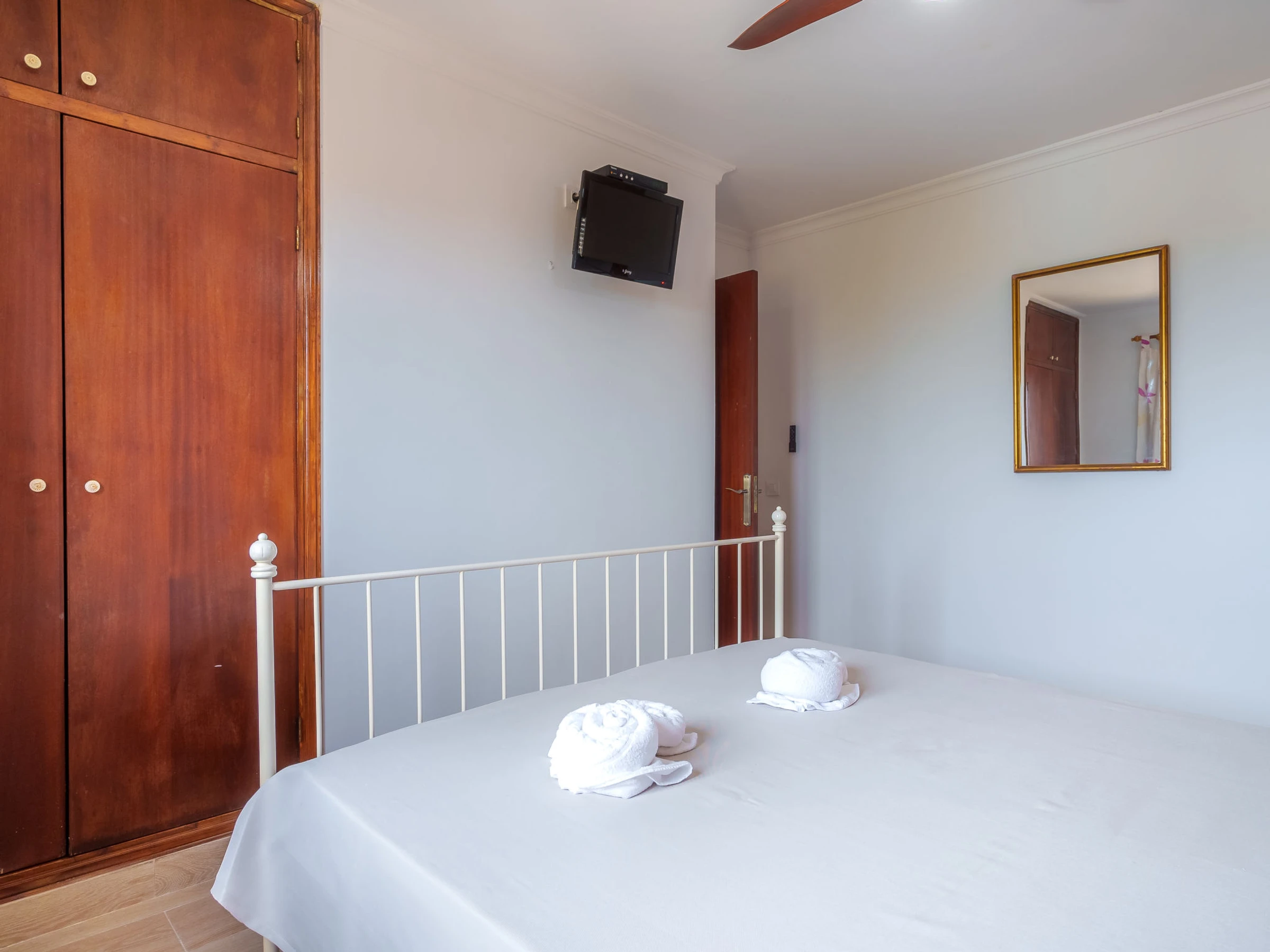 "Cala Torta Na Moli", casa 4 estancias 200 m2. Luminoso, reformada en 2024, con mobiliario funcional: entrada. Salón-comedor con chimenea, mesa de comedor, TV satélite y radio. 2 dorm., cada habitación con 2 camas (90 cm). 1 dorm. con 1 cama de matrimonio (150 cm, 190 cm de longitud), baño/WC y TV. Cocina (3 fogones, horno). Baño/bidet/WC. Calefacción. Muebles de terraza, barbacoa. Vista lejana al mar. El alojamiento dispone de: lavadora, caja fuerte, plancha, trona, cuna hasta 3 años (extra). Internet (Wifi). Permitido máximo 2 mascotas / perros. [hidden] // Reg. Nr.: ESFCTU0000070230009797420000000000000000000000[hidden]4