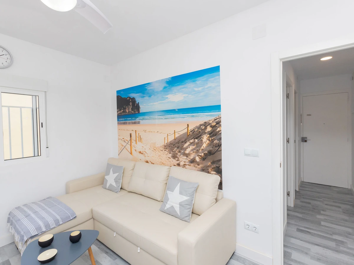 "Calaf II", apartamento de 2 estancias 36 m2. Con mobiliario funcional y confortable: salón-comedor con 1 sofá-cama doble (160 cm, 200 cm de longitud), mesa de comedor, TV digital, canales internacionales, calefacción eléctrica y ventilador. 1 dorm. con 1 x 2 literas (90 cm, 190 cm de longitud), ventilador. Cocina abierta (horno, 4 placas de vitrocerámica). Ducha/bidet/WC. Vista al mar. El alojamiento dispone de: plancha. Internet (Wifi, gratis). Plaza de aparcamiento (vallada, 1 coche). [hidden]