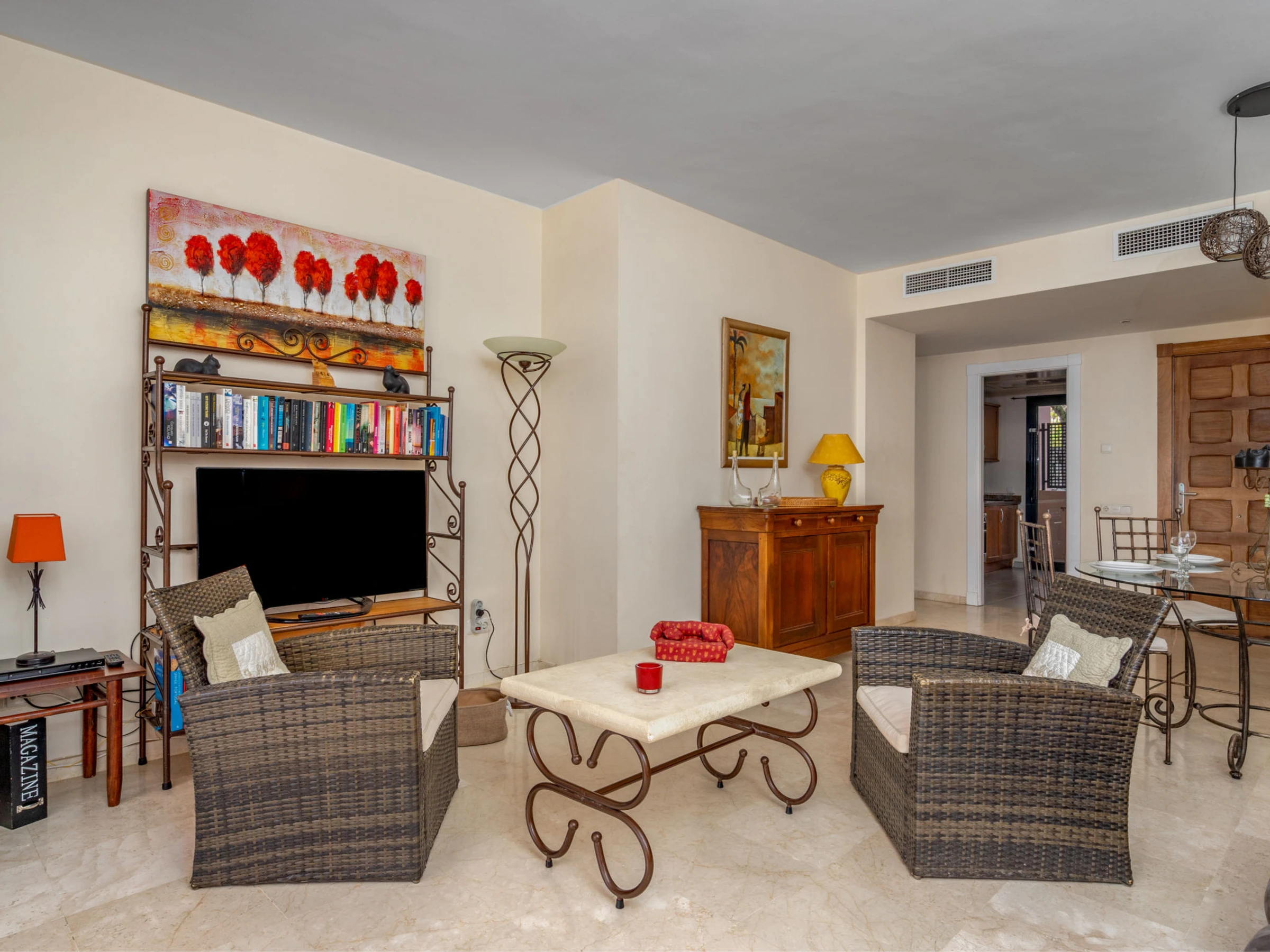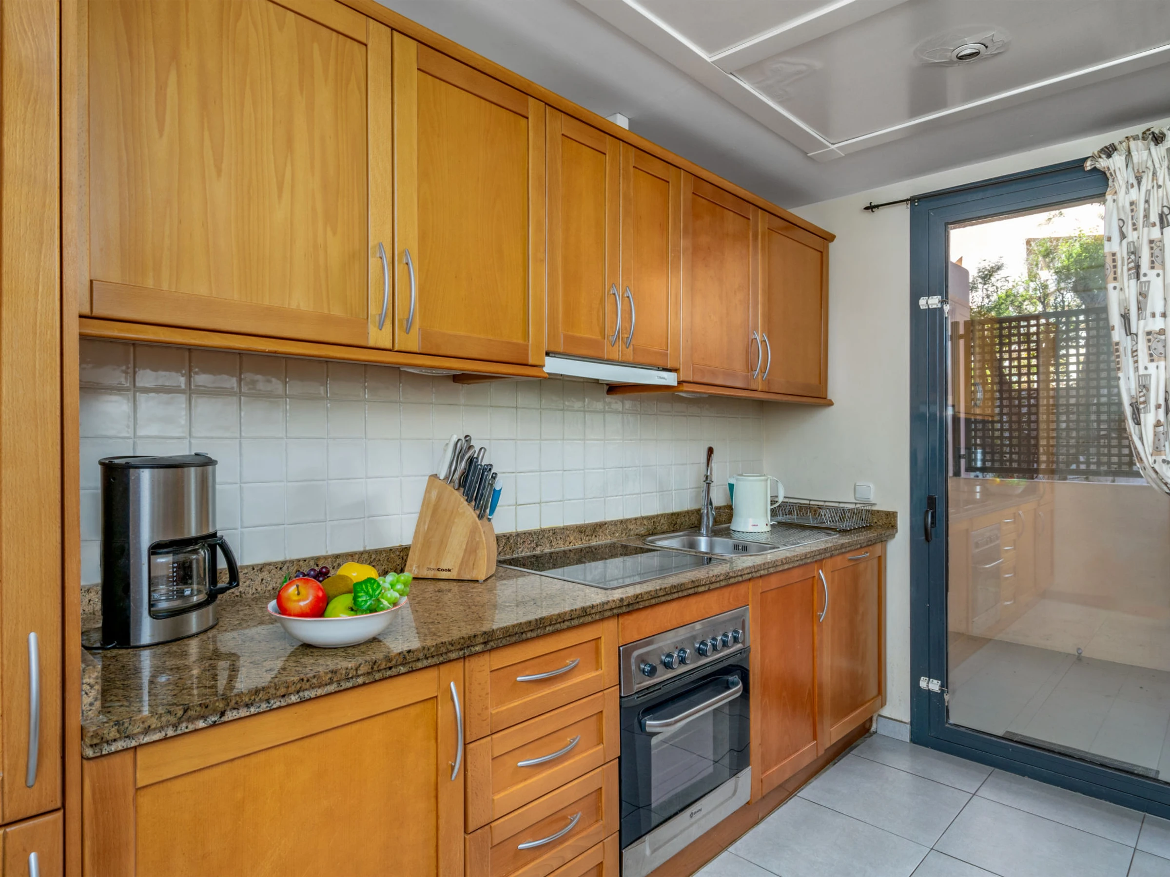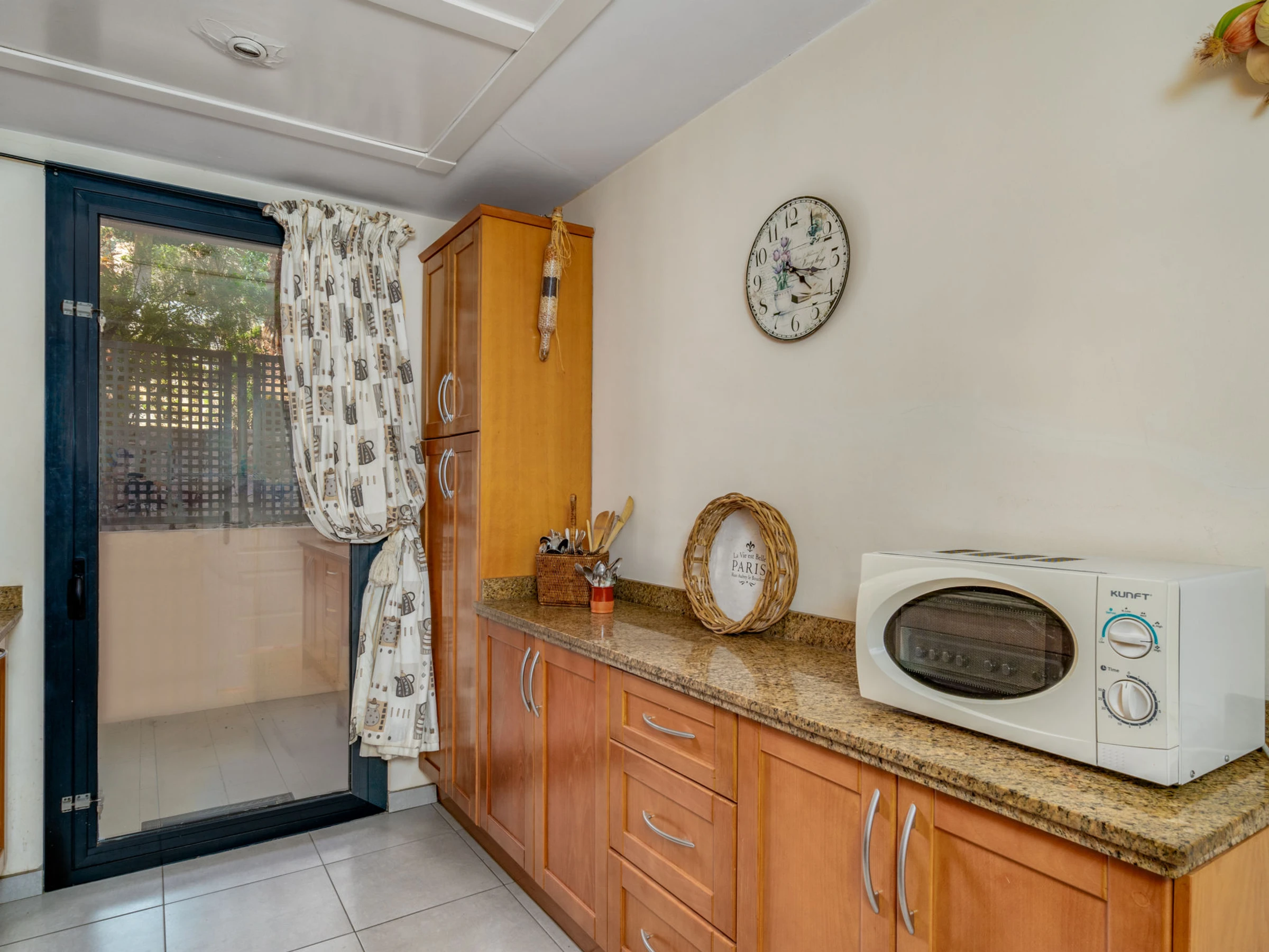 Apartamento de 3 estancias 90 m2, en la planta baja, orientación sur. Espacioso y luminoso, con mobiliario confortable y moderno: salón-comedor con TV satélite y DVD. Salida a la terraza-jardín. 1 dorm. con 1 cama de matrimonio y baño/bidet/WC (privado). Salida a la terraza-jardín. 1 dorm. con 1 cama de matrimonio. Cocina (4 fogones, horno, lavavajillas, 4 placas de vitrocerámica, microondas, congelador). Ducha/WC. Aire acondicionado, aire caliente, calentador (200 litros). Terraza 45 m2, cubierta, jardín 80 m2. Muebles de terraza, tumbonas (2). Vista bonita al mar. El alojamiento dispone de: lavadora, plancha, trona, cuna (extra). Internet (Wifi, gratis). Garaje n. 12. [hidden]