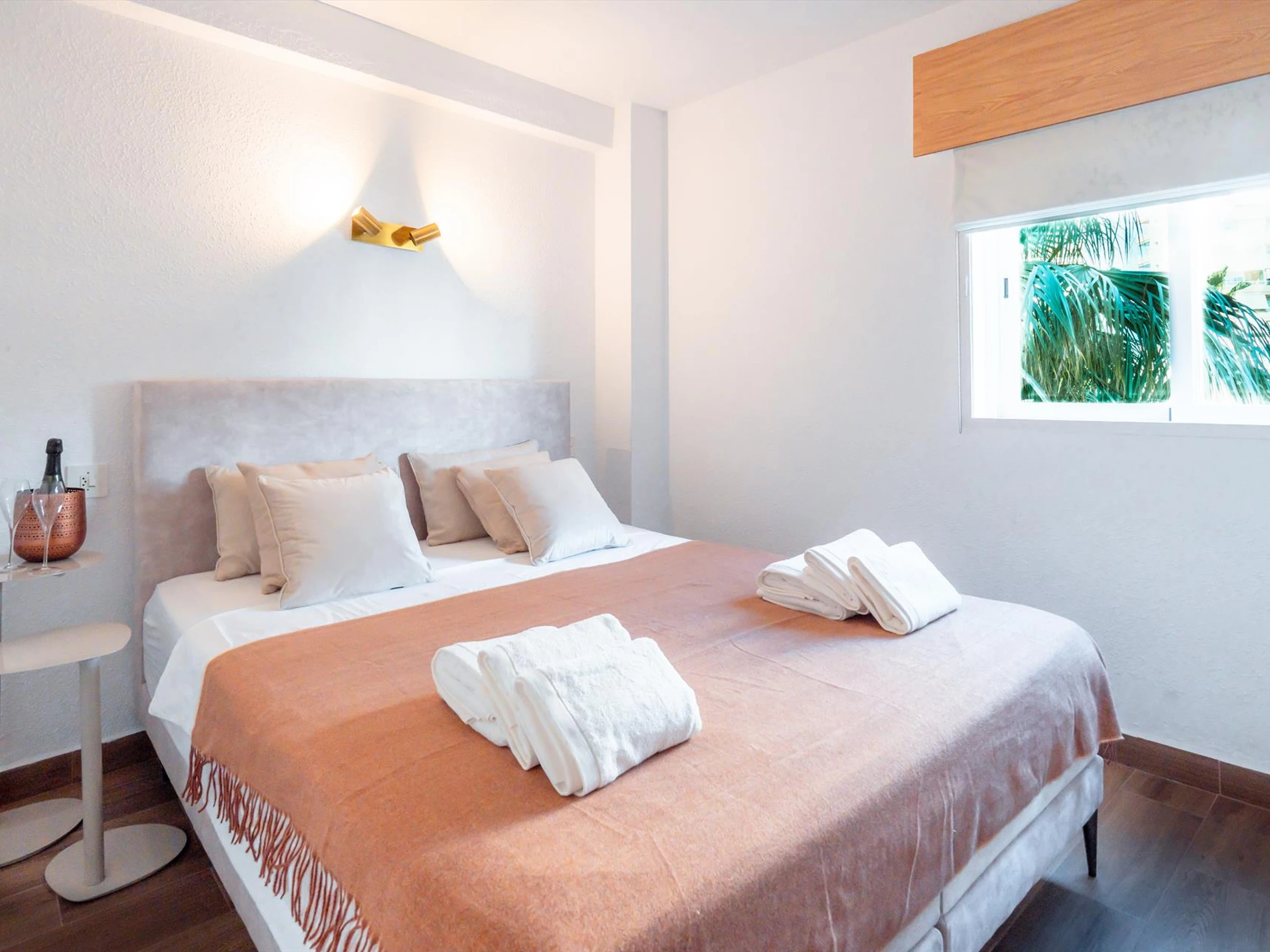 * dormitorio con cama queen size (de 200 x 160cm) y aire acondicionado
