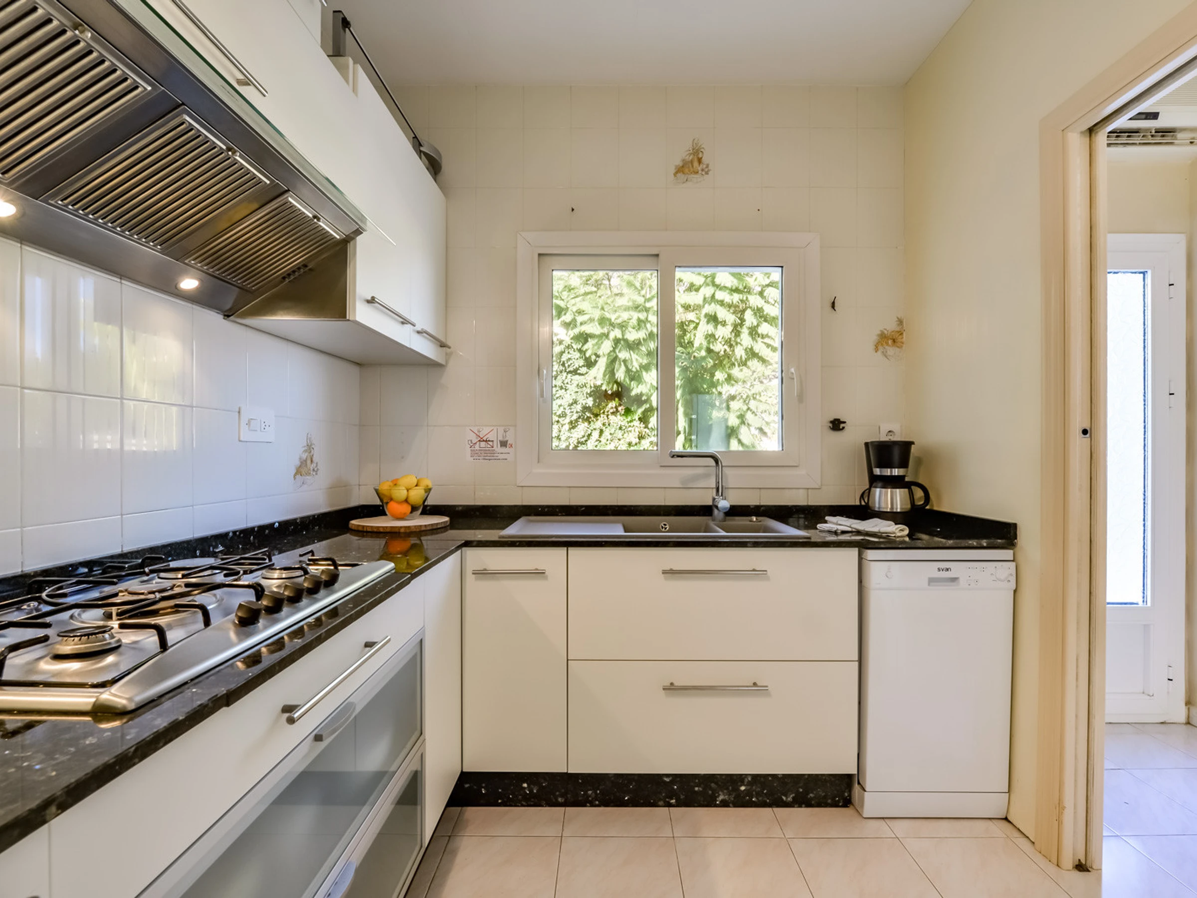 El alojamiento tiene 140 m² de vivienda, con un salón comedor muy luminoso con aire acondicionado y dos espacios, uno con mesa para comer y una zona acristalada con un sofá cama para una persona. Un dormitorio principal con cama doble, aire acondicionado y salida a la terraza, un segundo dormitorio con cama doble y aire acondicionado, un baño con bañera y otro baño con ducha y una cocina independiente completamente equipada. La villa tiene calefacción central en toda la casa.