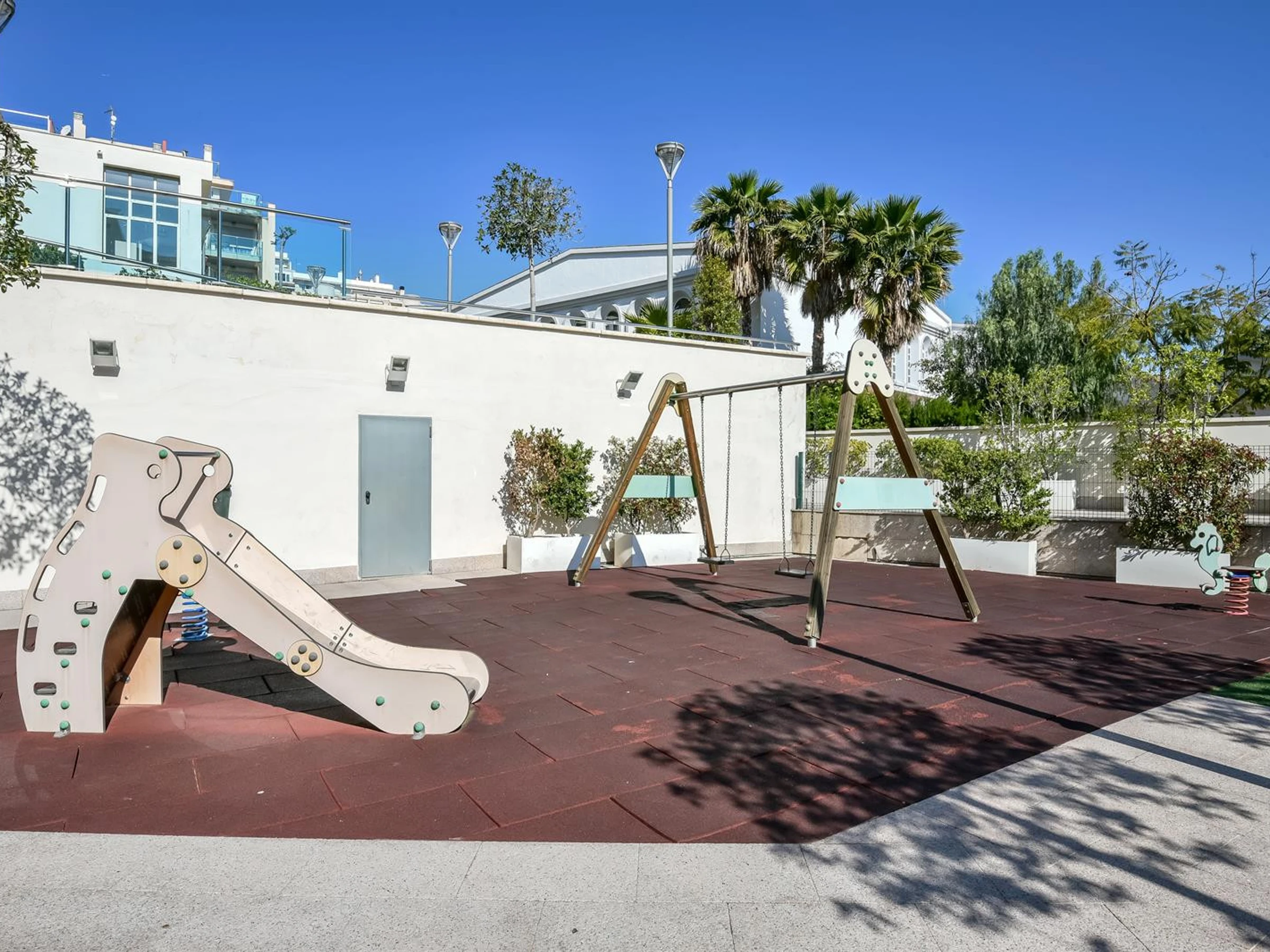 Ubicado en una tranquila zona residencial dentro de un complejo residencial, este apartamento garantiza una estancia placentera y relajante. Con comodidades como ascensor, una espaciosa terraza de 120 m², plancha, acceso a internet wifi, secador de pelo y una zona de juegos infantiles, no faltarán las opciones de entretenimiento y confort.