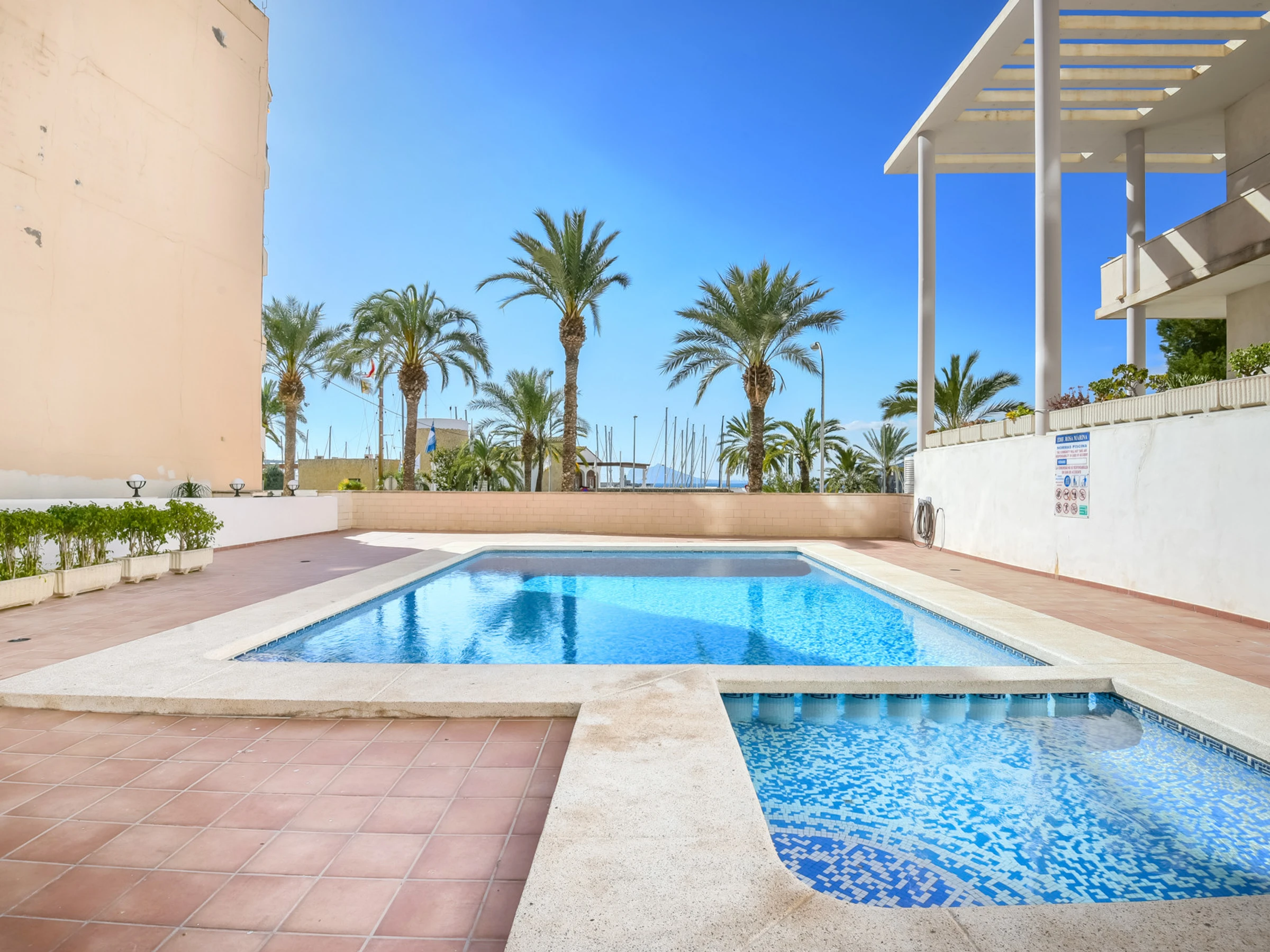 Una terraza de 8 metros cuadrados ofrece vistas impresionantes al mar, la piscina y el puerto deportivo. Este espacio exterior es ideal para disfrutar de desayunos al sol, cócteles al atardecer o simplemente relajarse mientras se contemplan las vistas.
