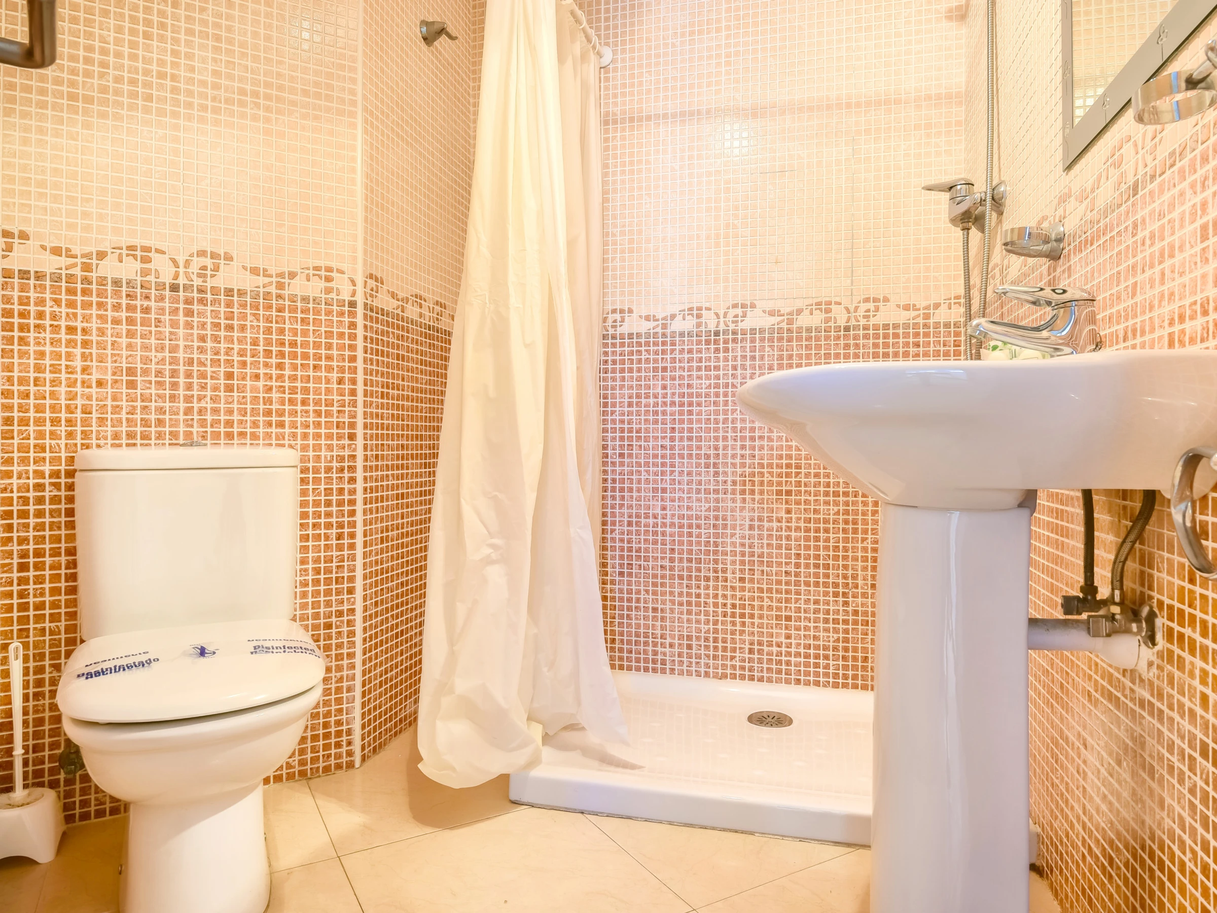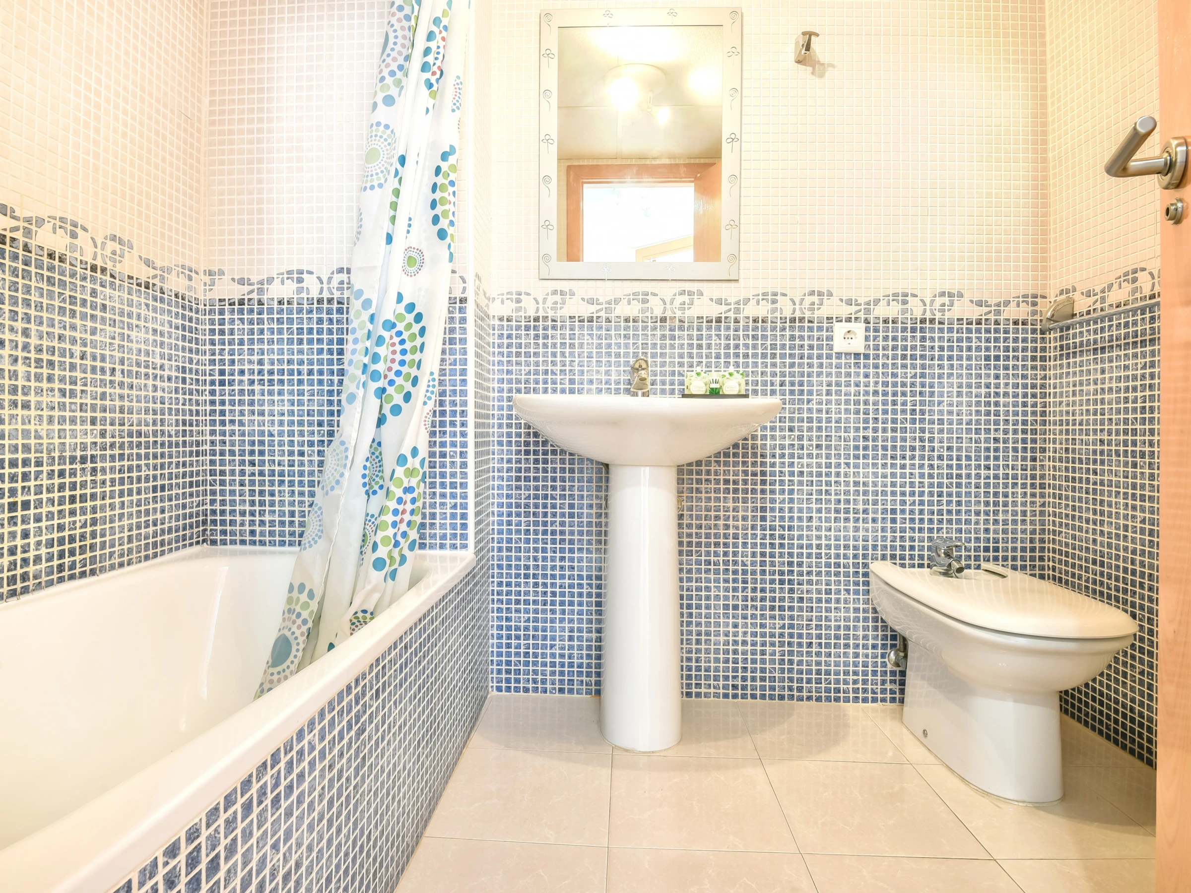 El apartamento dispone de dos baños, uno con ducha y otro con bañera, lo que facilita la rutina diaria de los huéspedes. Cuenta con aire acondicionado y bomba de calor para garantizar el confort en cualquier época del año. La conexión WiFi gratuita y un televisor completan los servicios interiores.