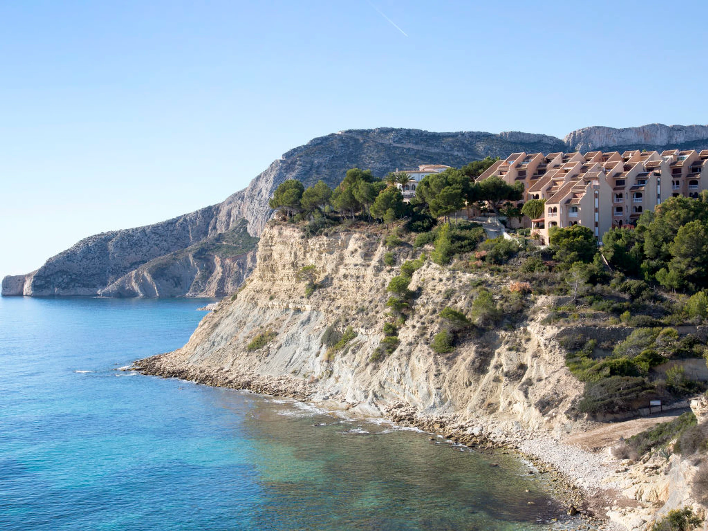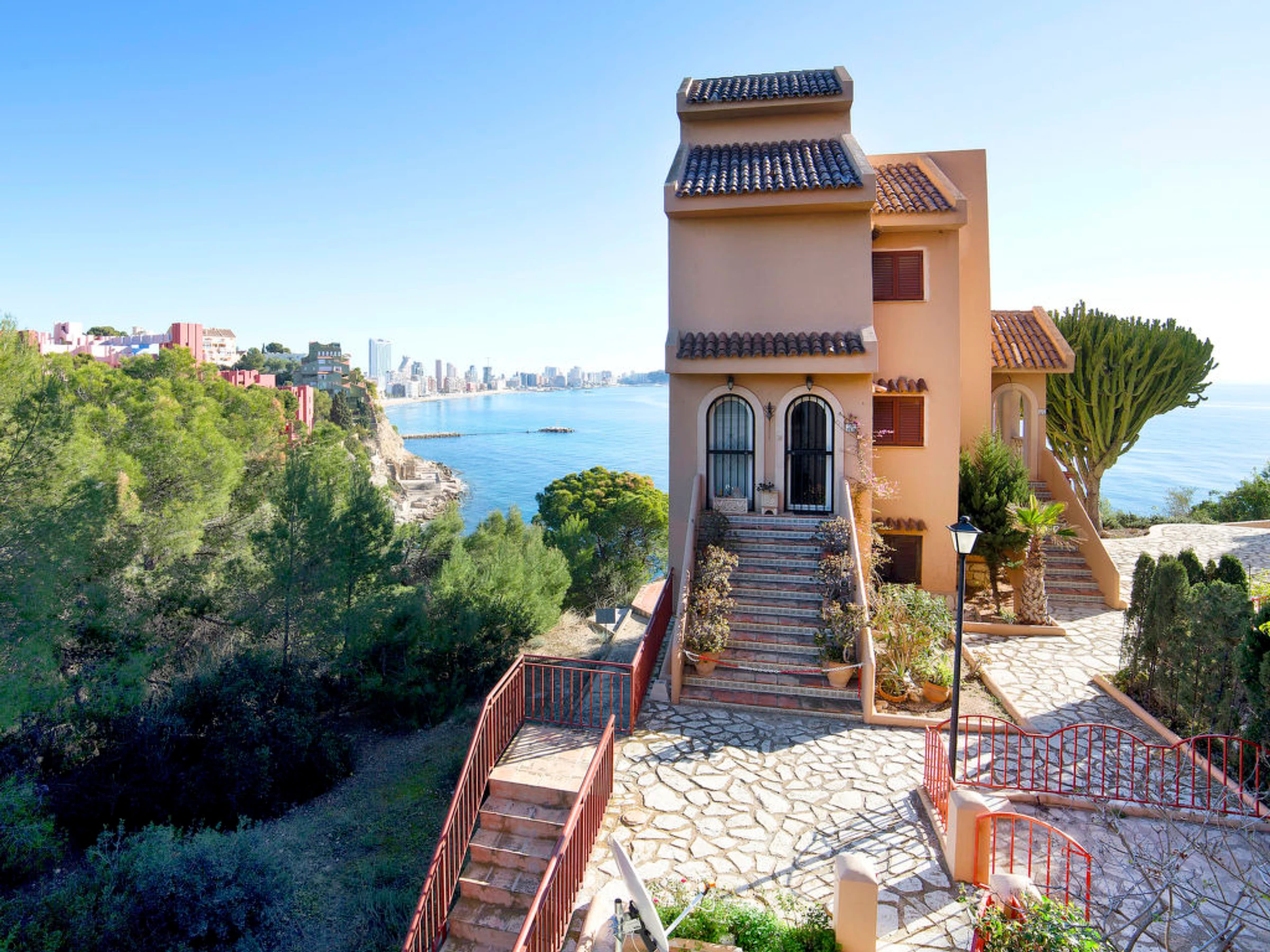La Manzanera: Casa de apartamentos "Vistahermosa", agradable de 2 plantas, adosada por un lado, rodeado de árboles. A 1 km del centro de Calpe, en el distrito La Manzanera, lugar tranquilo, elevado en una colina, area residencial (villas), a 50 m del mar, a 1.6 km de la playa, en una calle sin salida, en una zona peatonal. Comunitario: jardín, patio, piscina vallada [hidden].) con escalera interior. Ducha exterior, terraza. Acceso por escaleras hasta la casa. Aparcamiento junto a la casa. Supermercado 2.5 km, restaurante 1.6 km, bar 1 km, alquiler de bicicletas 2.2 km, bar al aire libre 1.6 km, a 21 minutos del centro andando, playa de arena "Playa Levante" 2 km, centro de buceo 4.9 km, cala para bañarse 150 m. Puerto deportivo 4.9 km, puerto para yates 4.9 km, campo de golf (8 hoyos) 12.6 km, escuela de vela 4.9 km, centro ecuestre 4.9 km. Atracciones en los alrededores: Mundomar, Aqualandia Terra Mitica 20 km. Zona de senderismo Peñon de Ifach 5.3 km.