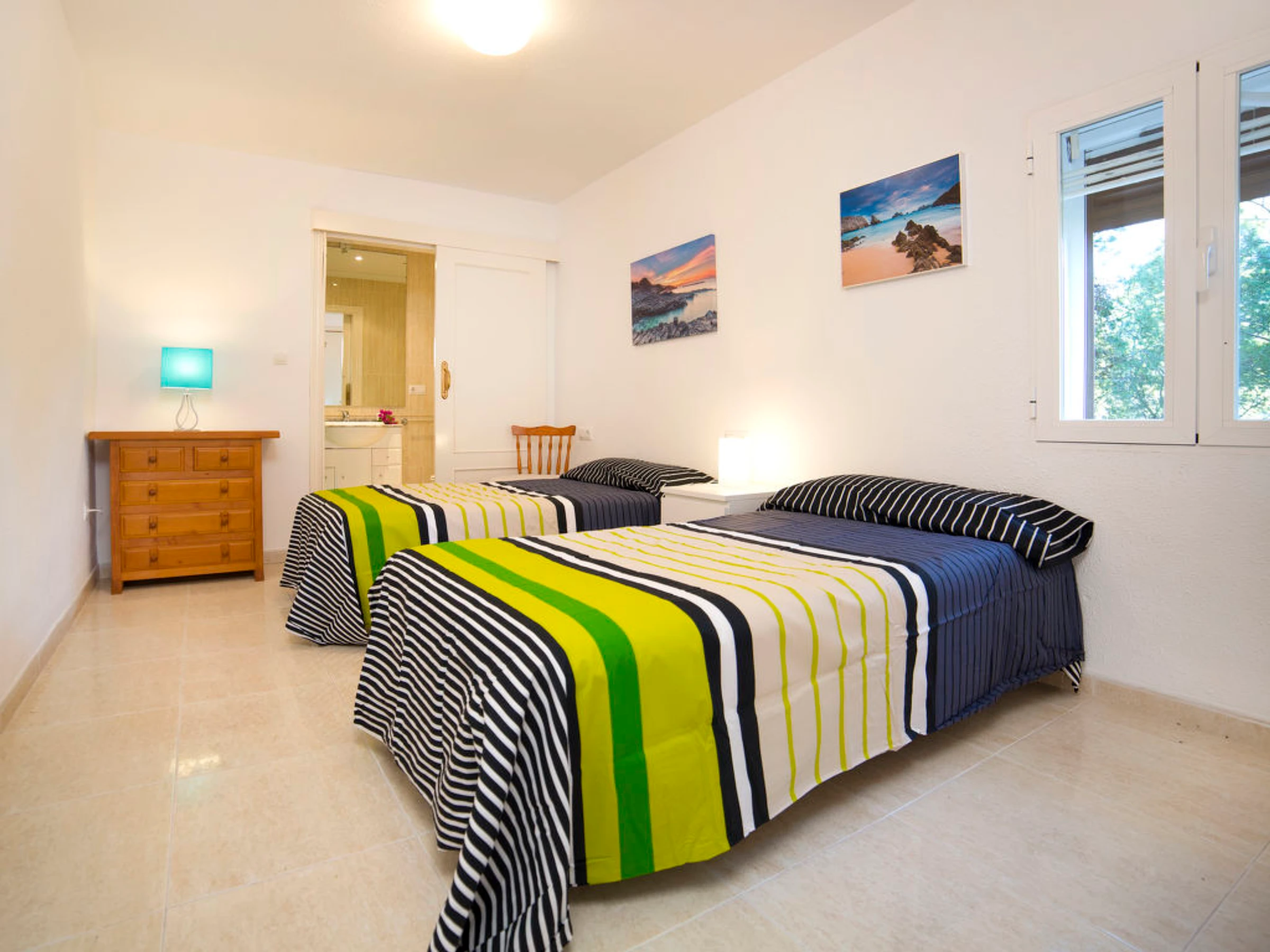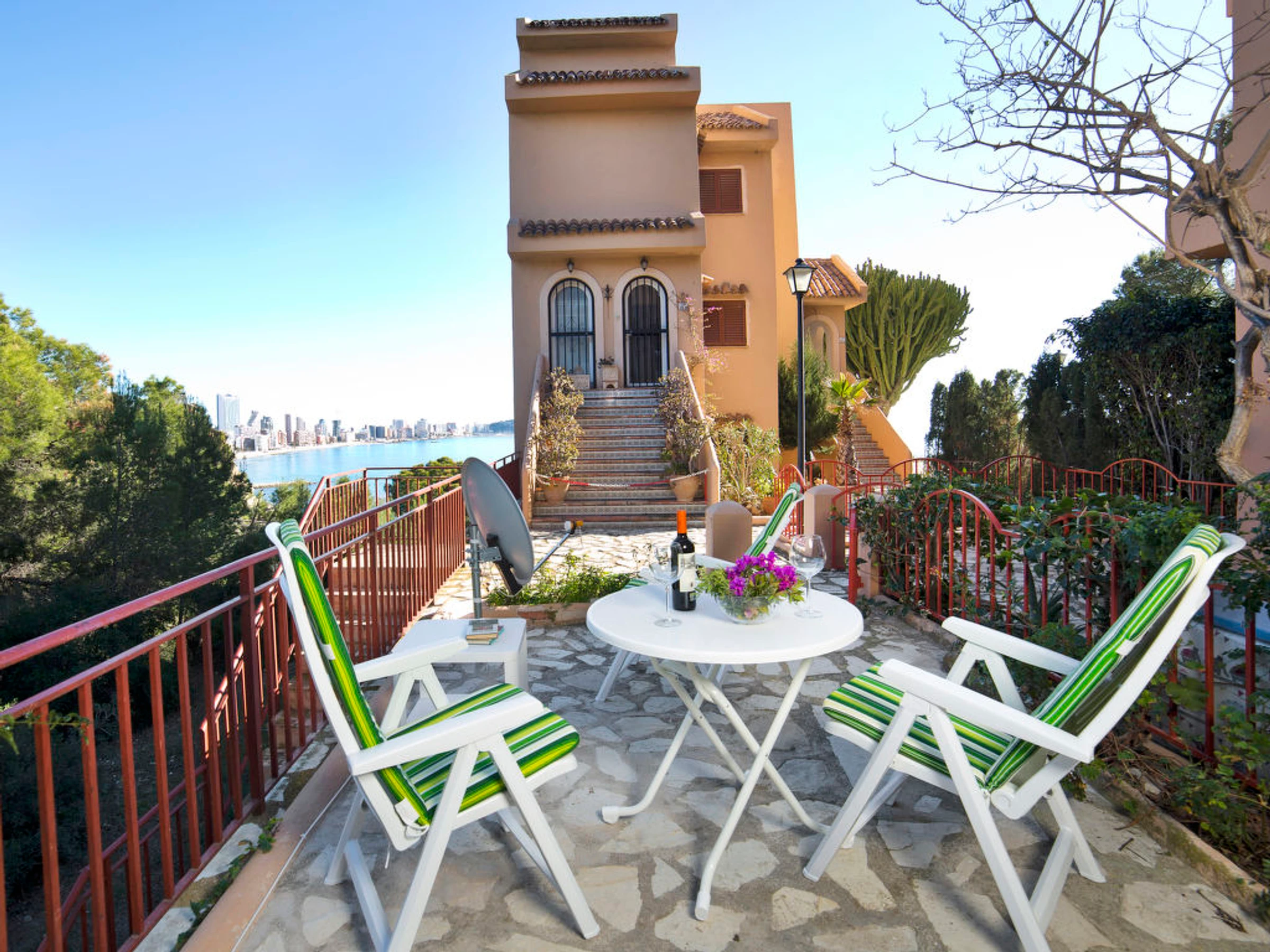 "Vistahermosa 02", apartamento de 4 habitaciones 100 m2 en 2 plantas, en planta baja. Con mobiliario funcional y confortable: salón-comedor con TV digital, aire acondicionado y bomba de calor, caliente. Salida a la terraza. 1 dorm. con 2 camas y ducha/WC. Pequeña cocina (horno, lavavajillas, 4 placas de vitrocerámica, microondas). Planta superior: 1 dorm. con 2 camas. 1 dorm. con 1 cama doble, aire acondicionado y bomba de calor, caliente. Salida al balcón. Baño/WC. Terraza pequeña. Muebles de terraza. Vista bonita al mar. El alojamiento dispone de: lavadora. No adecuado para niños pequeños. [hidden]