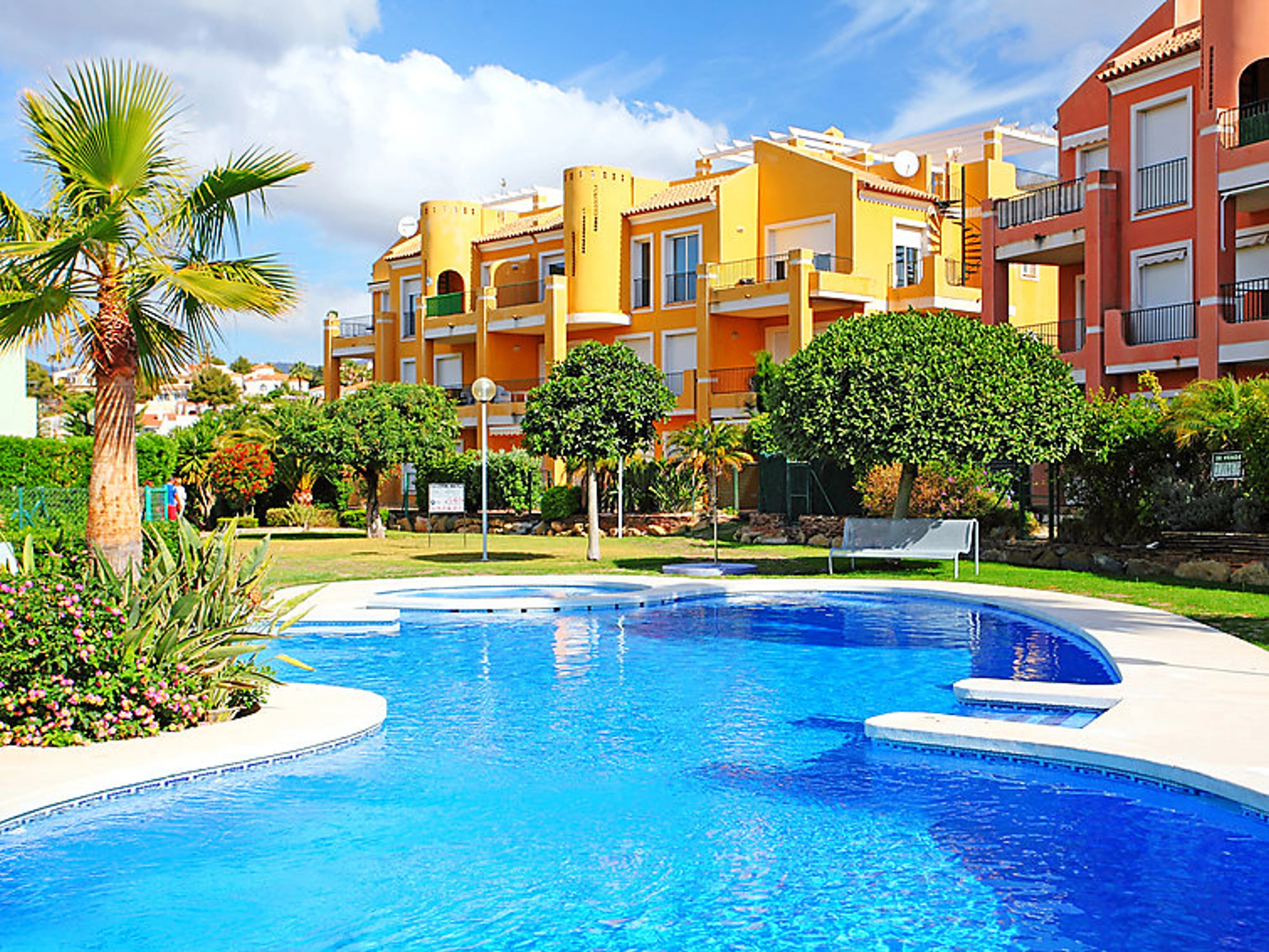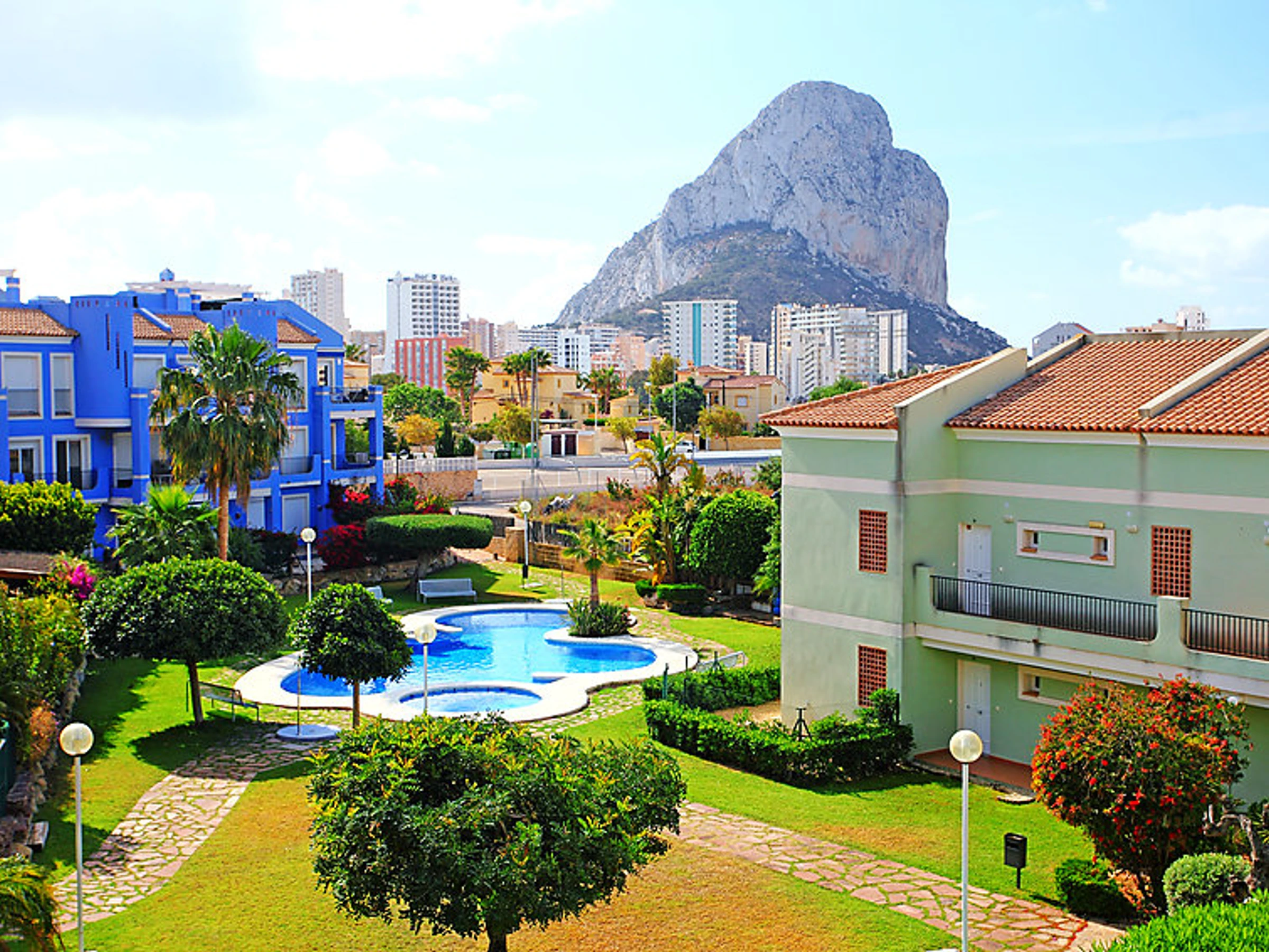 Enchinent a 2 km de Calpe: Casa de apartamentos "Estrella de Calpe", de 3 plantas, adosada por un lado. A 500 m del centro de Calpe, en el distrito Enchinent, lugar tranquilo, soleado, a 500 m de la playa. Comunitario: terreno (vallado), jardín con césped, piscina (01.01.-31.12.). Privado: jardín grande, patio. En el inmueble: ascensor. Cambio de sábanas 1 vez por semana (suplemento extra). Cambio de toallas 1 vez por semana (suplemento extra). Posibilidad de limpieza (extra). Servicio de compra anterior a la llegada, bajo petición. Transfer desde el aeropuerto (extra). Aparcamiento. Tienda, supermercado 50 m, restaurante, bar 100 m, panadería 50 m, playa de arena "Playa del Bol" 500 m. Puerto deportivo 800 m, puerto para yates 1.5 km, campo de golf (18 hoyos) 20 km, escuela de surf 900 m, tenis 800 m. Atracciones en los alrededores: Aqualandia, Mundomar, Terra Mítica, Terra Natura y Benidom Palace (Benidorm). Zona de senderismo Peñon de Ifach 2 km, Sierra Bernia. A tener en cuenta: adecuado para familias, equipamiento para bebés a demanda (extra). Bajo petición: transfer desde el aeropuerto a la vivienda de vacaciones. El complejo tiene además 3 bungalows para alquilar.