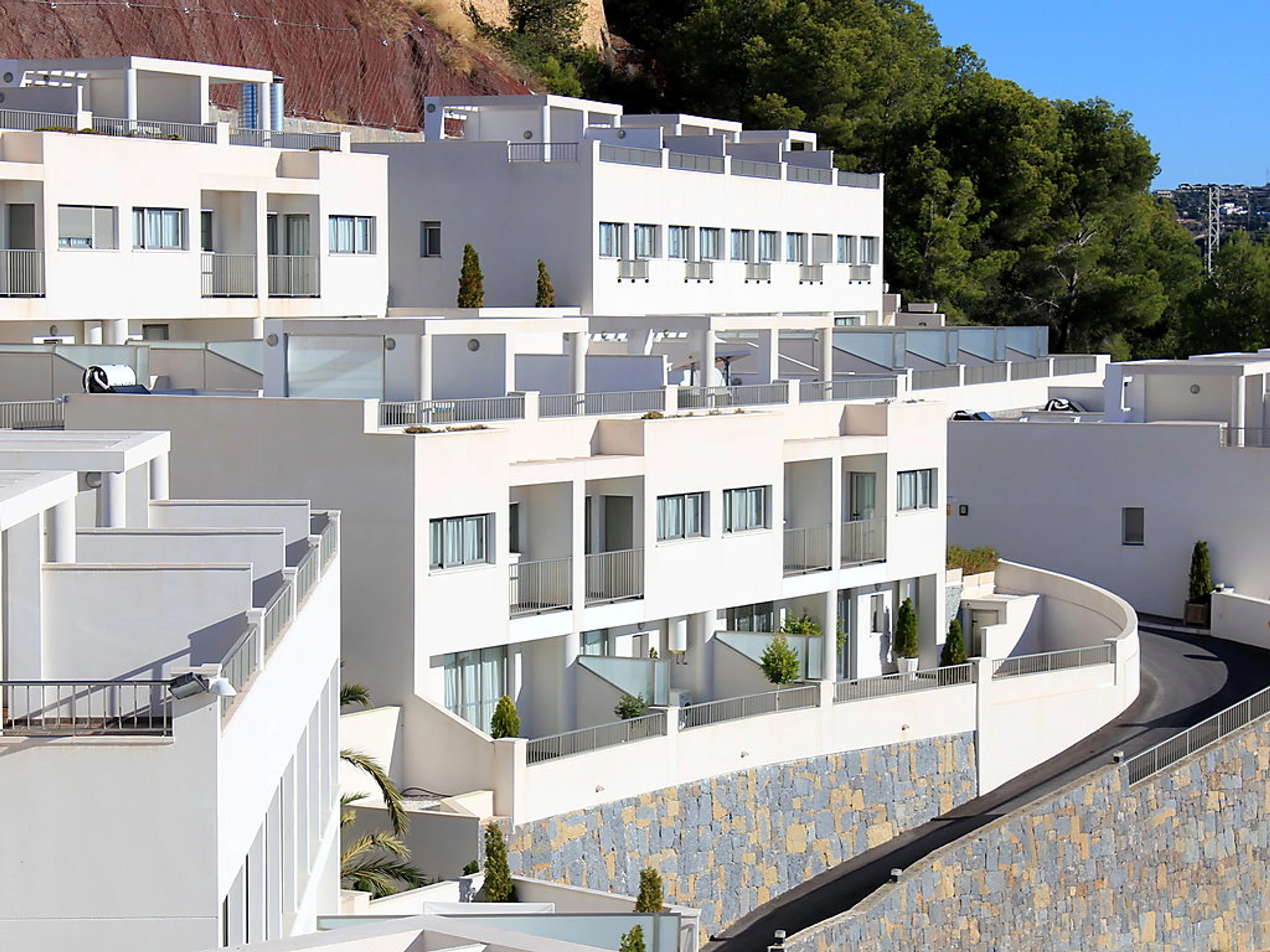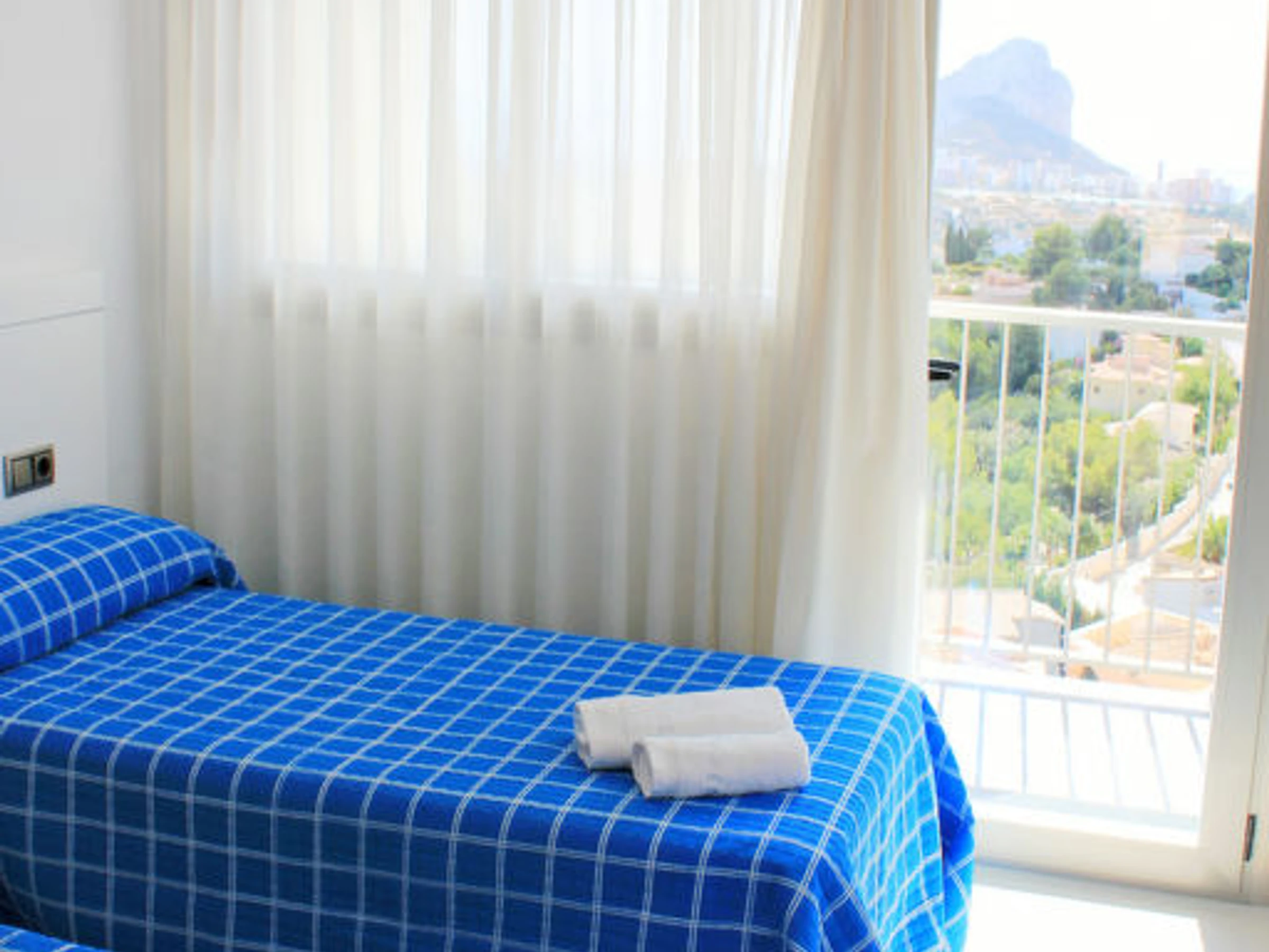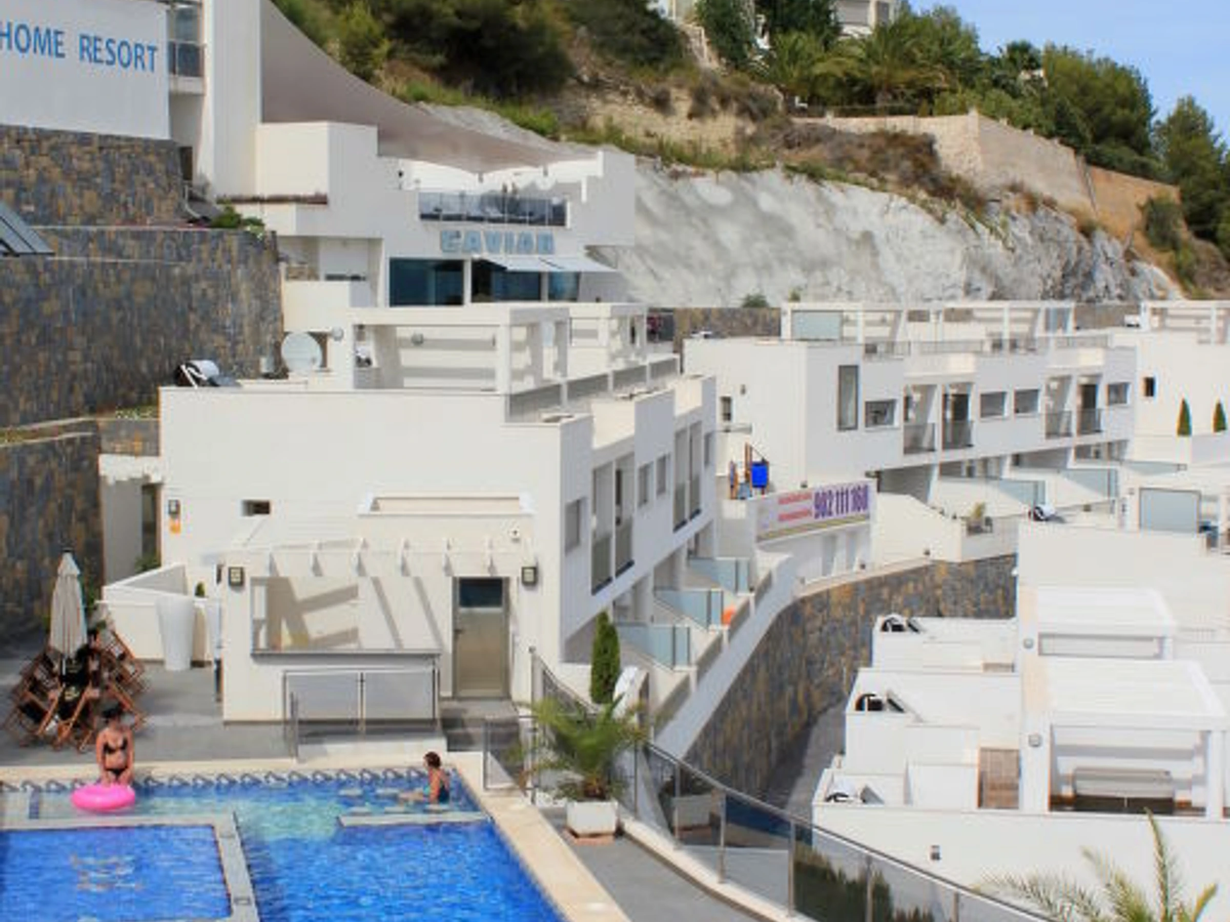 Colina del Sol a 3 km de Calpe: Casa de apartamentos "Colina del sol 01", amplio, confortable, lujoso de 2 plantas, adosada por un lado, rodeado de campos. 33 apartamentos en la residencia. Lugar tranquilo, soleado area residencial (villas), a 4 km del mar, en el campo. Comunitario: terreno (vallado), piscina climatizada (01.01.-31.12.). WC en zona de piscina, piscina para niños, terraza-jardín, muebles de jardín, parque infantil. Privado: jacuzzi, terraza, muebles de jardín. En el inmueble: recepción, restaurante, bar, Wifi, aire acondicionado, lavadora, alquiler de bicicletas. Aparcamiento (número limitado, extra). Tienda 4 km, supermercado 3 km, restaurante, café, alquiler de bicicletas, bar al aire libre 50 m, playa de arena "Playa Calpe" 4 km, centro de buceo 4.5 km. Puerto deportivo 4.5 km, puerto para yates 4.5 km, campo de golf (9 hoyos) 5 km, escuela de surf 10 km, escuela de vela 10 km. Atracciones en los alrededores: Aqualiandia 20 km, Terra Mitica 20 km, Terra Natura 20 km, Peñon de Ifach 5 km. A tener en cuenta: coche indispensable. Animación en la temporada. Adecuado para familias, equipamiento para bebés a demanda (extra), guardería infantil en la temporada (extra). Grupos de jóvenes sólo bajo petición. Vigilancia nocturna. Residencia con vigilancia. La foto del catálogo es sólo un ejemplo de una vivienda tipo. La propiedad con ref: ES9730.431.4 está situada en la misma parcela. El complejo tiene además 3 casas para alquilar.