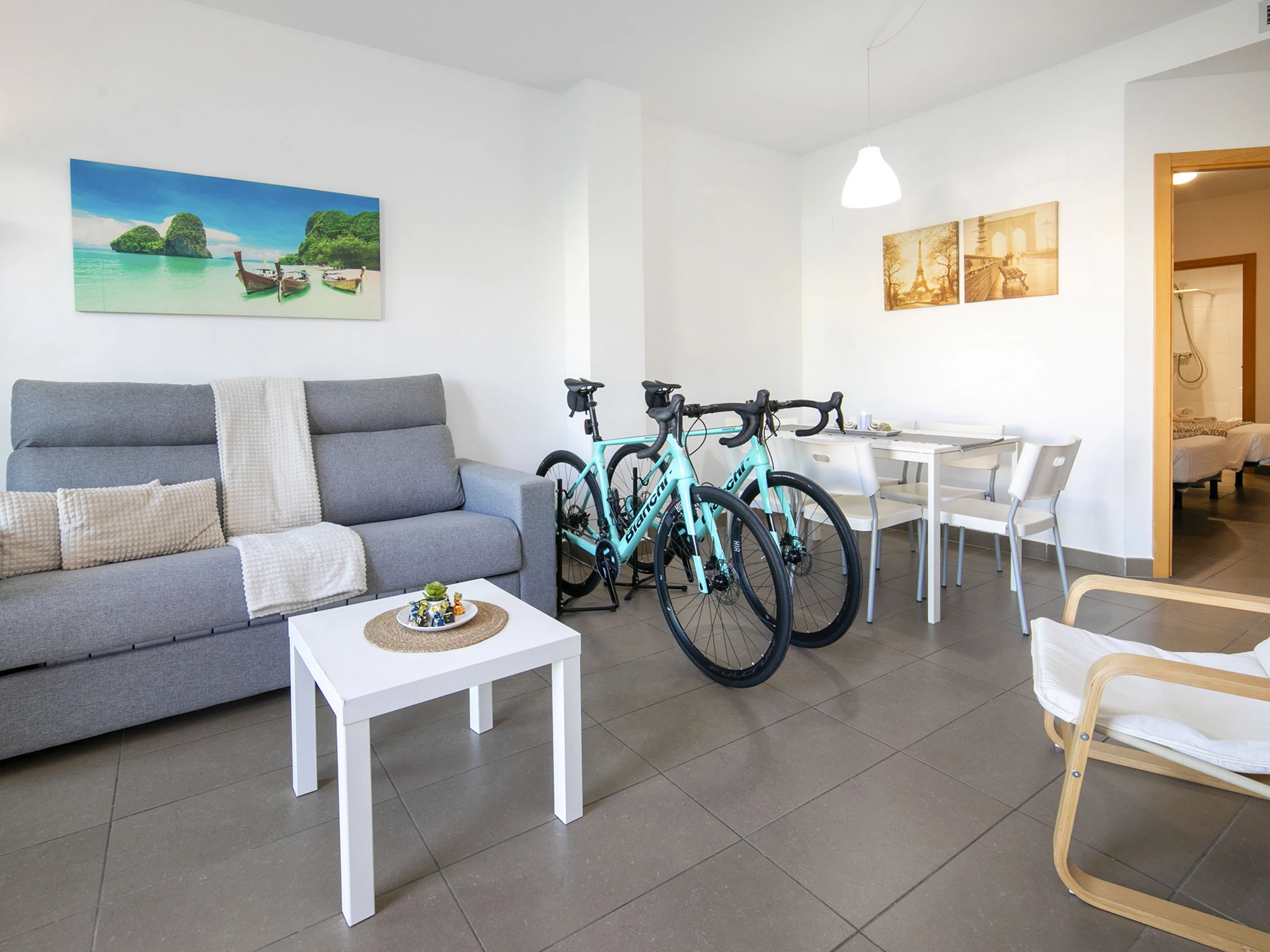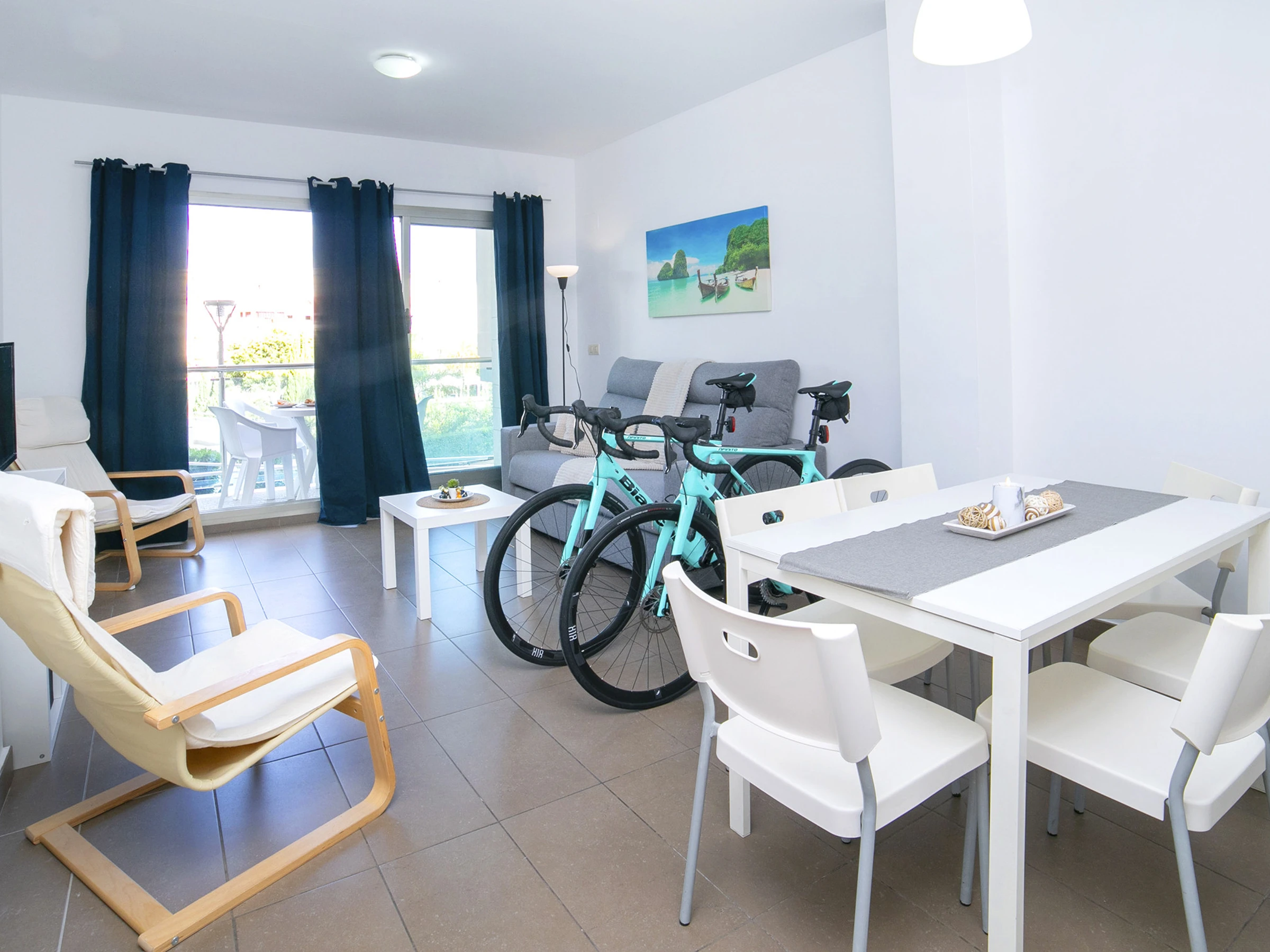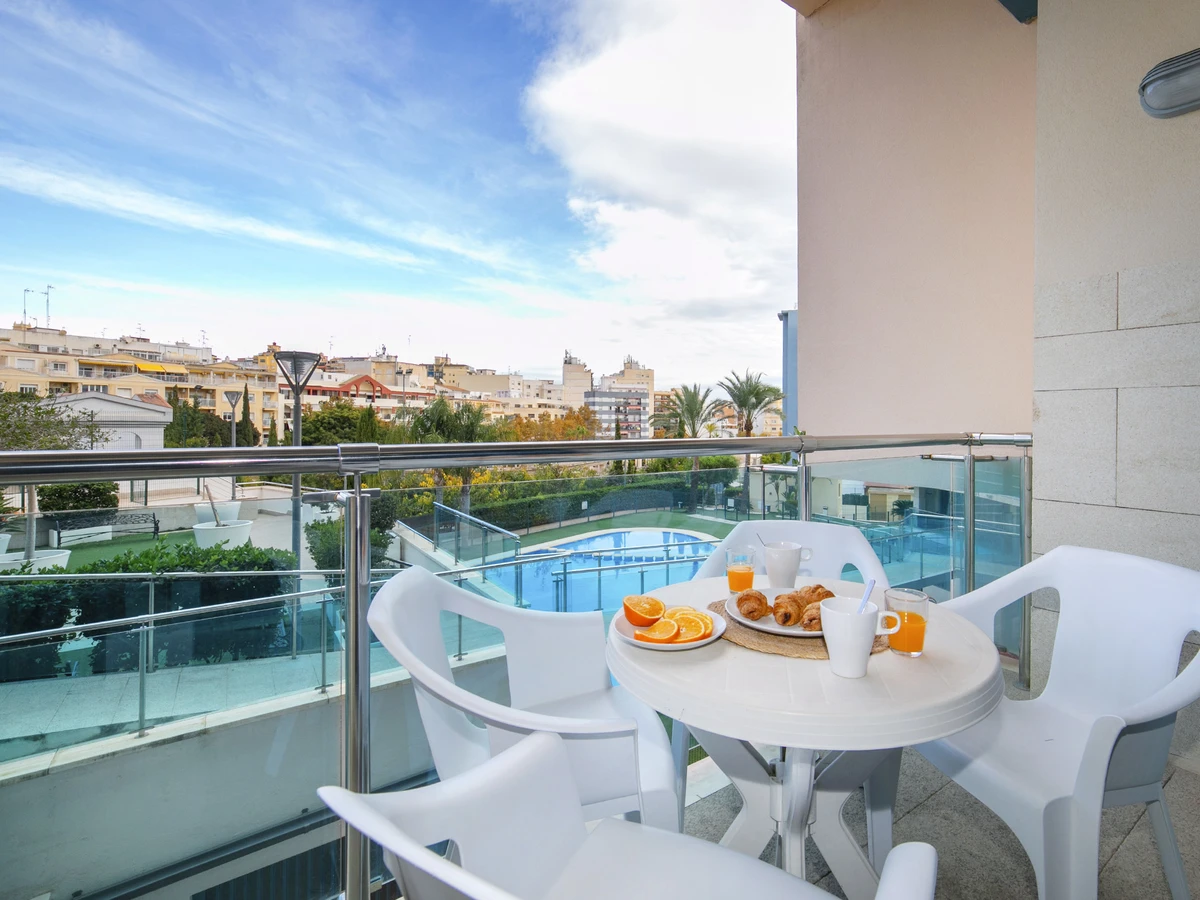Dispone de ascensor, terraza, lavadora, plancha, acceso internet (wifi), zona infantil, calefacción bomba de calor, aire acondicionado, piscina comunitaria, garaje en mismo edificio, 1 Televisor.