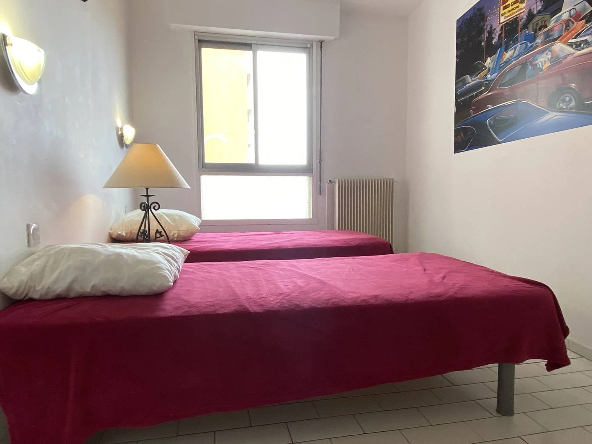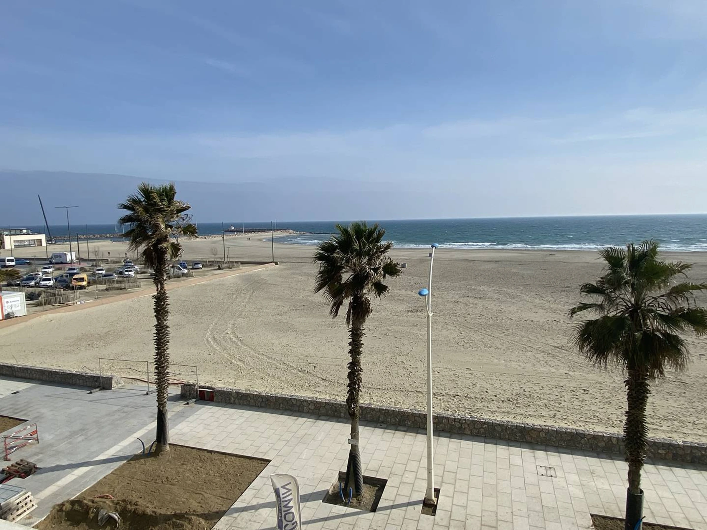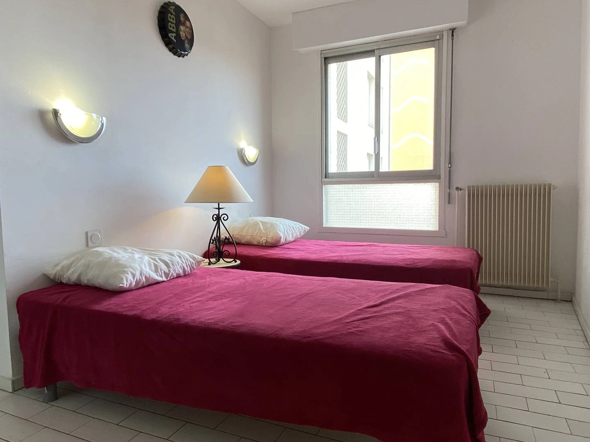 La terraza ofrece una magnífica luz sobre la playa para desayunos coloridos. Un dormitorio con cama de matrimonio de 160cm y armario, un segundo dormitorio con dos camas individuales y una cama nido. Un baño y un aseo están separados.
