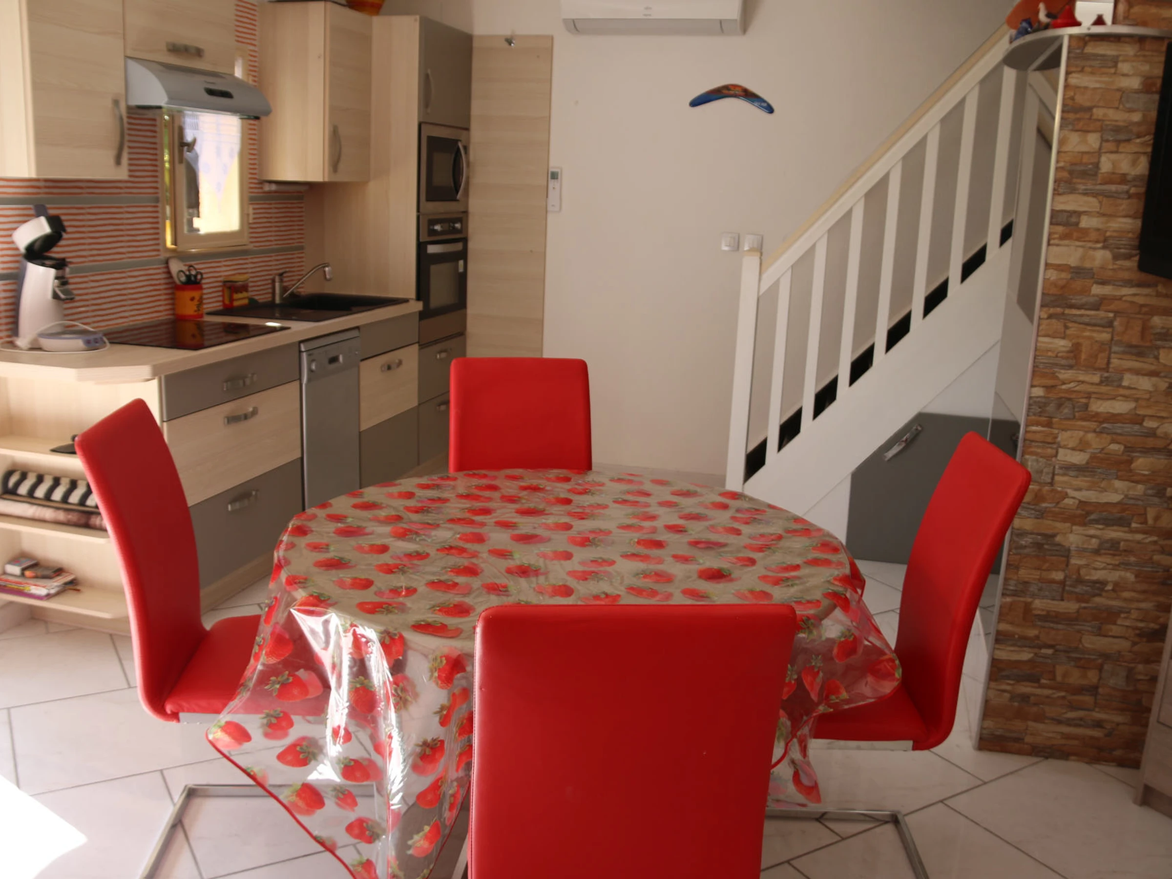 Villa duplex con aire acondicionado para 4 personas, situado Port Venus Village, planta baja. Sala de estar. Area de cocina equipado con lavavajillas, lavadora, microondas, horno, cafetera, tetera.. 1er piso : un dormitario con cama 140cm y tv; un dormitorio con cama 160cm y tv. Bano y wc separados. Terraza con obtrador. Deposito de seguridad. Estacionamiento n°V19. Residencia con piscina.