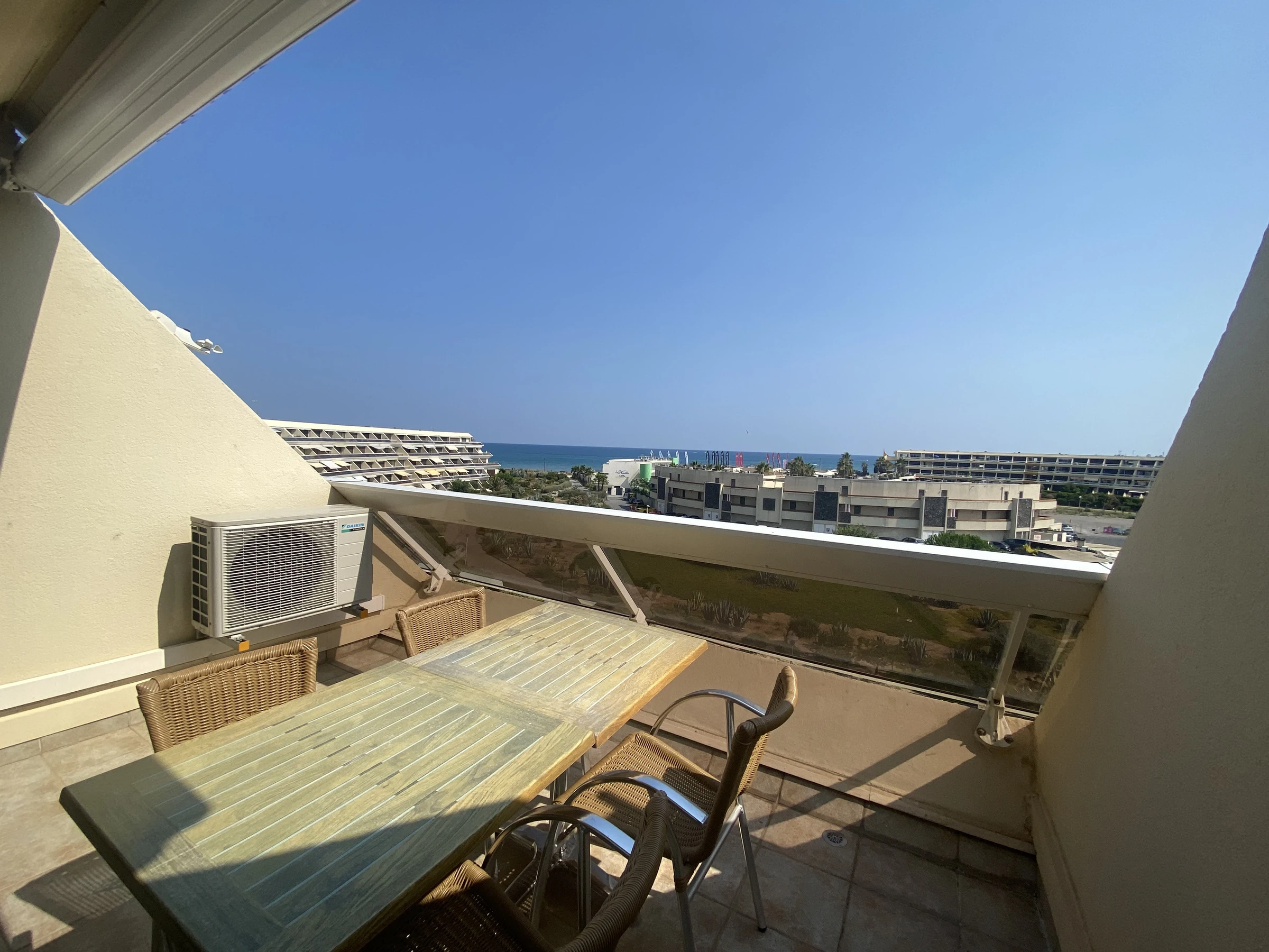 Apartamento con aire acondicionado, para 2 personas, situado en Heliopolis entrada K. 4to piso sin ascensor, lado interior. Sala de estar con TV. Area de cocina con lavavajillas, microondas, cafetera Tassimo. Un dormitario con cama de 160 cm. Bano con lavadora, secador de pelo. WC separado. Terraza con obturador, viata al mar en el lado. Estacionamiento n°344.