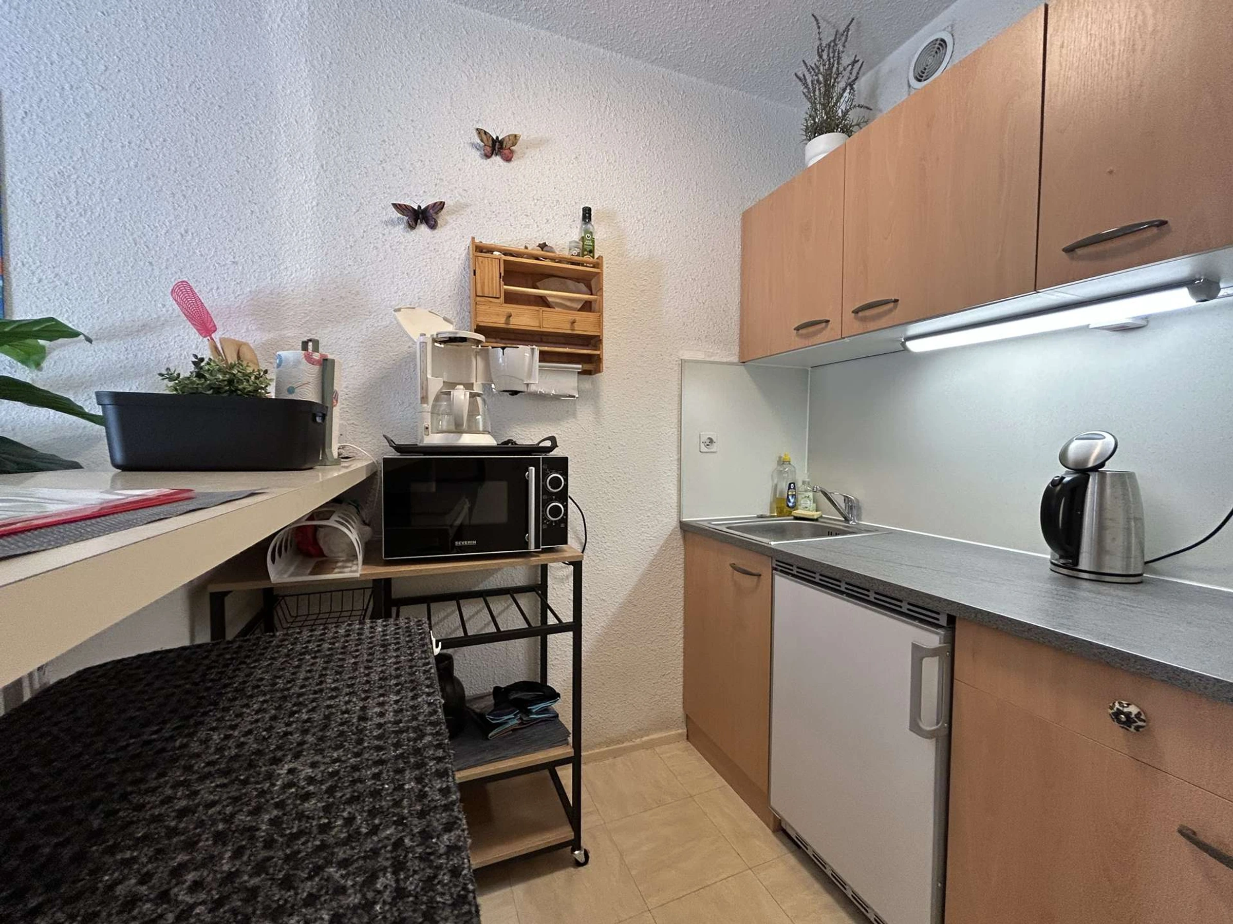 Este apartamento vacacional, ubicado en la 3.ª planta con ascensor, incluye una sala de estar con sofá cama doble y televisión, un dormitorio con una cama doble y una cama individual con ventana, una cocina americana totalmente equipada, un baño y un aseo independiente.