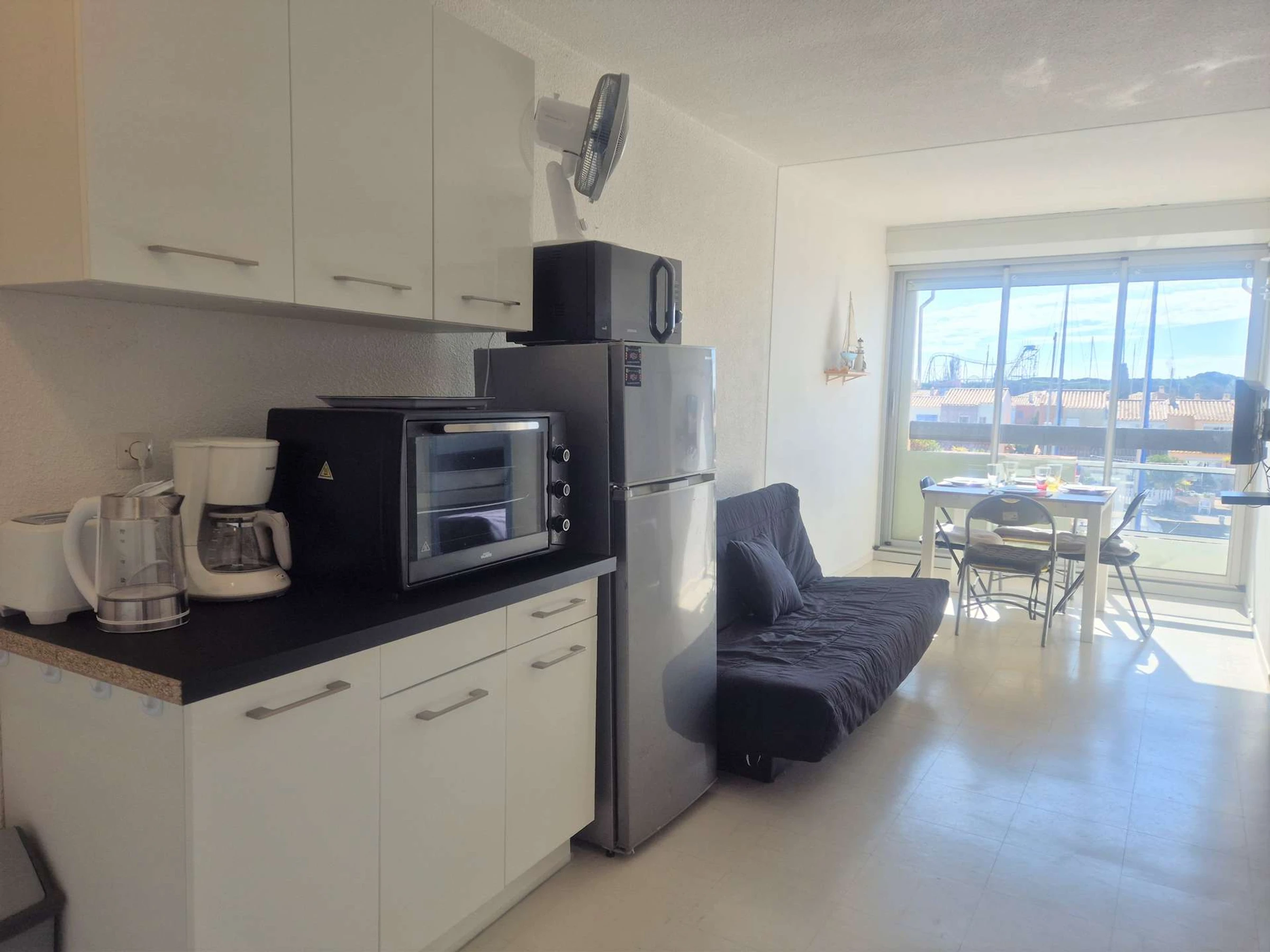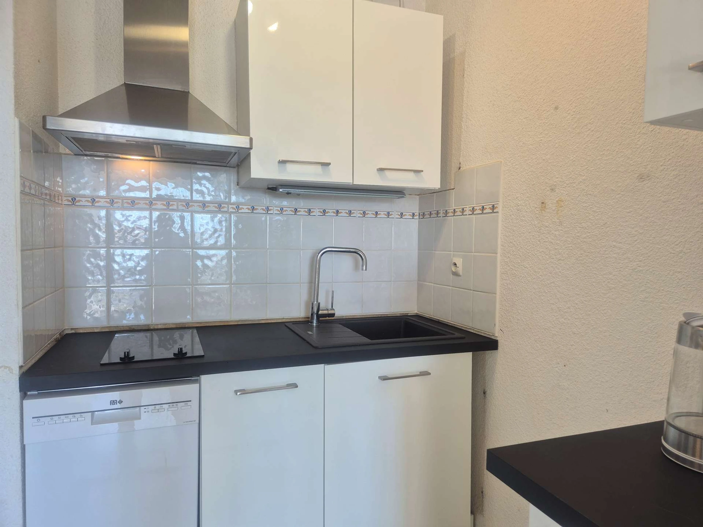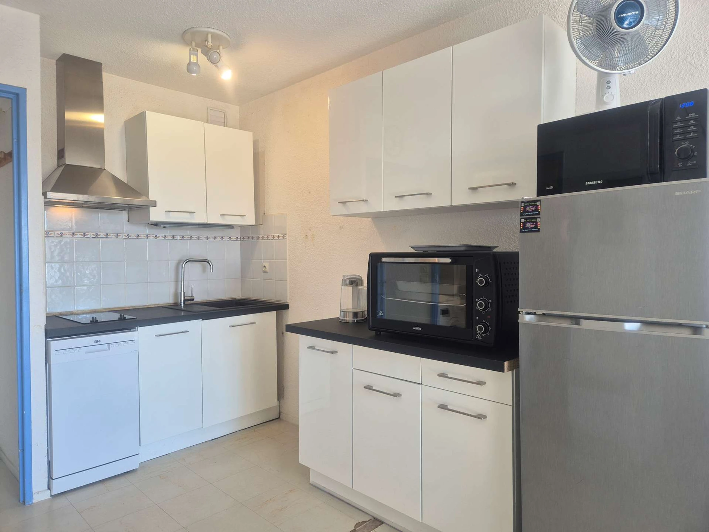 Este estudio vacacional, ubicado en la primera planta con ascensor, incluye una sala de estar con sofá cama doble y televisión, un rincón dormitorio con sofá cama doble, una cocina americana totalmente equipada, un baño y un aseo independiente.