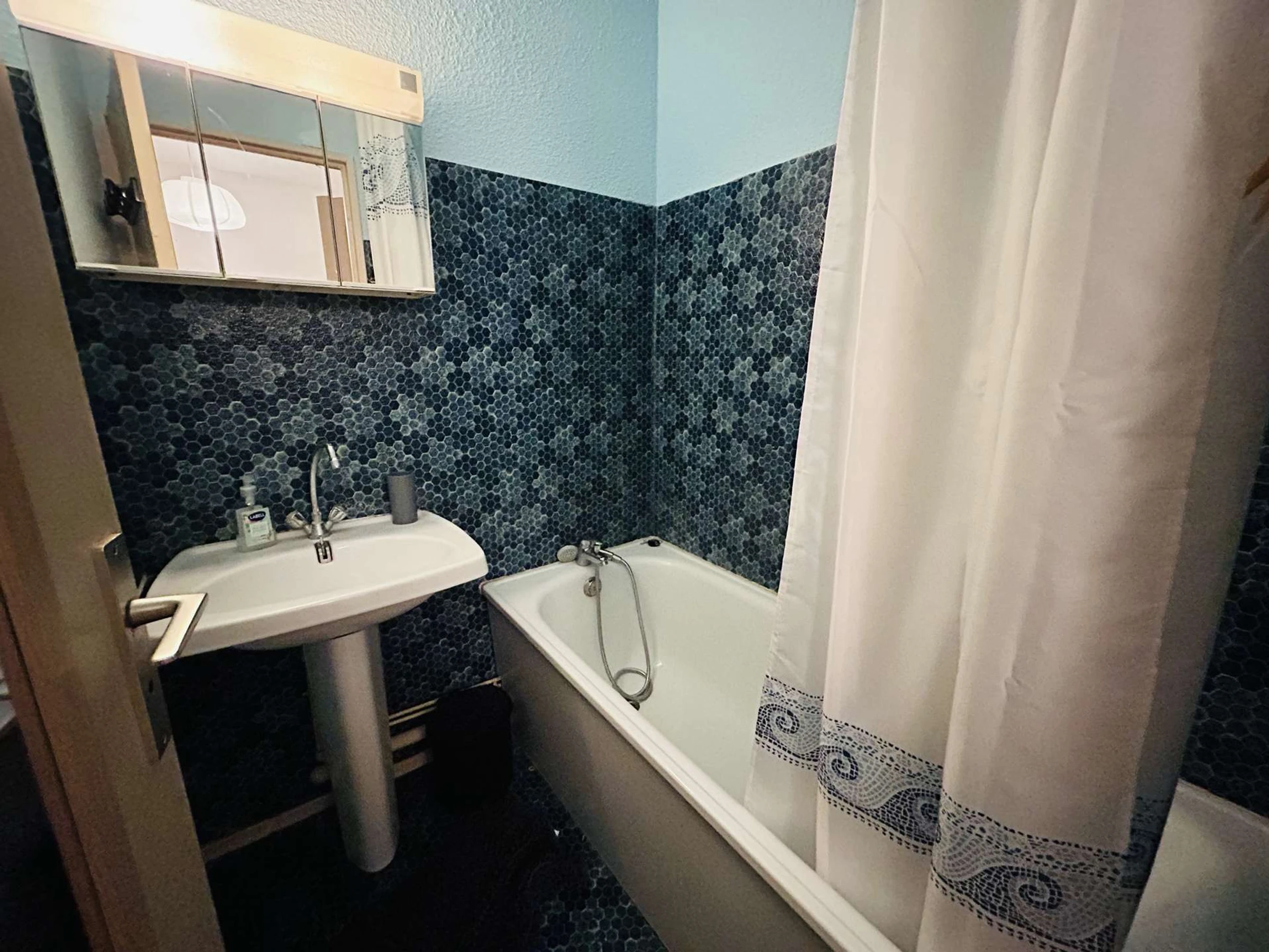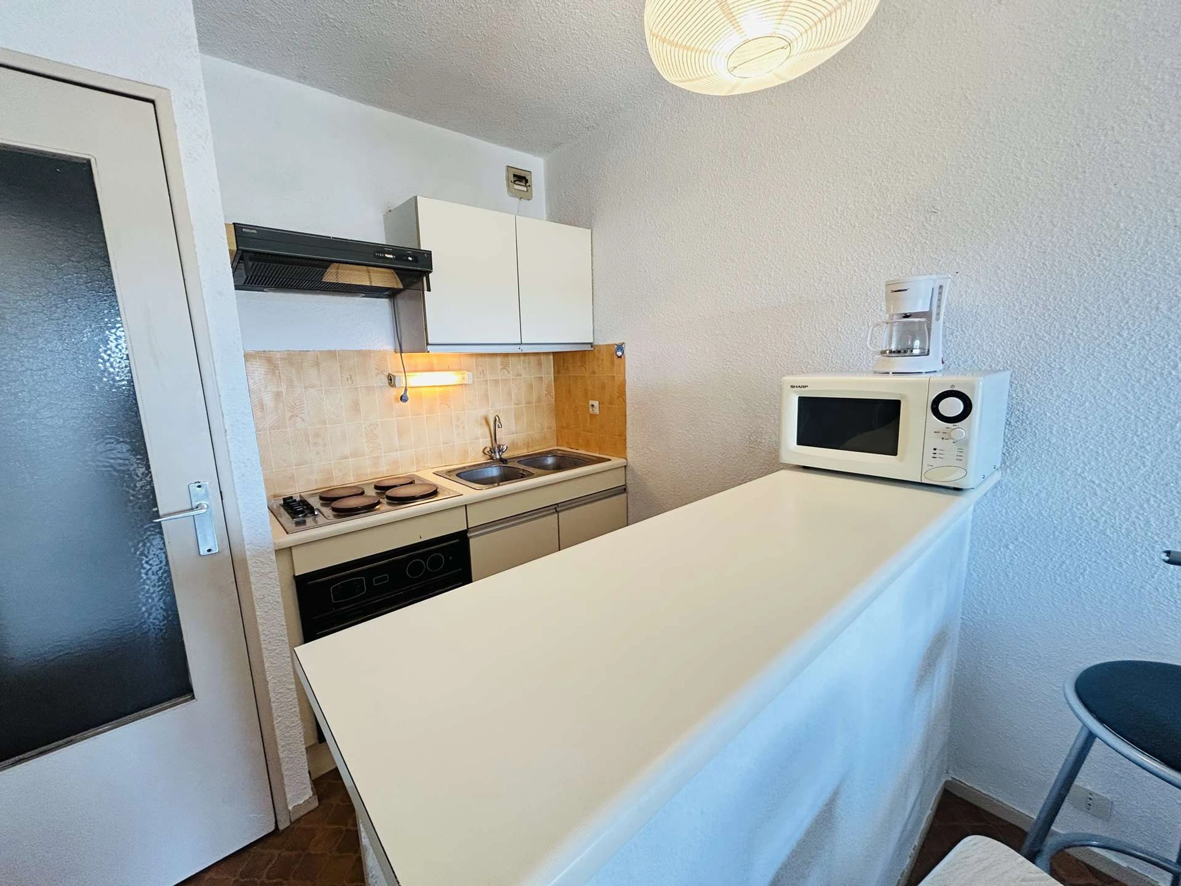 Este apartamento vacacional, ubicado en la 3.ª planta con ascensor, incluye una sala de estar con sofá cama doble y televisión, un rincón dormitorio con una cama individual, una cocina americana totalmente equipada, un baño y un aseo independiente.