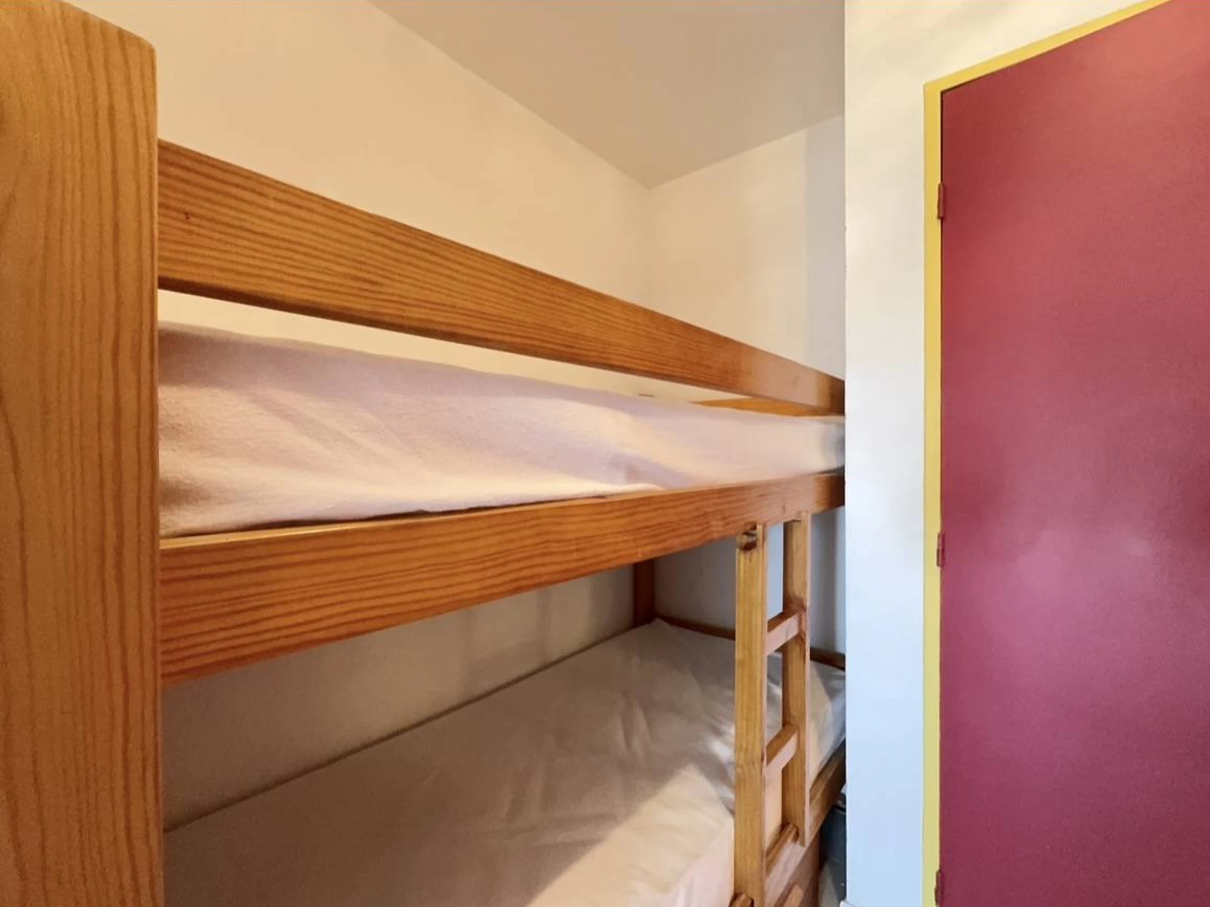 Este apartamento vacacional, ubicado en la 3ª planta con acceso por ascensor, incluye un salón con sofá y televisión, un dormitorio con cama de matrimonio (140 cm), una alcoba con dos literas (90 cm cada una), una cocina totalmente equipada, un cuarto de ducha y un aseo independiente. No se admiten mascotas.