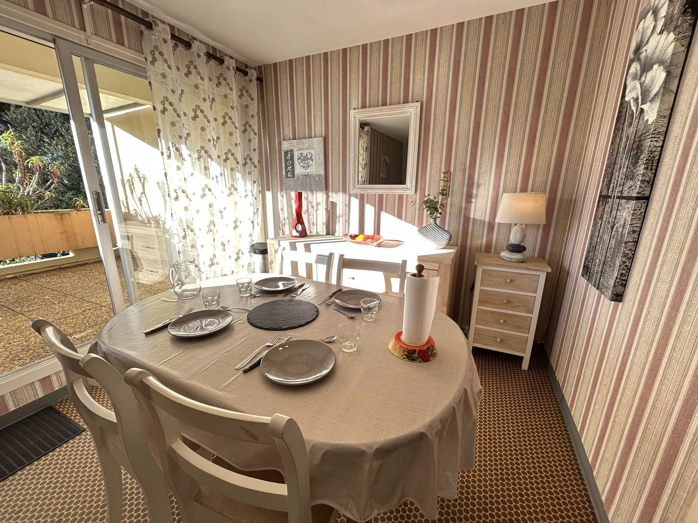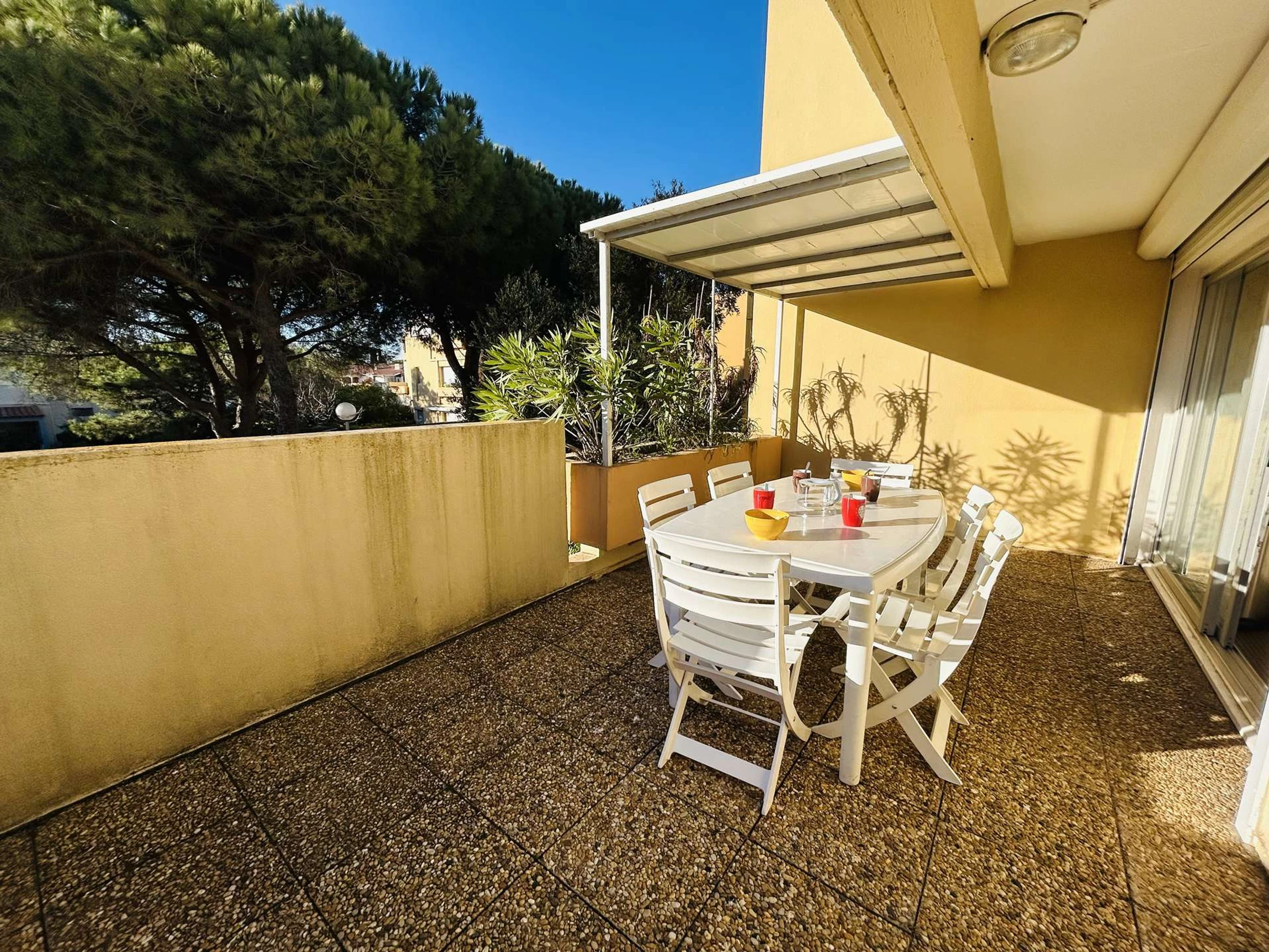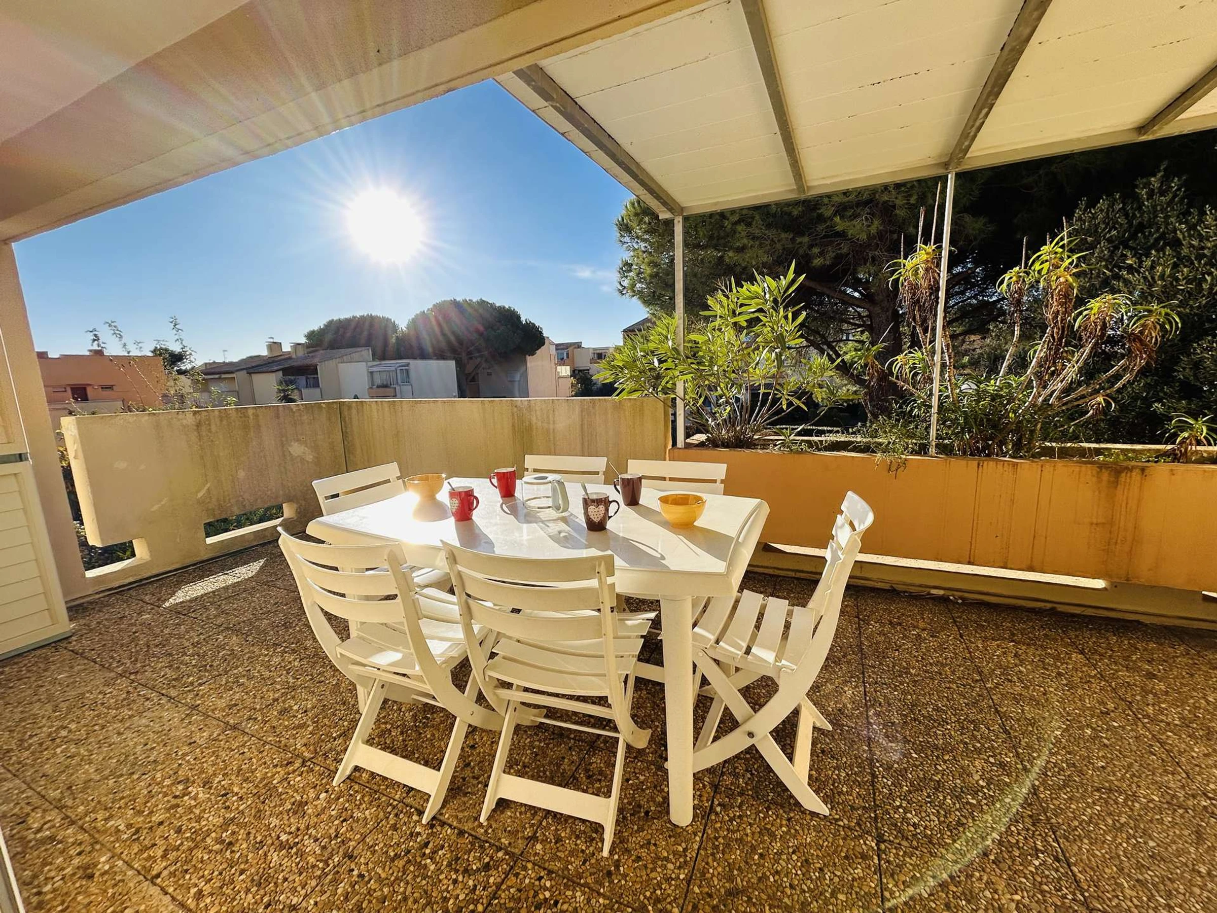 Aparcamiento privado y una terraza preciosa y luminosa cerca de la playa de La Roquille.