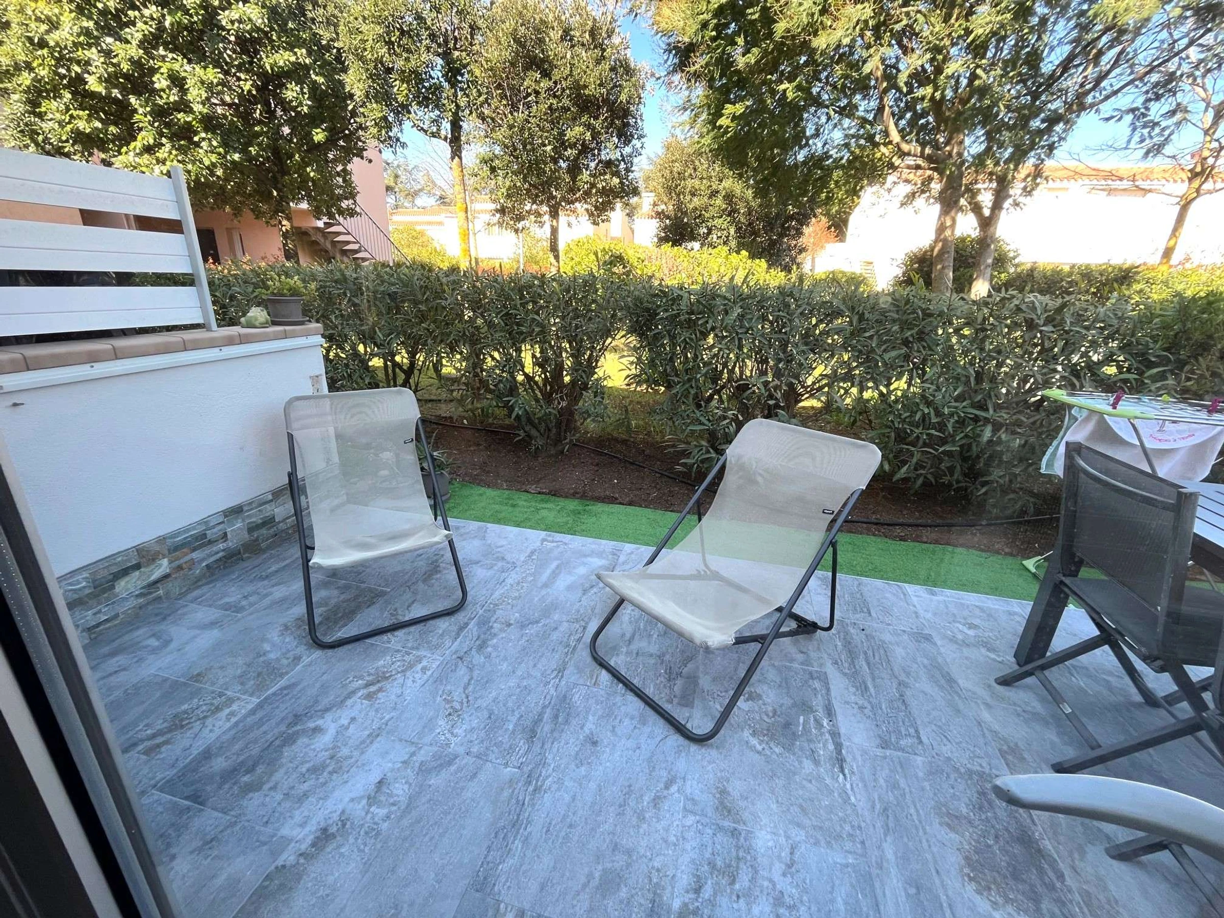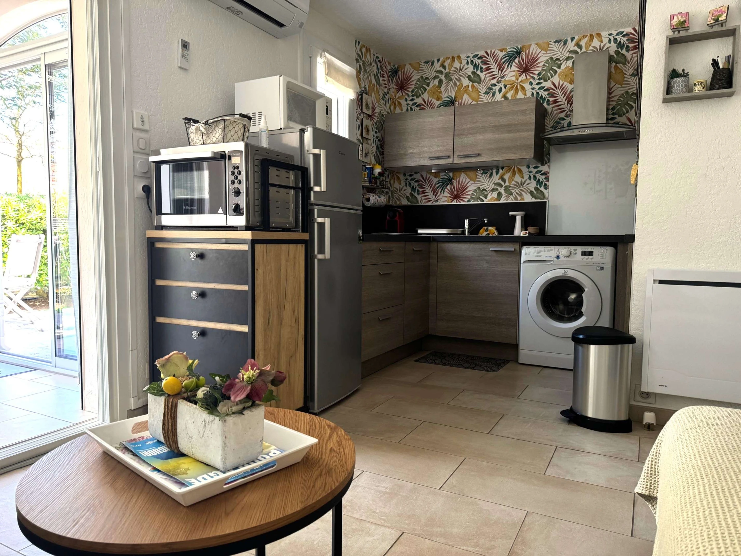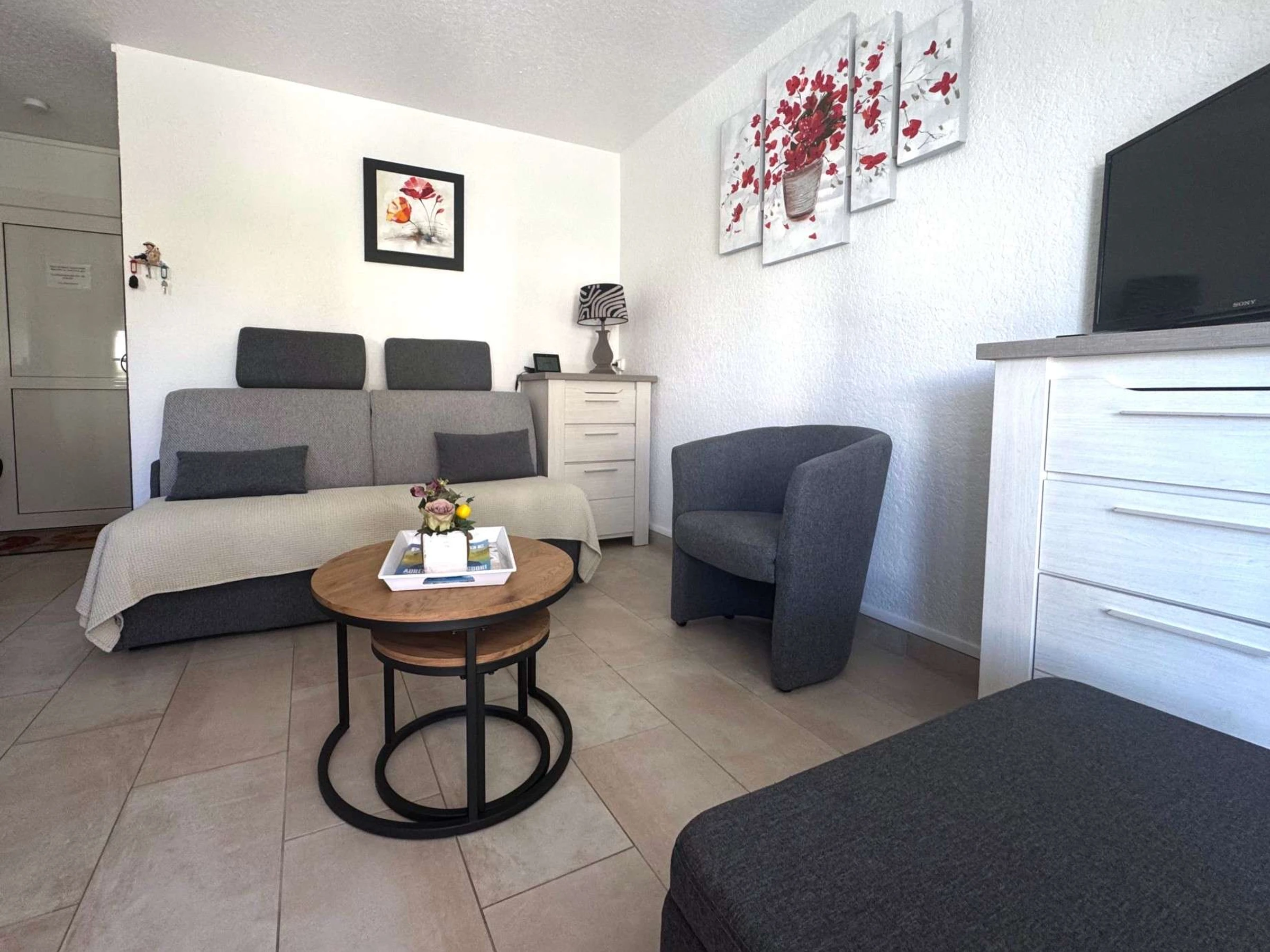 Este encantador apartamento de 28 m² con un dormitorio, porche y terraza de 25 m² orientada al oeste en la planta baja, es perfecto para 4 personas.