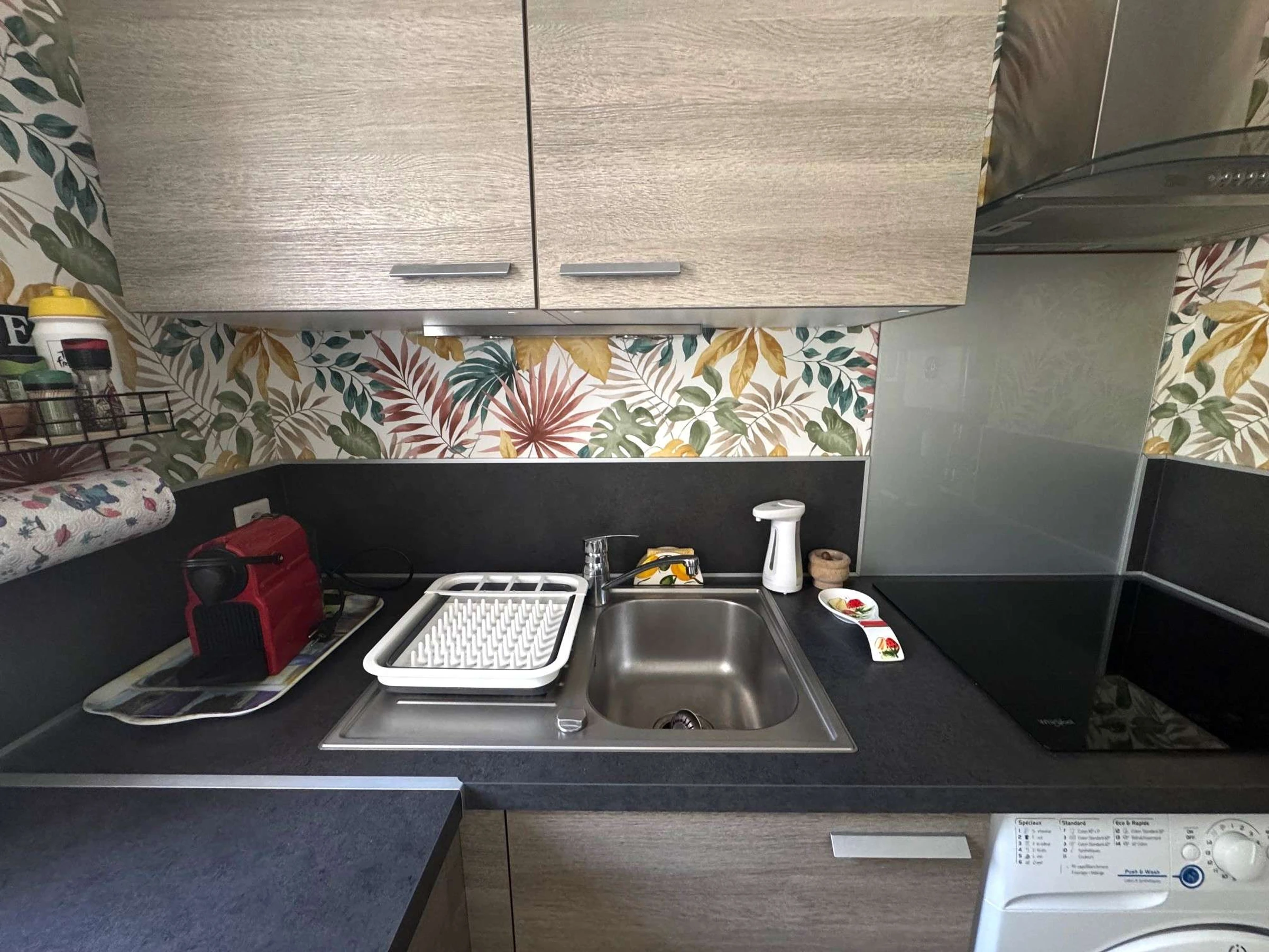 El apartamento cuenta con un cómodo salón con sofá cama, una cocina americana equipada con frigorífico/congelador, mini horno, microondas, cafetera, tostadora, placa de inducción de 4 fuegos, campana extractora y lavadora. El apartamento incluye un baño con ducha, lavabo e inodoro independiente, un dormitorio con cama doble (140 cm) y un armario.