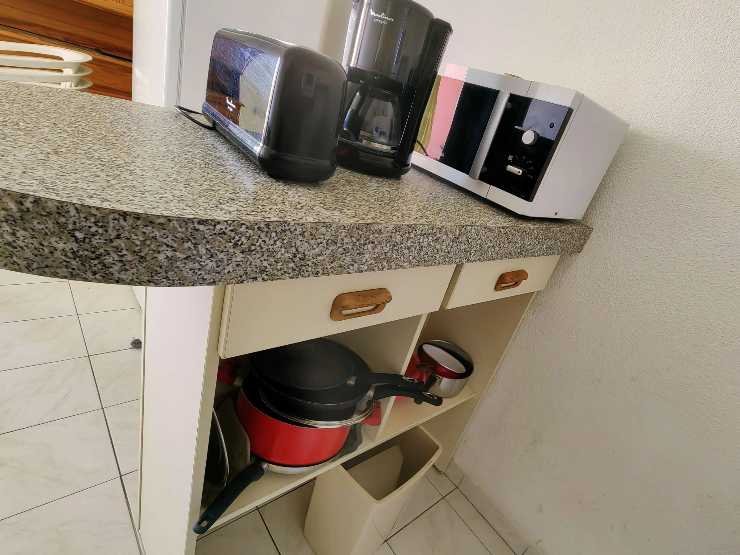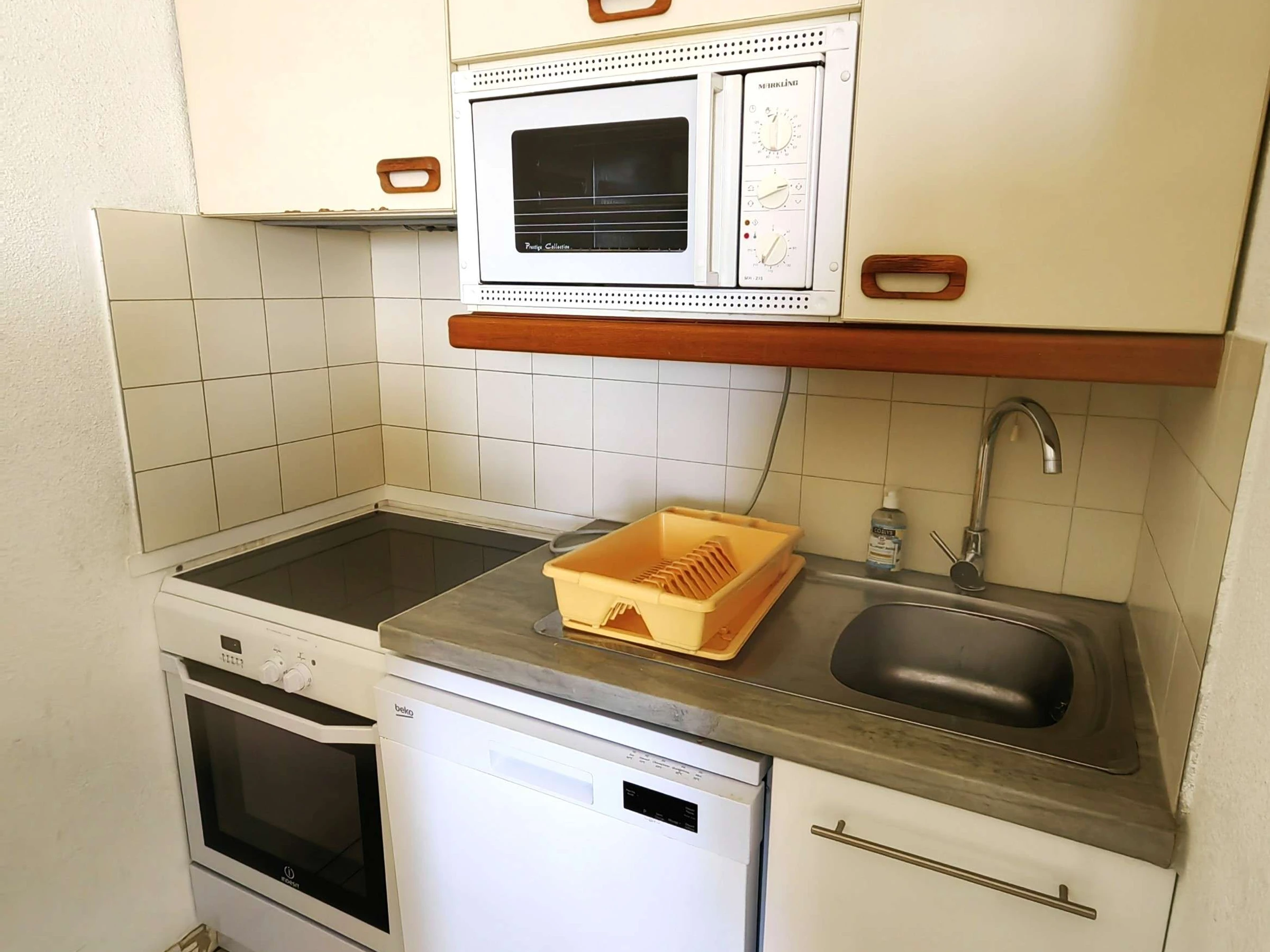En el salón encontrará un sofá cama, una cocina abierta equipada (frigorífico, 4 quemadores eléctricos, 1 mini horno, 1 lavavajillas, 1 microondas, 1 cafetera de filtro eléctrica).