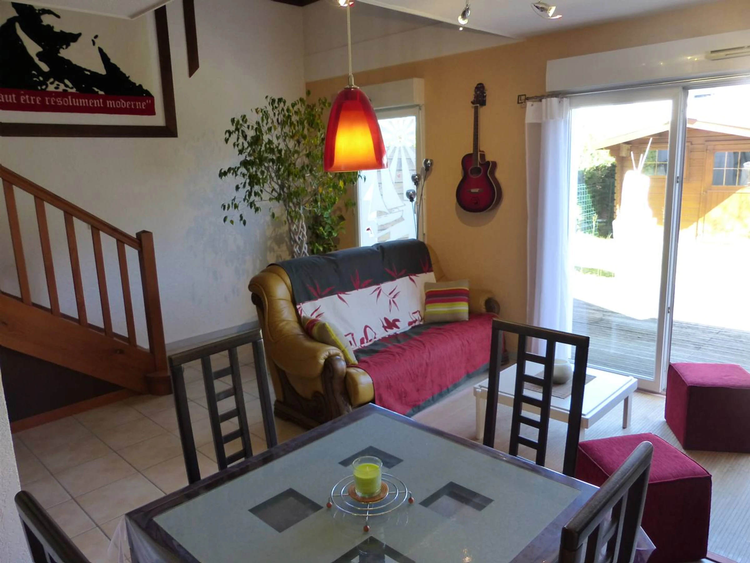 Esta casa adosada de aproximadamente 88 m² cuenta con una terraza y un pequeño jardín, además de un garaje de unos 18 m² y una plaza de aparcamiento frente a la casa. Calificada con 2 estrellas en 2023. Al entrar, encontrará un recibidor con armario empotrado. El salón-comedor en forma de L de 27 m² se abre a una terraza de madera de unos 9 m², amueblada con mesa, sillas y un pequeño jardín. La cocina amueblada y equipada de 8,35 m² incluye frigorífico-congelador, vitrocerámica de 4 fuegos, horno eléctrico, microondas, lavavajillas y lavadora.