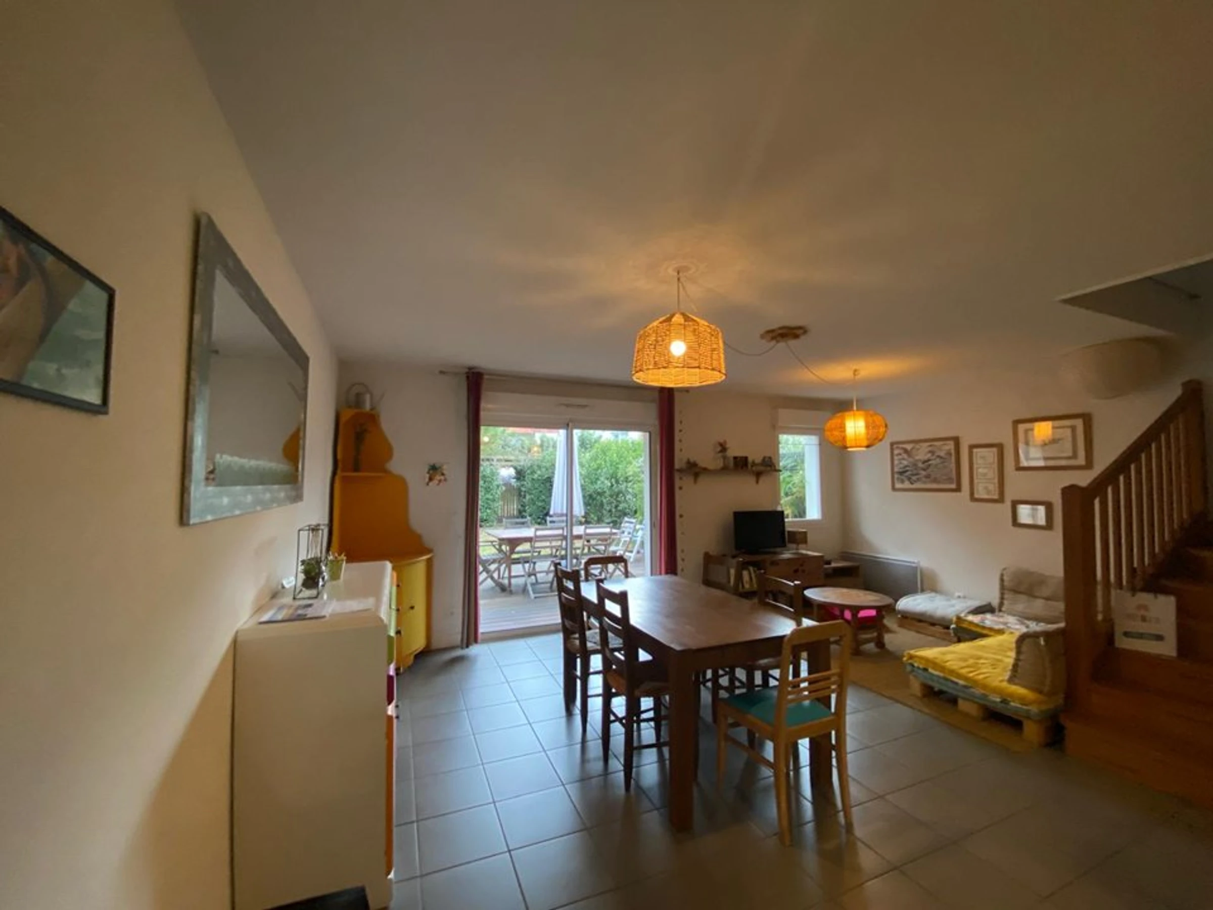 - Sala de estar con mesa de comedor y sillas