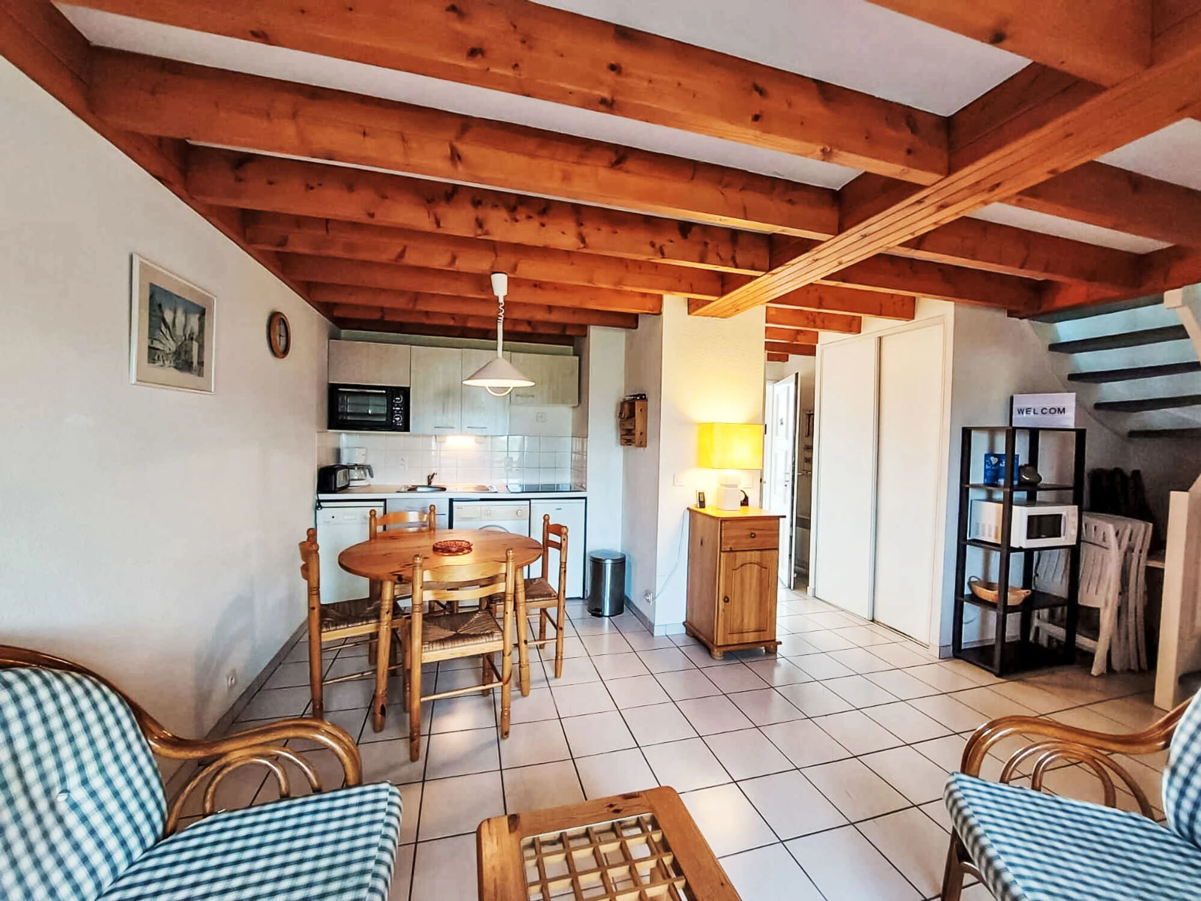 Apartamento en dos niveles 3 estancias 41 m2 en el 1° piso. Con mobiliario confortable: salón-comedor con TV (pantalla plana). Salida al balcón. 1 dorm. con 1 cama de matrimonio (1 x 140 cm, 190 cm de longitud). Rincón-cocina (horno pequeño, horno, lavavajillas, 3 placas de vitrocerámica, tostadora, cafetera eléctrica). WC separado. Planta superior: 1 dorm. con 2 camas (90 cm, 190 cm de longitud). Baño. Balcón 5 m2, orientación oeste. Muebles de balcón. El alojamiento dispone de: lavadora, secador de pelo. Internet (Wifi, extra). Plaza de aparcamiento. A tener en cuenta: permitido máximo 1 mascota / perro. Detector de humo. Oferta de un particular según el art. 155, IV del CGI.