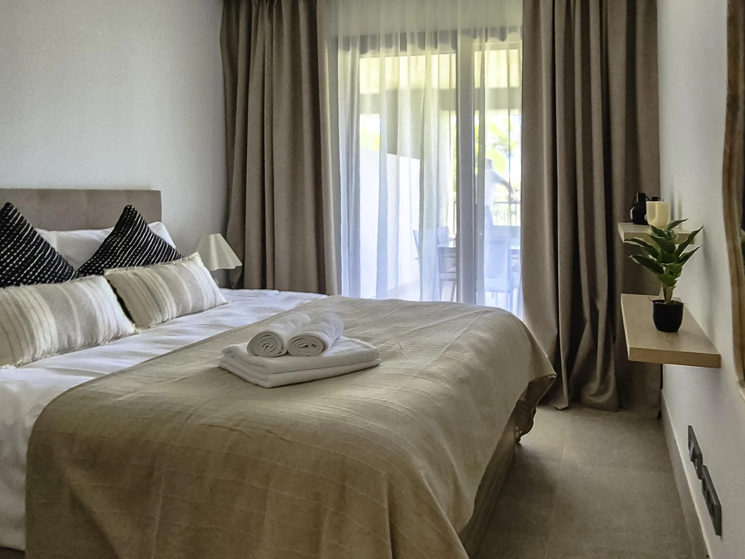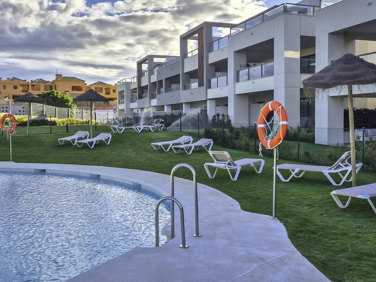 Apartamento moderno y elegante en la exclusiva urbanización Solemar, a solo unos minutos de Estepona. Cuenta con 2 amplios dormitorios, 2 baños completos, un salón-comedor luminoso y abierto, y una gran terraza ideal para disfrutar al aire libre. A pocos pasos de la playa, con acceso a jardines y piscina comunitaria. Perfecto para una escapada tranquila en la Costa del Sol, cerca de campos de golf, restaurantes y el encanto de Estepona.