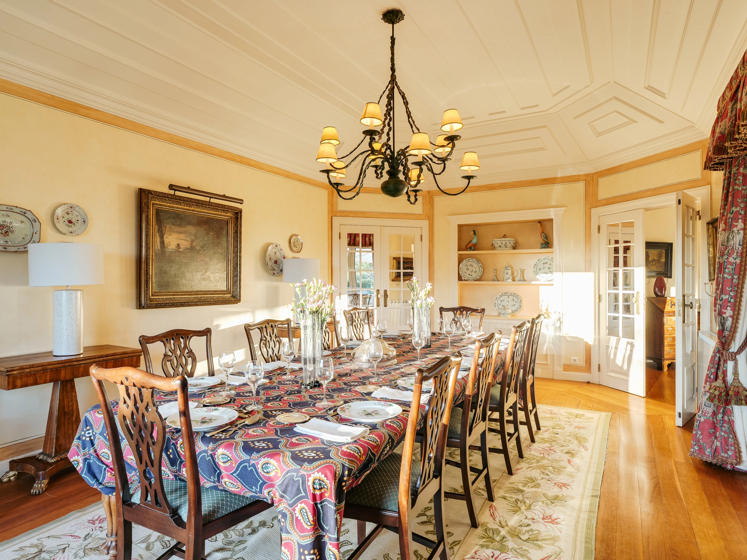 El interior de Fairview Villa exhala calidez y carácter, con un diseño de distribución bellamente elaborado que combina sin problemas la artesanía tradicional con la comodidad contemporánea. Las amplias áreas de estar están bañadas de luz natural, destacando detalles elegantes como pisos de madera fina y acabados hechos a mano. Una cocina completamente equipada satisface a los entusiastas culinarios, mientras que múltiples espacios de comedor y descanso proporcionan el escenario perfecto para reuniones. La villa ofrece cinco dormitorios exquisitos, cada uno diseñado cuidadosamente para proporcionar un escape pacífico, incluyendo una suite principal con vistas panorámicas y un baño en suite.
