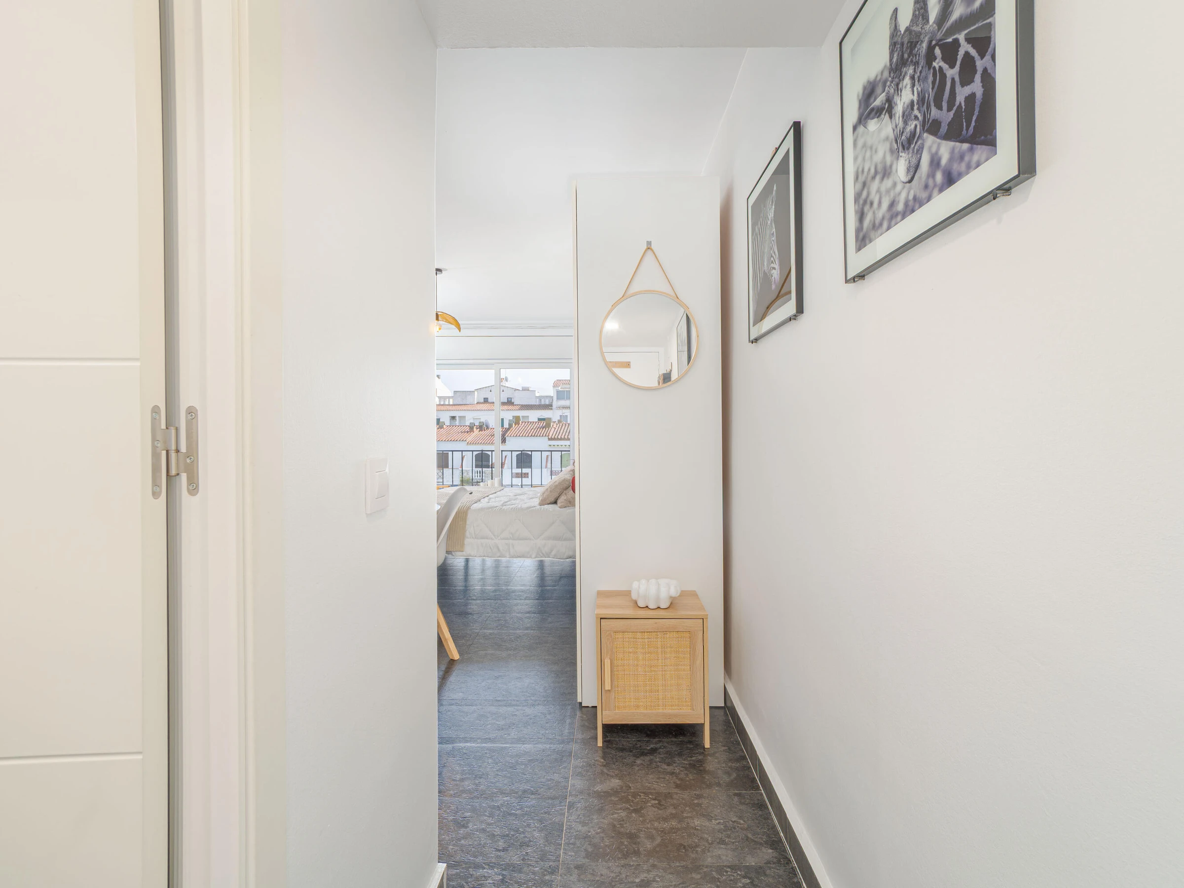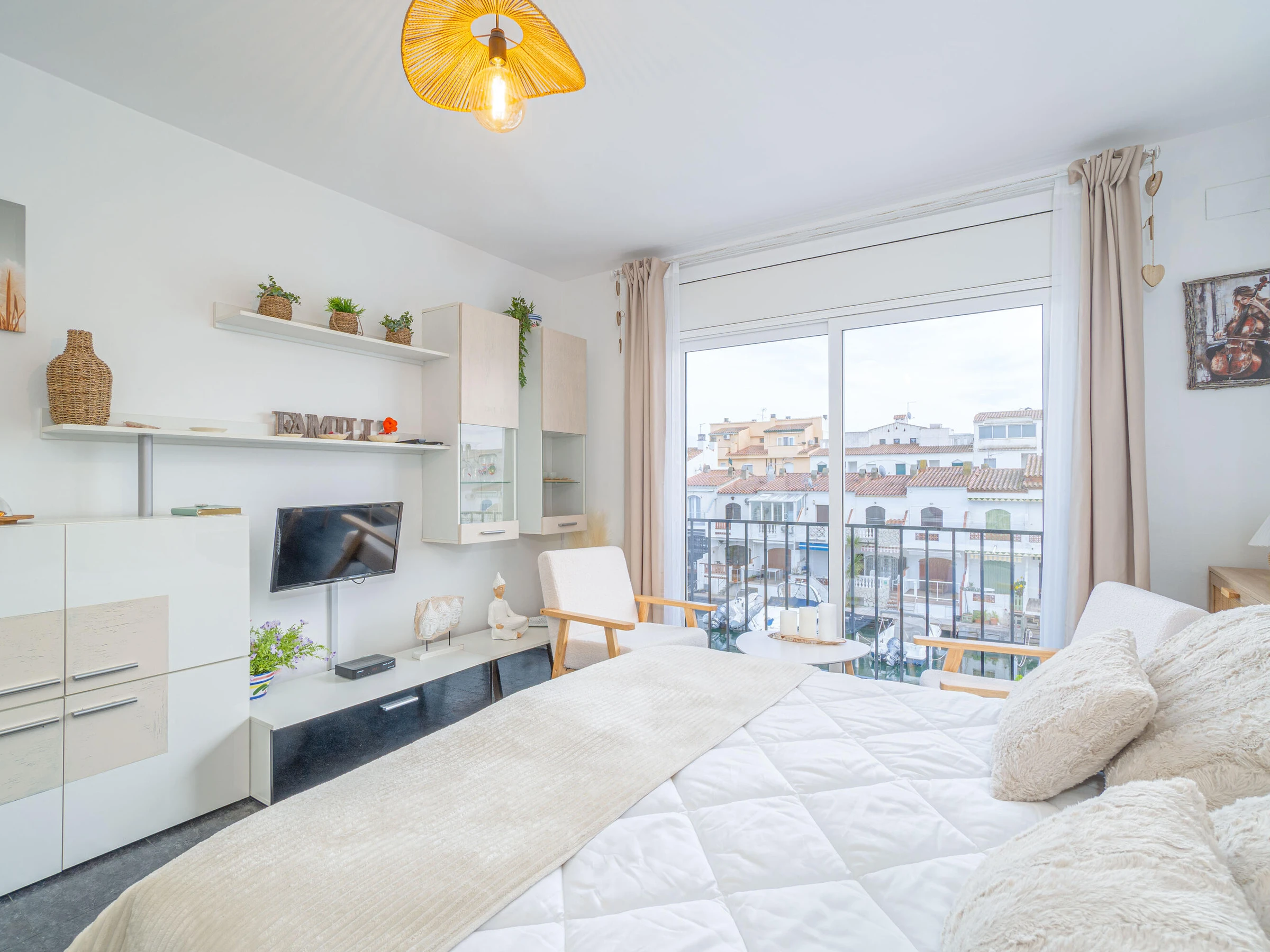 Home Select Internacional les presenta este bonito estudio, ideal para disfrutar de unas agradables vacaciones gracias a su excelente ubicación. Se encuentra cerca de la playa y a poca distancia del centro deEmpuriabrava, donde podrá encontrar una amplia oferta de tiendas, restaurantes y opciones de ocio. El estudio está situado en una segunda planta y dispone de una cocina abierta, completamente equipada con vitrocerámica, horno, microondas, tostadora, nevera y plancha, ofreciendo todo lo necesario para una estancia cómoda y funcional. A continuación, encontramos el salón-dormitorio, que cuenta con una cama de 1,50m x 2,00m, aire acondicionado y televisión con canales franceses. Desde esta estancia se disfrutan de unas agradables vistas al canal, que aportan luminosidad y un ambiente muy acogedor. Finalmente, el alojamiento dispone de un baño completamente reformado con ducha. Tenga en cuenta que no se aceptan animales de compañía. La ropa de cama y las toallas no están incluidas en el precio, pero pueden alquilarse por 25 euros por persona. Eficiencia energética: Consumo de energía: “G” 305 kWh/m² al año Emisiones de CO₂: “F” 51 kg CO₂/m² al año