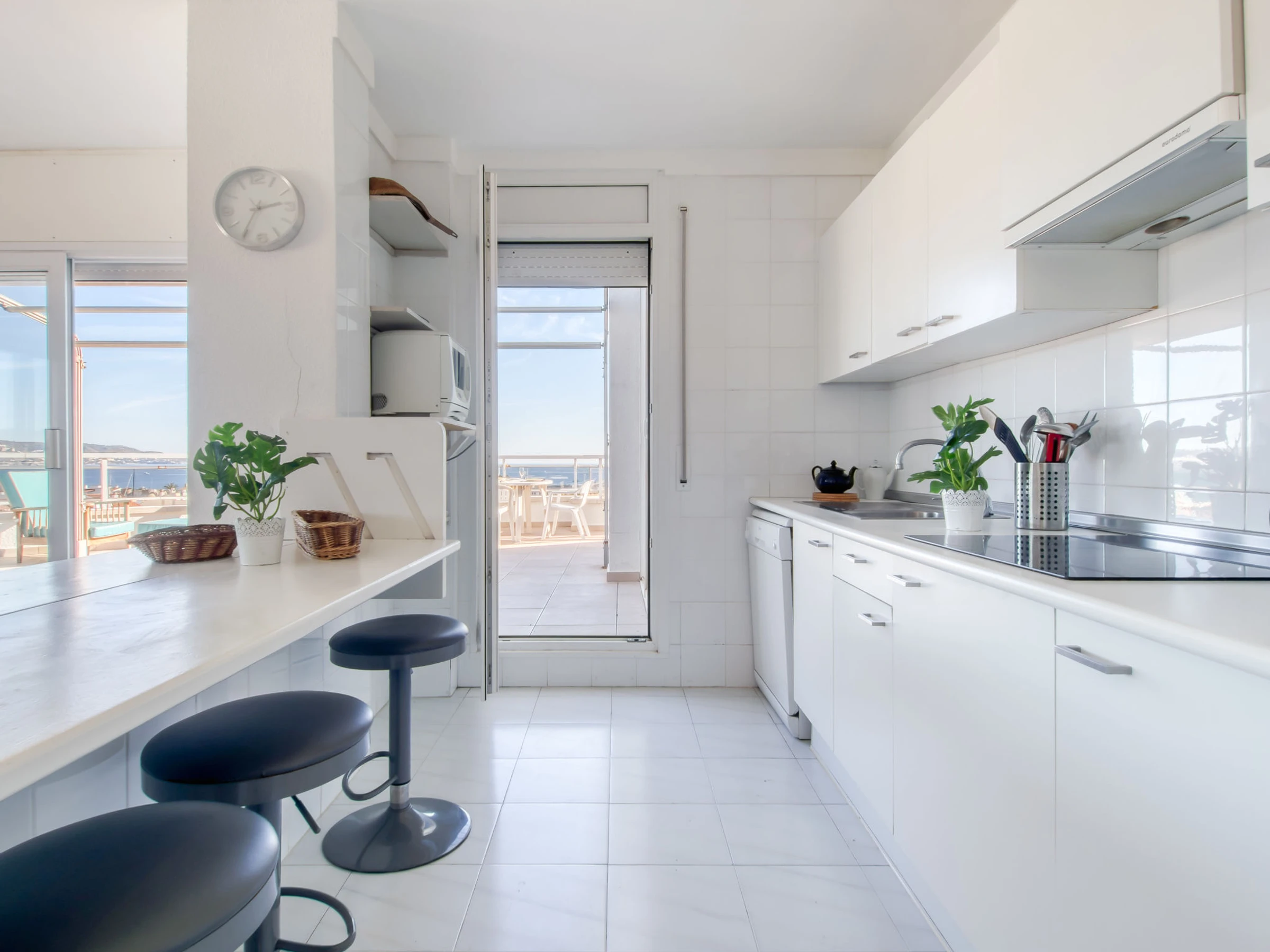 Apartamento de 3 estancias 80 m2, en el ático, orientación sur. Luminoso, con mobiliario confortable y bonito: salón-comedor con chimenea, TV satélite y TV digital (pantalla plana). Salida a la terraza. 2 dorm., cada habitación con 1 cama de matrimonio. Salida a la terraza. Cocina abierta (4 fogones, lavavajillas, tostadora, hervidor de agua eléctrico, microondas, congelador) con barra americana. Salida a la terraza. Baño/bidet/WC, ducha/WC, WC separado. Calefacción. Terraza grande 80 m2. Muebles de terraza. Vista panorámica espléndida al mar, a las montañas, al paisaje y al puerto. El alojamiento dispone de: lavadora, plancha, trona, cuna, secador de pelo. Internet (Wifi, gratis). A tener en cuenta: apartamento para no fumadores. TV solamente ES, FR. [hidden] // Reg. Nr.: ESFCTU000017020000171388000000000000000000[hidden]3