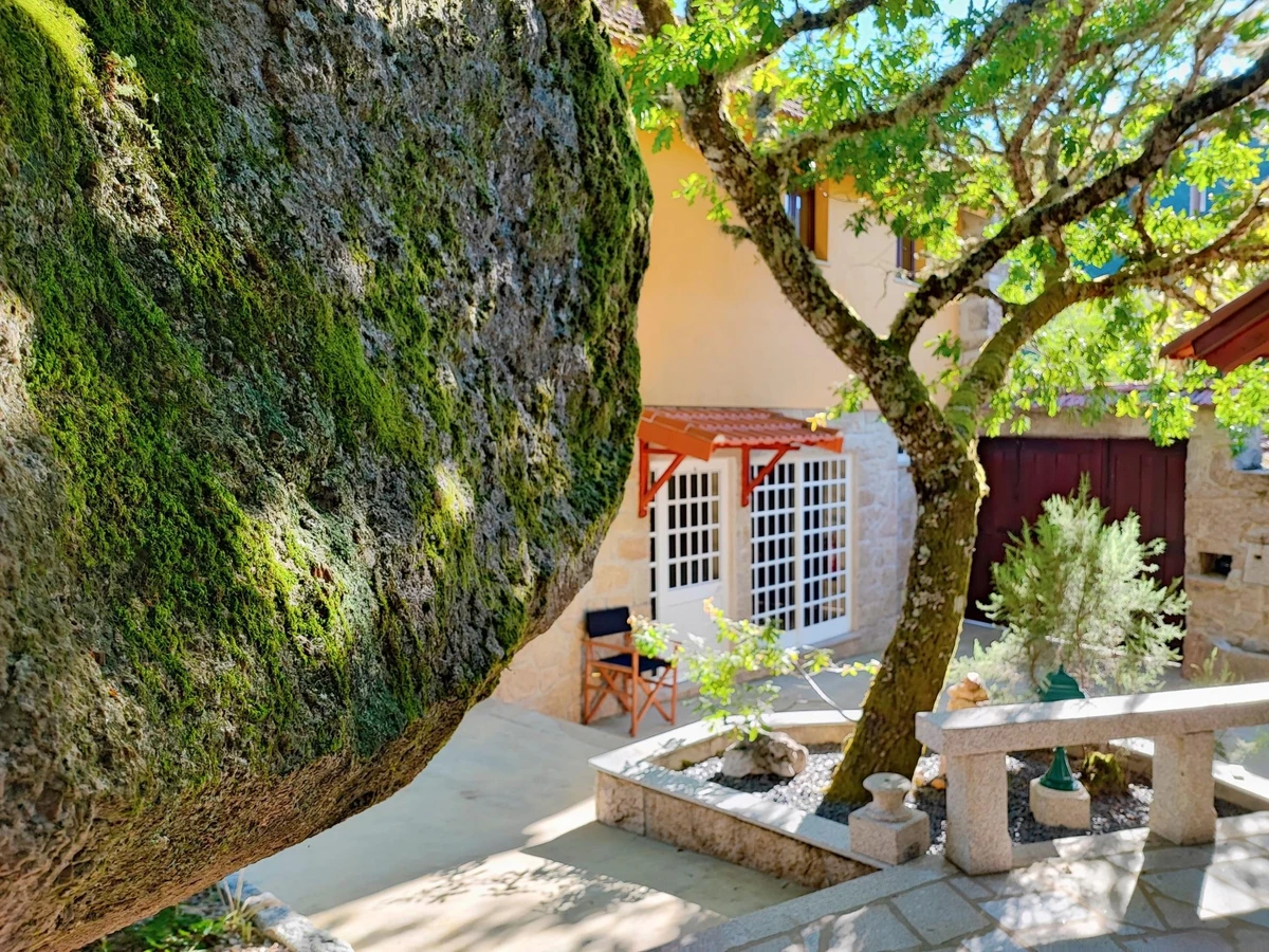 También hay un anexo con zona de almacenamiento y lavandería que puede ser útil para estancias más largas. El espacio exterior ha sido diseñado y organizado para que puedas disfrutar de una revitalización de todos los sentidos, envuelto por el sonido del agua que corre en el arroyo, la brisa que hace bailar las hojas de los árboles y el canto de los pájaros que nos invitan a una melodía meditativa. Un bosque solo para ti es lo que te [hidden] árboles autóctonos de la región, un antiguo horno de leña y una pequeña cabaña de madera para los más pequeños, este pequeño rincón natural es su refugio exclusivo.